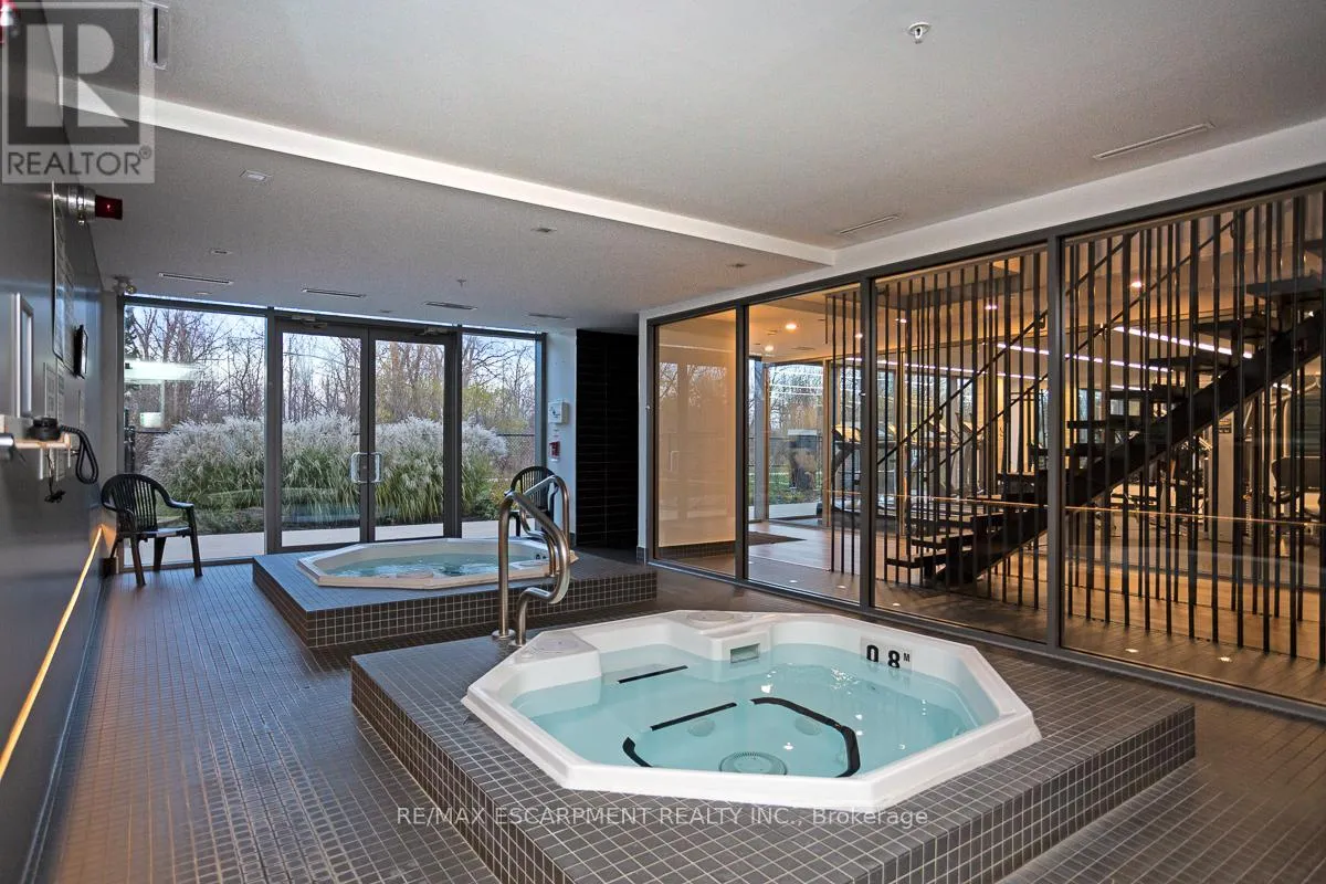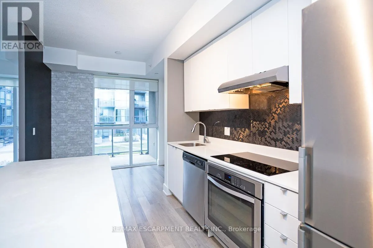 Cross Streets: Sutton Dr. ** Directions: Sutton Dr & Dundas St. Beautiful and rare 1,000+ sq ft modern condo in the sought-after Orchard neighbourhood. Ideally located close to parks, hiking trails, Bronte Creek, schools, restaurants, transit, and major highways (QEW/407) for easy commuting. This spacious 2-bed, 2-bath suite features a sleek open-concept kitchen with stainless steel appliances, a large island with breakfast bar, and a bright dining area. The living room offers floor-to-ceiling windows that fill the space with natural light and open onto a private balcony overlooking the landscaped courtyard. The primary bedroom includes a stylish ensuite. Additional features include 1 underground parking spot, concierge, exercise room, party room, sauna, and visitor parking. (id:27476)