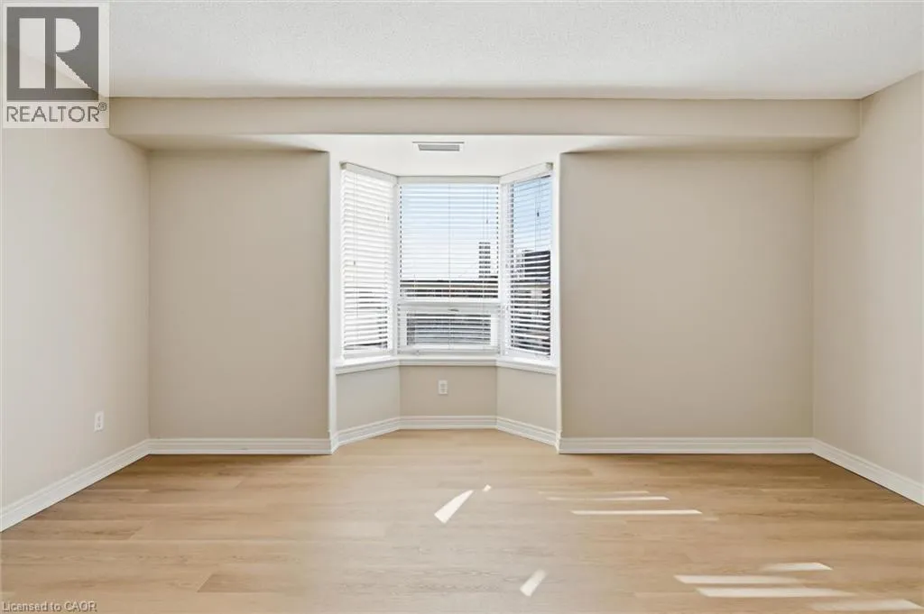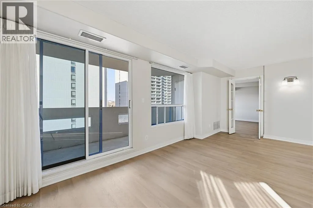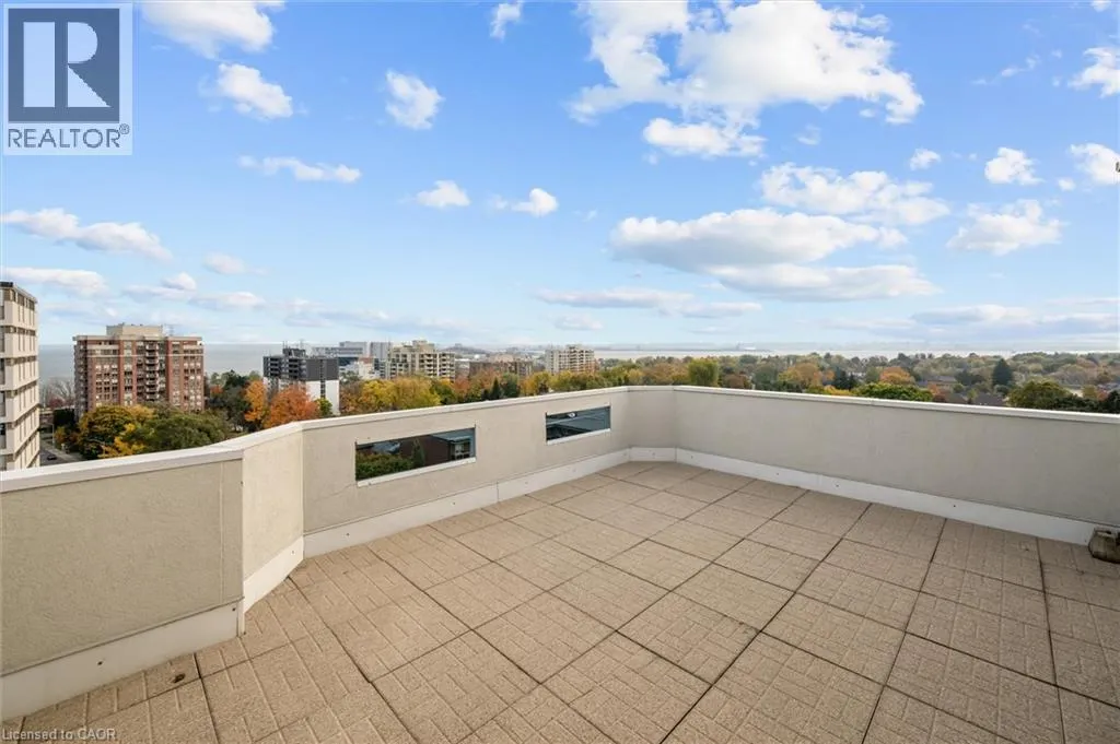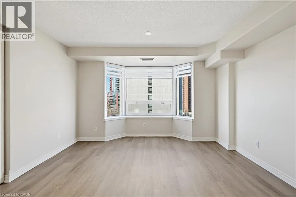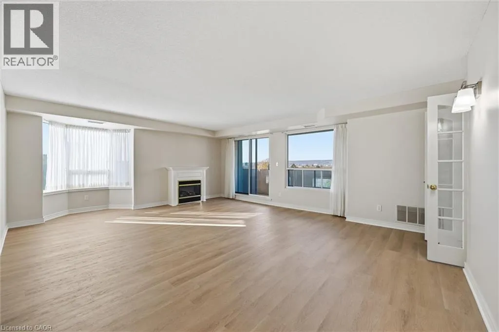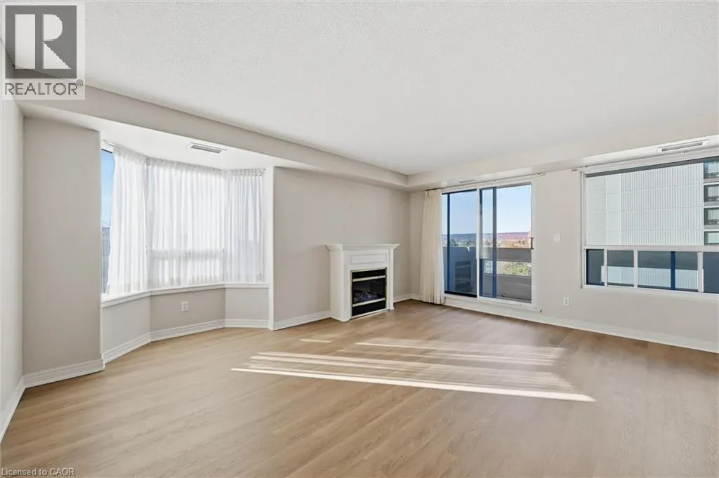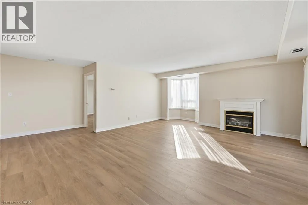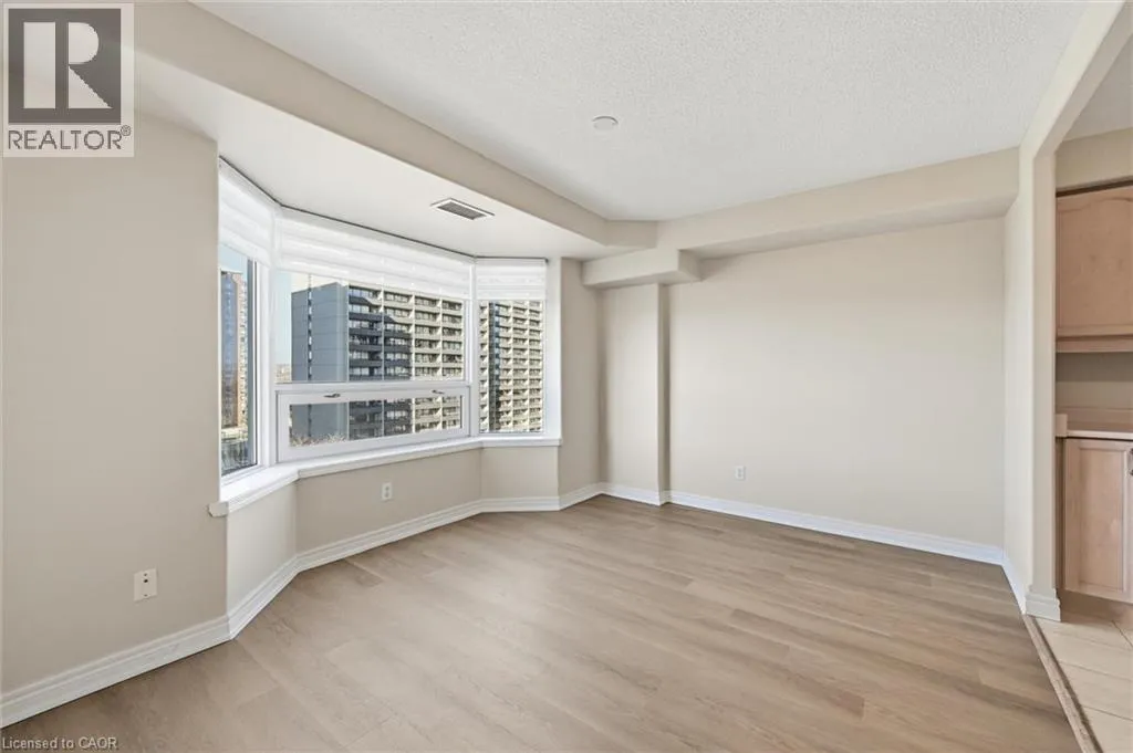 Maple Avenue to Ontario Street Newly renovated corner suite in a great downtown building. This bright, spacious 1,494 sq. ft. unit offers generous room sizes and a functional layout. The oversized great room provides combined living and dining areas, offering flexibility for many different layouts. The large eat-in kitchen includes three new stainless steel appliances, oak cabinetry, ceramic tile flooring, and a separate breakfast nook with escarpment views. Additional updates include new luxury vinyl flooring, modern light fixtures, and fresh paint throughout. There are two spacious bedrooms, each with a walk-in closet. The primary bedroom features a 3-piece ensuite bathroom, and the second 4-piece bathroom includes a tub/shower combination. The unit also includes a private balcony, one parking space, one locker, and six appliances in total. Building amenities include a penthouse party room with a 2-piece bath, kitchenette, and large south-facing balcony, as well as a main-floor guest suite with its own balcony. Located within walking distance of downtown shops, Mapleview Mall, restaurants, the lakefront, Spencer Smith Park, and with convenient access to major highways for commuters. (id:27476)