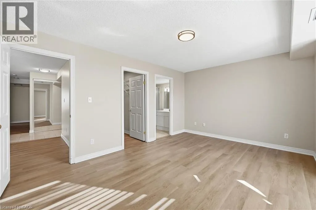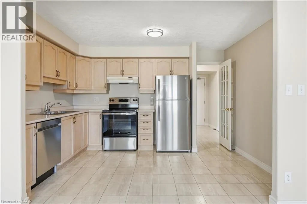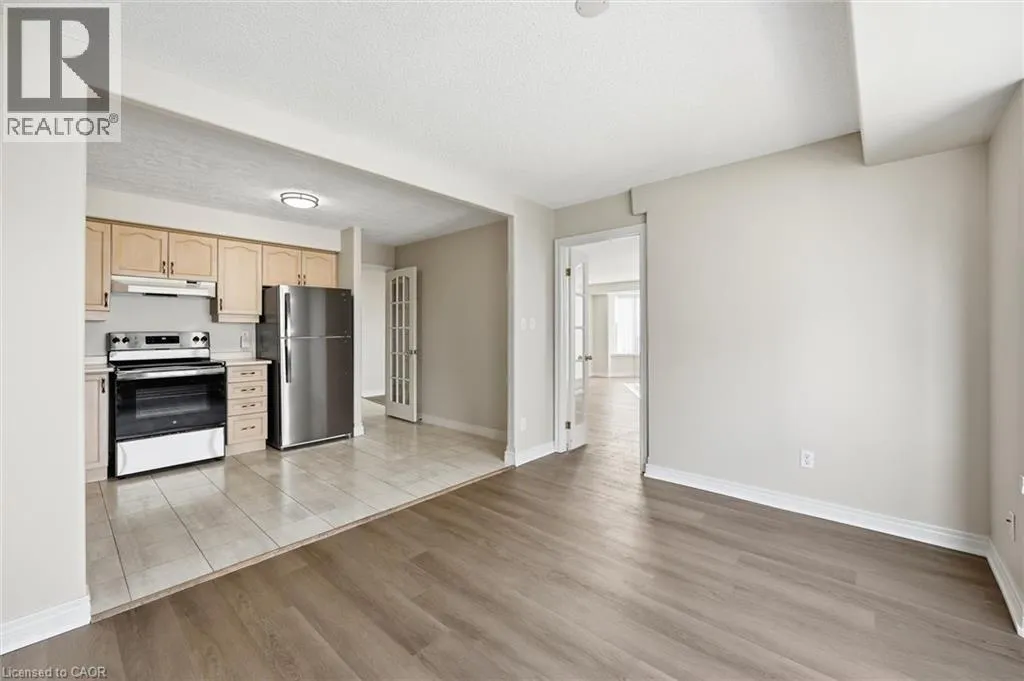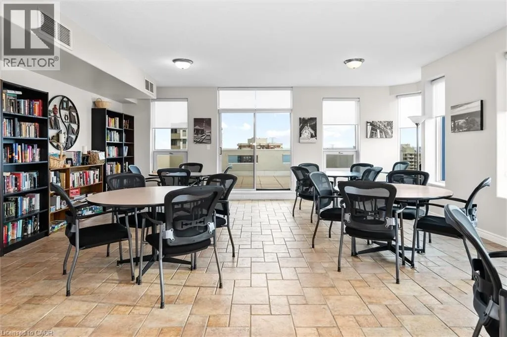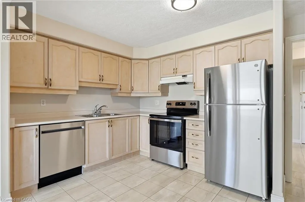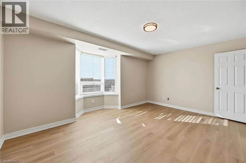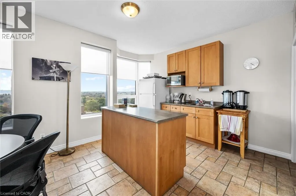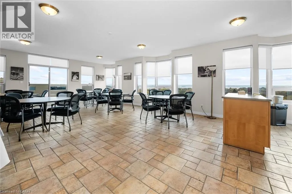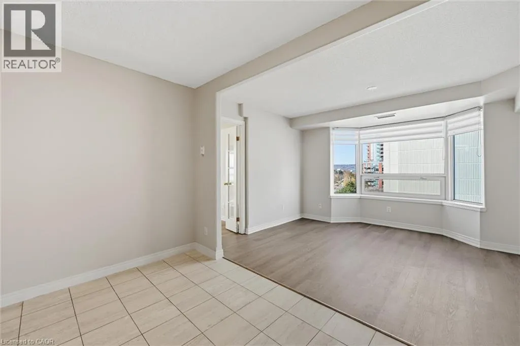 Maple Avenue to Ontario Street Newly renovated corner suite in a great downtown building. This bright, spacious 1,494 sq. ft. unit offers generous room sizes and a functional layout. The oversized great room provides combined living and dining areas, offering flexibility for many different layouts. The large eat-in kitchen includes three new stainless steel appliances, oak cabinetry, ceramic tile flooring, and a separate breakfast nook with escarpment views. Additional updates include new luxury vinyl flooring, modern light fixtures, and fresh paint throughout. There are two spacious bedrooms, each with a walk-in closet. The primary bedroom features a 3-piece ensuite bathroom, and the second 4-piece bathroom includes a tub/shower combination. The unit also includes a private balcony, one parking space, one locker, and six appliances in total. Building amenities include a penthouse party room with a 2-piece bath, kitchenette, and large south-facing balcony, as well as a main-floor guest suite with its own balcony. Located within walking distance of downtown shops, Mapleview Mall, restaurants, the lakefront, Spencer Smith Park, and with convenient access to major highways for commuters. (id:27476)