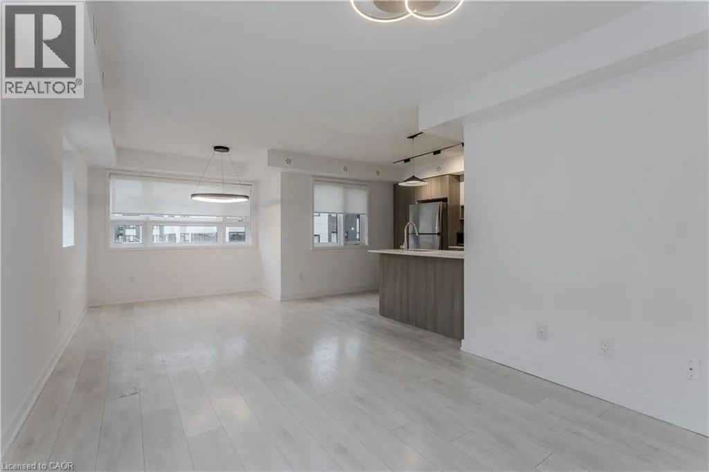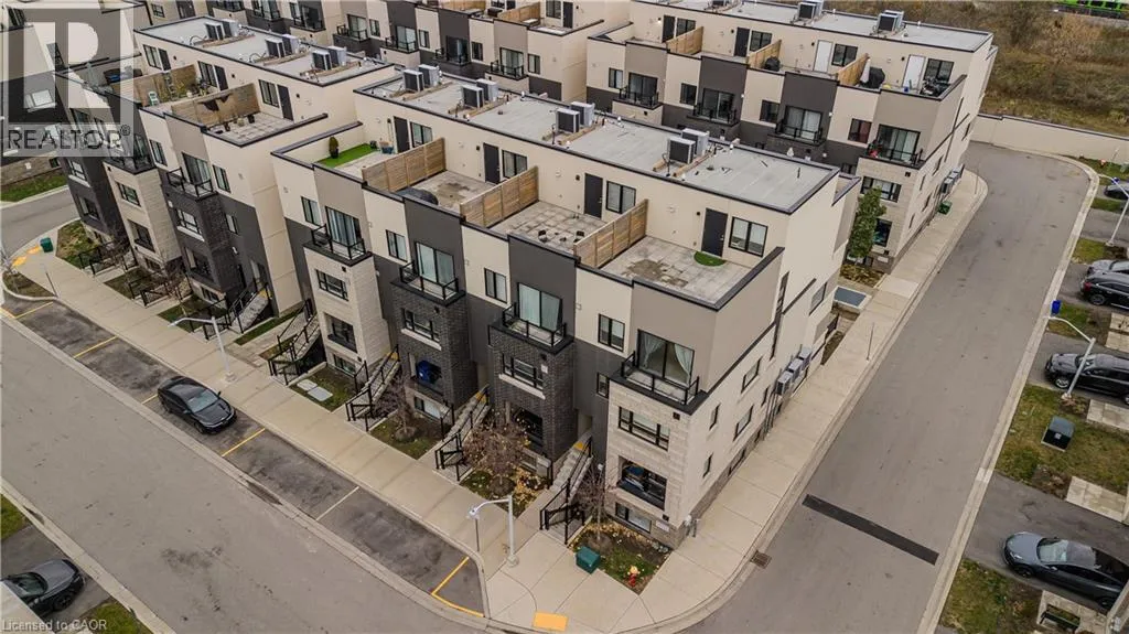 Located East of Waterdown Road off of Masonry Court Welcome to modern, low-maintenance living in a highly sought-after Burlington neighbourhood where convenience and lifestyle come together effortlessly. This upgraded 3-storey end-unit townhome offers underground parking, easy access to major highways, and the rare ability to walk to Aldershot GO â perfect for commuters and those who love staying connected. Just minutes away, enjoy the waterfront, Downtown Burlingtonâs vibrant dining scene, boutique shopping, scenic trails, and all your day-to-day essentials. Inside, the home has been freshly painted throughout and enhanced with upgraded light fixtures that elevate the contemporary feel. The open-concept layout is both functional and inviting, featuring light hardwood flooring and an airy flow ideal for everyday living and entertaining alike. The modern kitchen is a true highlight, complete with stainless steel appliances, quartz countertops, tile backsplash, and a stylish breakfast bar that opens into the bright dining area â perfect for hosting family dinners or enjoying relaxed mornings. The spacious living room offers plenty of space to unwind, while a convenient 2pc powder room rounds out the main level. Upstairs, the generous primary bedroom serves as a peaceful retreat with a spacious walk-in closet and private balcony, ideal for enjoying your morning coffee or winding down at the end of the day. An additional bedroom and a well-appointed 4pc main bath provide comfort and flexibility for guests, a home office, or personal space. Adding to its appeal is the expansive rooftop terrace â a standout feature offering the perfect setting for outdoor entertaining, summer evenings, or simply soaking up the sun in your own private escape. A move-in-ready opportunity that combines modern upgrades, thoughtful design, and an unbeatable location for a truly effortless lifestyle. (id:27476)
