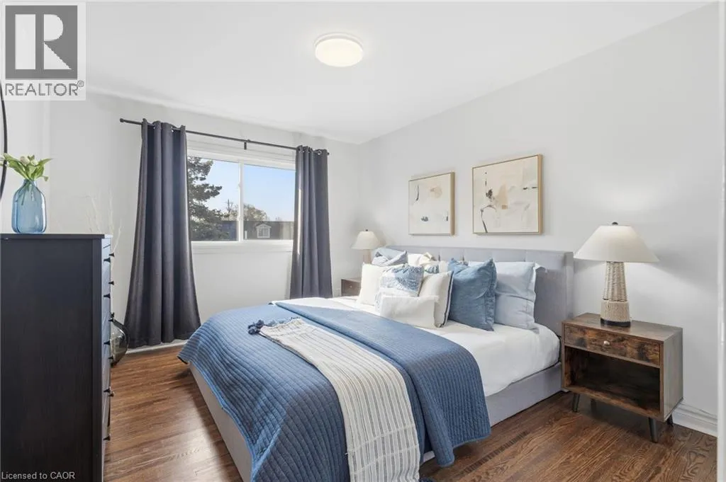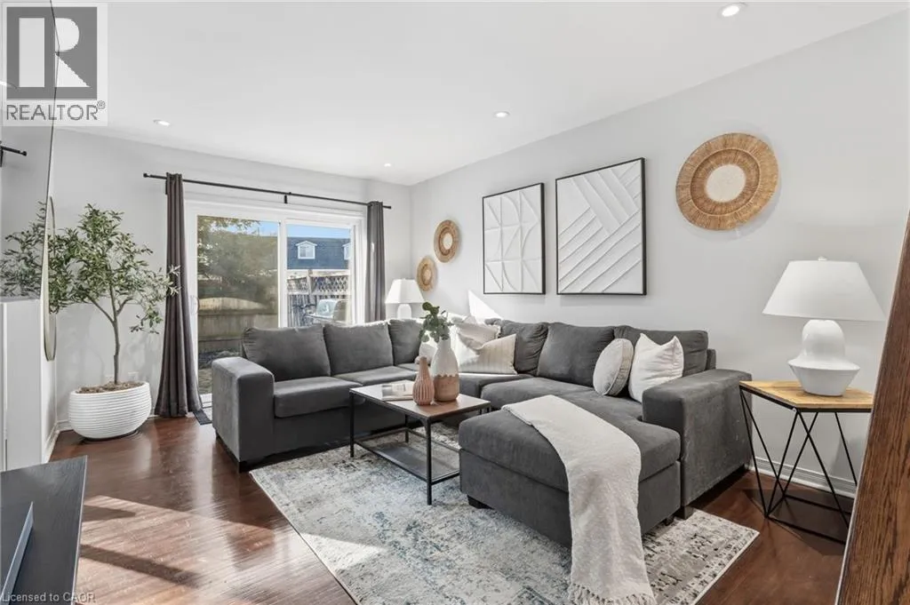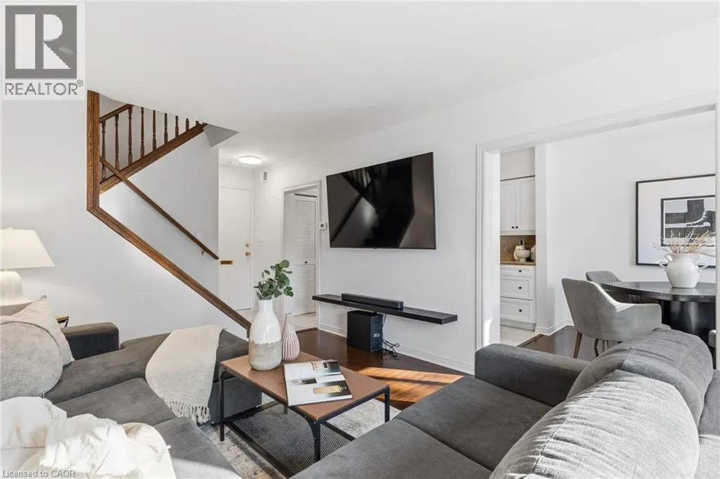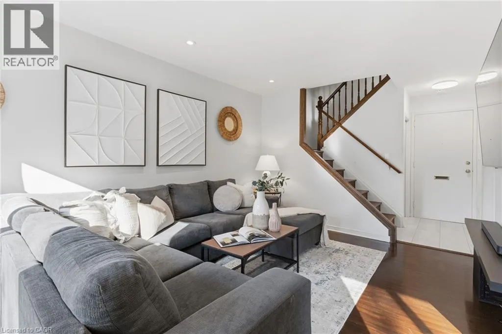 Brant to Mount Forest to Meadowbrook A wonderful condominium opportunity in Burlington's Mountainside neighbourhood! This 2 bedroom 2 storey townhome provides numerous functional living spaces. The kitchen has ample cabinetry & storage and features a stainless steel gas range. Hardwood throughout both levels and newly added pot-lights compliment the natural light offered by the private walkout to a fenced-in yard. A generously sized 3 piece bathroom & in-suite laundry are right off the bedrooms on the upper level. 2 exclusive use parking spaces, visitor parking, and the year round property upkeep offers a low maintenance lifestyle for families, first time buyers, and investors alike. Steps to shopping centres & public transit, or just minutes to major highway access, GO transit, and Downtown Burlington. (id:27476)