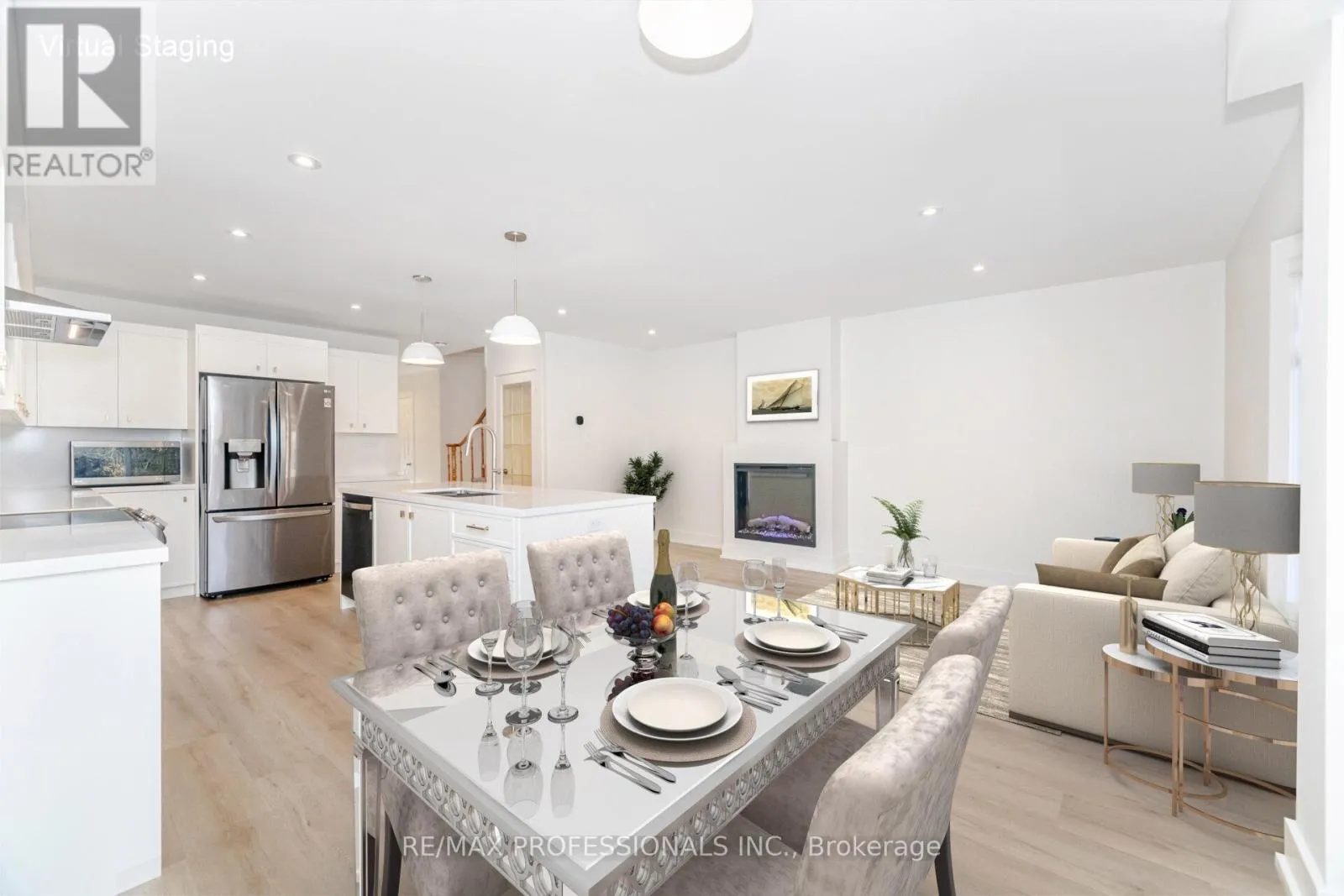 Guelph Line/New St/ Walkers Line Step into exquisite refined living with this executive luxuriously renovated townhome, perfectly positioned in one of the area's most desirable neighbourhoods in coveted Roseland Forest. Enjoy beautiful views from the home and backyard which is nestled along a picturesque ravine. Every detail has been thoughtfully curated, showcasing a seamless blend of sophistication, comfort, and modern design. The main level offers an airy, open-concept layout enhanced by the gorgeous newly redesigned chef-inspired kitchen featuring quartz countertops, center island, custom cabinetry, and high-end stainless steel appliances, premium flooring, elegant lighting, and beautiful electric fireplace. The beautiful dining area walks out to the private patio with special ravine views. Upstairs, two extremely spacious bedrooms provide serene retreats, each finished with upscale touches and abundant natural light. The beautiful suites both come with ensuites including spectacular updated bathrooms, and large closets which continues the home's elevated aesthetic with designer fixtures and timeless finishes. The fully finished basement extends the living space, ideal for an additional bedroom, private lounge, home theatre, or stylish office - offering versatility to suit any lifestyle. In the basement you will find one more additional full bathroom perfect for guest visits. Complete with a private outdoor area and situated close to top-rated amenities, downtown Burlington, the lake, parks, and boutique conveniences, this home delivers an unparalleled blend of luxury and location. A rare offering of elegance, comfort, and modern living - truly a standout property ready for you to call home. *Please note: Pictures and Video have been virtually staged. (id:27476)