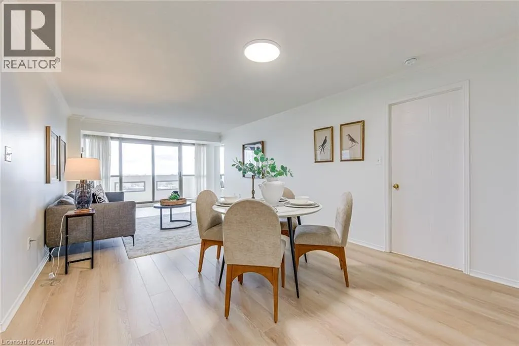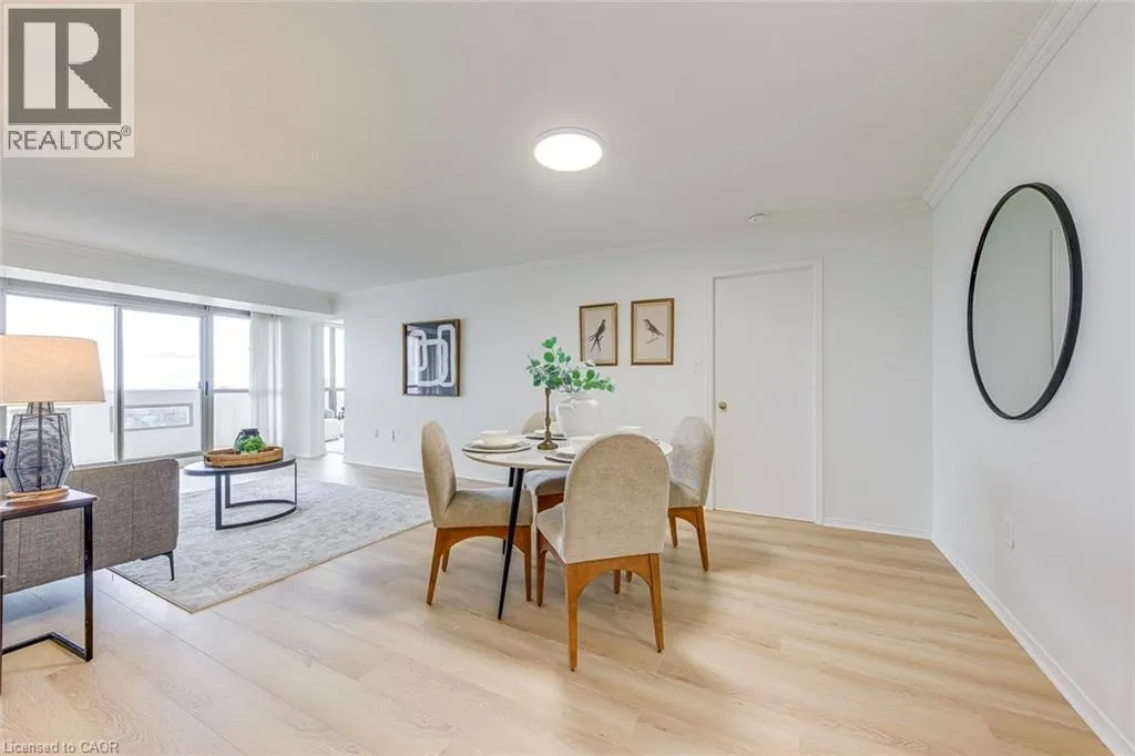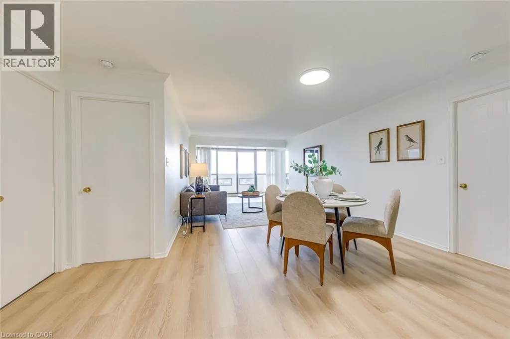 Appleby to Pinedale Welcome to one of Burlingtonâs most sought-after condominium communities, offering exceptional comfort, security, and convenience in a prime location. This beautifully updated 2-bedroom, 2-bath suite features 1,222 sq. ft. of bright, open-concept living space with new flooring, fresh paint, crown moulding, and expansive windows that fill the home with natural light. The spacious living and dining areas access an enclosed balcony with sweeping east-facing views of Lake Ontario and the Burlington skyline, creating the perfect extension of your living space. The bright renovated kitchen offers stainless steel appliances, ample cabinetry, updated hardware, tile flooring, and a clean, functional layout ideal for everyday cooking or entertaining. The generous primary bedroom includes an oversized close, 4-piece ensuite bath, and access to a sunroom that makes an excellent reading nook or home office. A second large bedroom, full bath, in-suite laundry, and two underground parking spaces add comfort and practicality. Residents enjoy an impressive list of amenities including an indoor pool, sauna, exercise room, library, media room, party room, games room, car wash bay, outdoor BBQ area, visitor parking, and beautifully maintained grounds. Condo fees cover building insurance, cable TV, high-speed internet, water, landscaping, snow removal, parking, and all common area facilities. This unbeatable location places you steps to Appleby GO Station, Fortinos, Longoâs, major shopping plazas, restaurants, cafés, medical centres, Bateman Community Centre and Library and the waterfrontâs scenic parks and trails, with quick access to the QEW, 403, and 407. Families will appreciate proximity to top-rated schools including Frontenac PS, Pineland (French Immersion), Nelson HS, Ascension CES, and Assumption CSS. A perfect opportunity for downsizers, first-time buyers, or anyone seeking move-in-ready living in a quiet, well-managed community close to every convenience Burlington offers. (id:27476)