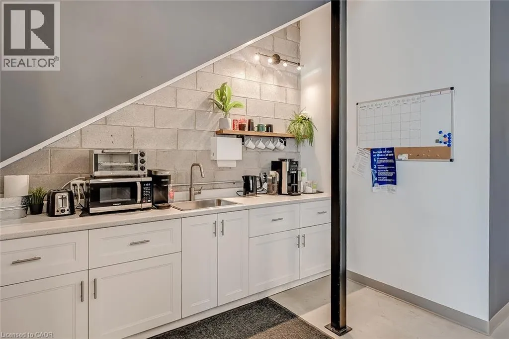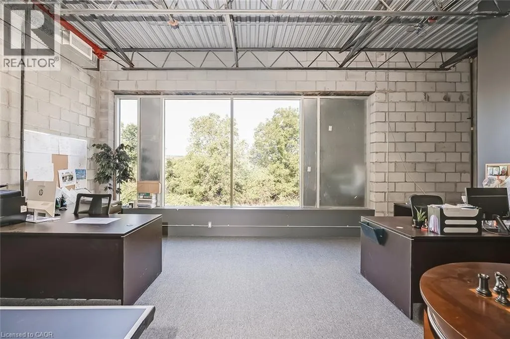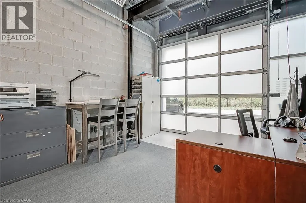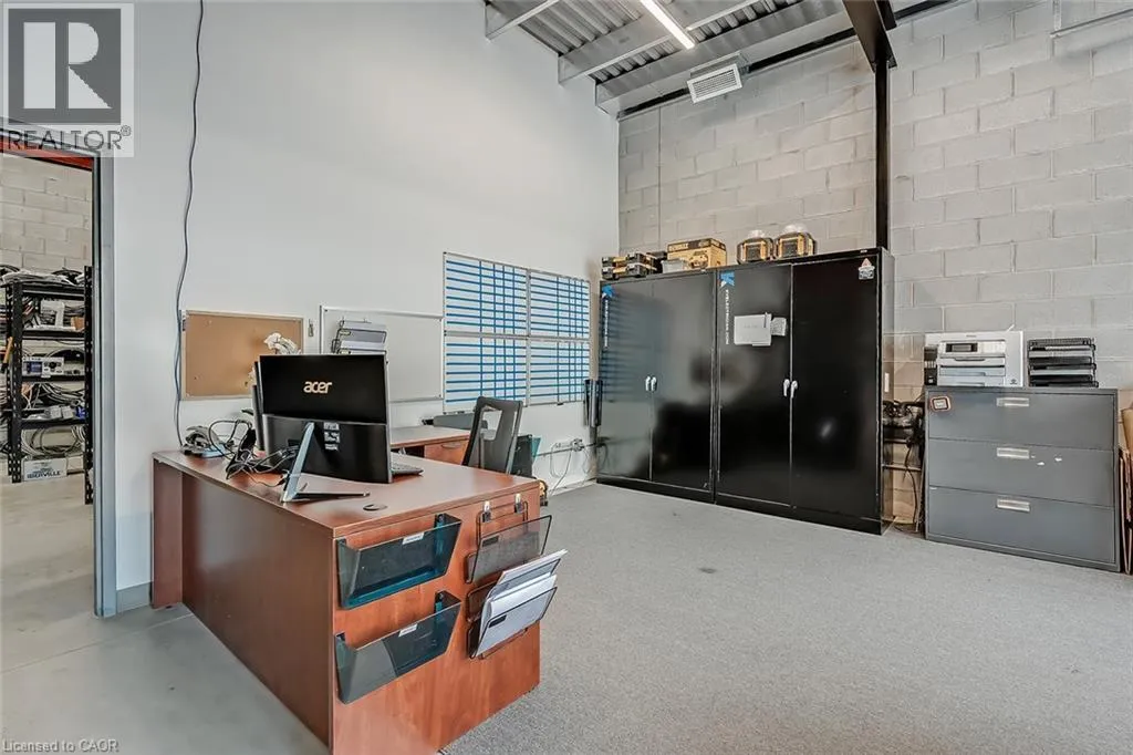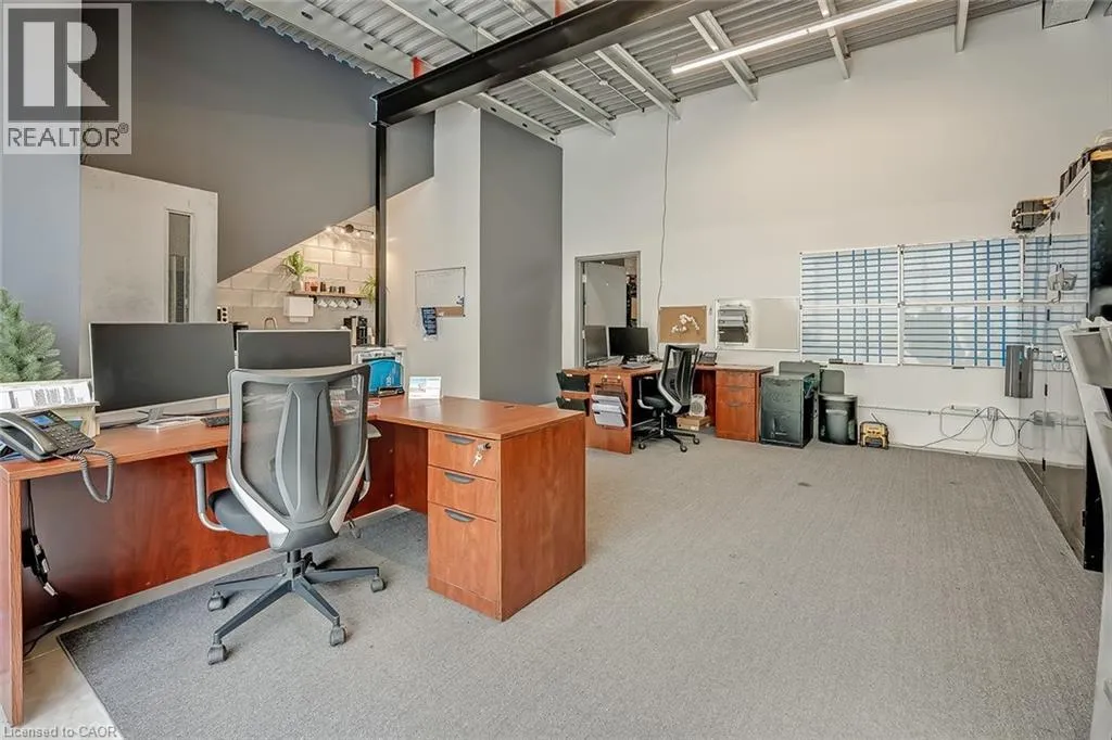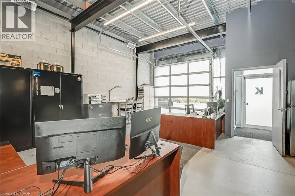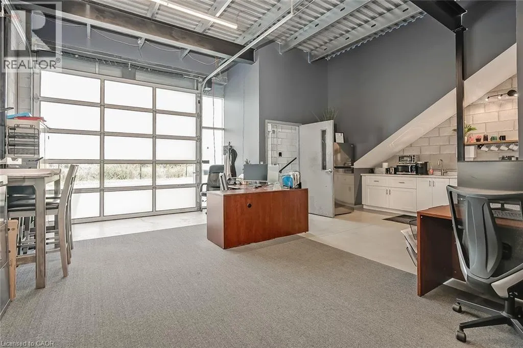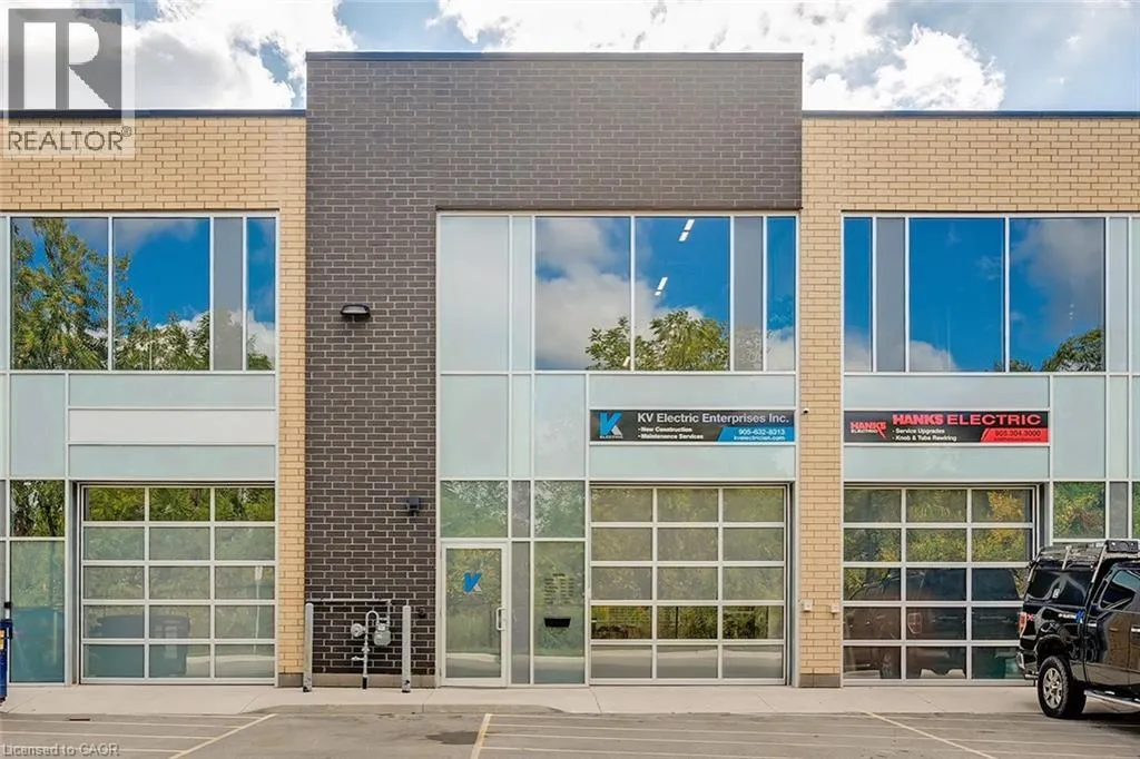 Plains Rd E to King Rd. PRIME INDUSTRIAL-COMMERCIAL OPPORTUNITY - This rare and versatile unit offers approximately 2,172 sq. ft. of functional space, including a 1,000 sq. ft. upper mezzanine. Bright and inviting with expansive windows, a glass front entry, and a 10â x 10â drive-in shipping door, this property is designed to meet a wide range of business needs. The main floor features polished concrete floors, a functional kitchenette, spacious washroom, and dedicated storage. The open-concept mezzanine provides flexible options for additional storage, offices, meetings or collaborative work and even includes a wet bar. Additional highlights include 3-phase 60amp/600v electrical service, sprinkler system, and ample on-site parking for staff and visitors. With excellent visibility from King Road and convenient access to Highways 403, 407, QEW, and GO Transit, the location is as strategic as it is practical. Seller is willing to close the adjoining wall or leave it open should you wish to expand by leasing the neighbouring unit. (id:27476)