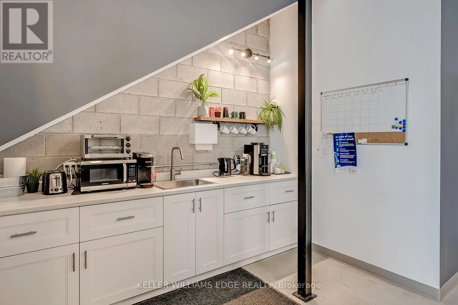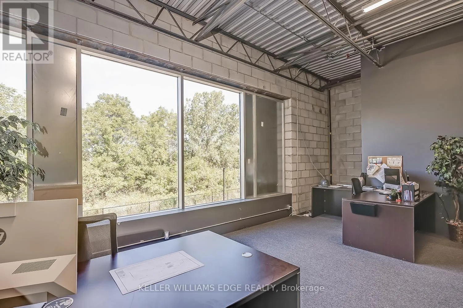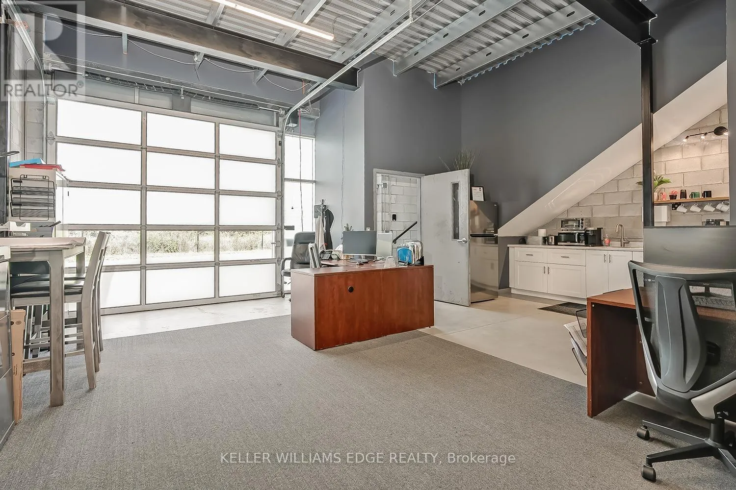 Cross Streets: King Rd and Plains Rd E or North Service Rd. ** Directions: Plains Rd E to King Rd. PRIME INDUSTRIAL-COMMERCIAL OPPORTUNITY - This rare and versatile unit offers approximately 2,172 sq. ft. of functional space, including a 1,000 sq. ft. upper mezzanine. Bright and inviting with expansive windows, a glass front entry, and a 10' x 10' drive-in shipping door, this property is designed to meet a wide range of business needs. The main floor features polished concrete floors, a functional kitchenette, spacious washroom, and dedicated storage. The open-concept mezzanine provides flexible options for additional storage, offices, meetings or collaborative work and even includes a wet bar. Additional highlights include 3-phase 60amp/600v electrical service, sprinkler system, and ample on-site parking for staff and visitors. With excellent visibility from King Road and convenient access to Highways 403, 407, QEW, and GO Transit, the location is as strategic as it is practical. Seller is willing to close the adjoining wall or leave it open should you wish to expand by leasing the neighbouring unit. (id:27476)