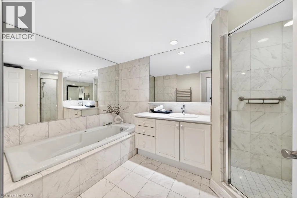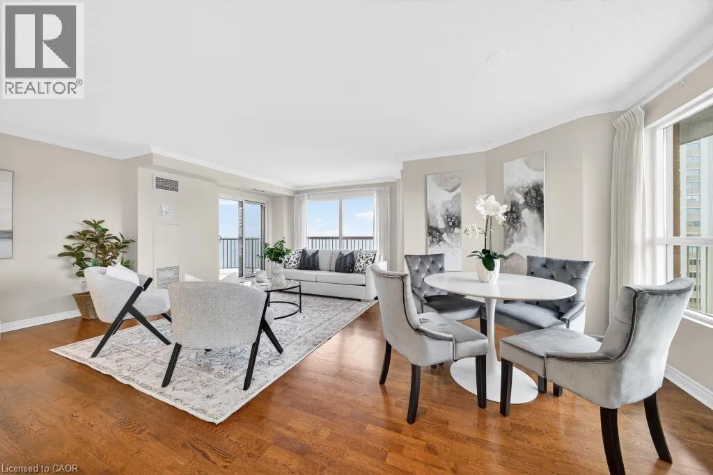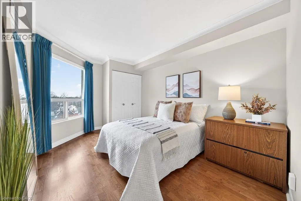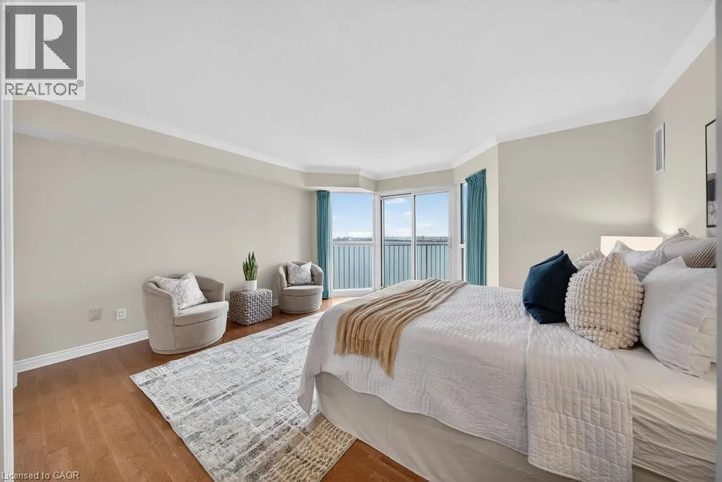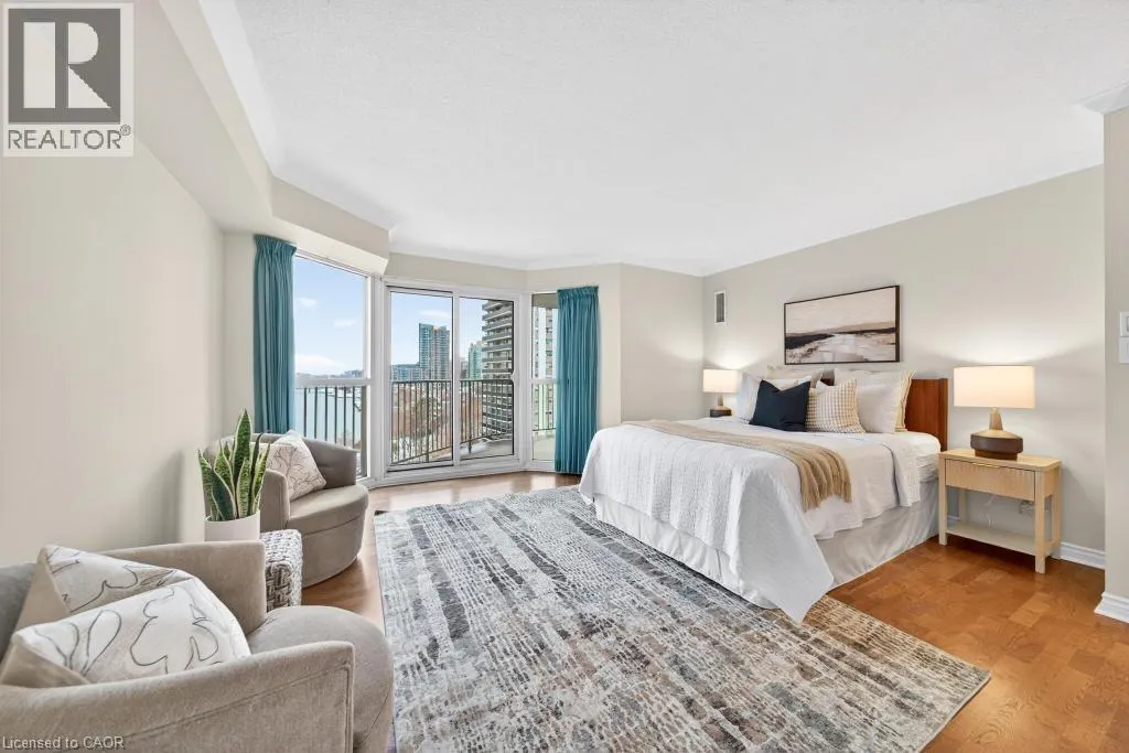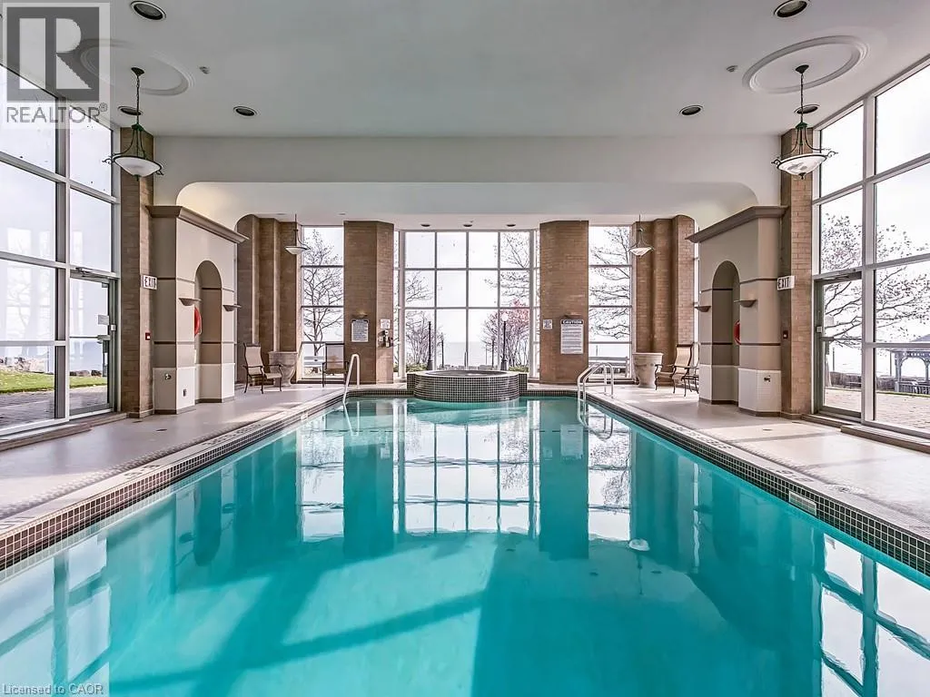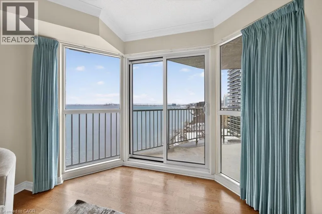 West of Smith Ave Discover exceptional lakeside living in one of Burlingtonâs most desirable buildings. This bright and spacious 2-bedroom, 2-bathroom condo offers stunning southwest views of Lake Ontario and downtown Burlington, filling the home with natural light and the glow of spectacular sunsets. Featuring hardwood flooring and an updated kitchen, the suite provides a warm and comfortable space ideal for both everyday living and entertaining. Enjoy the perfect location peacefully set away from the bustle yet just a short walk to downtownâs restaurants, shops, the Performing Arts Centre, Art Gallery, Spencer Smith Park, and waterfront trails. The building offers impressive amenities, including an indoor pool and hot tub, exercise room, library, party room, BBQ area, on-site superintendent, security system, and direct water access for kayaking. One parking space and one locker are included. This is a rare opportunity to experience convenience, views, and lifestyle all in one exceptional home. (id:27476)