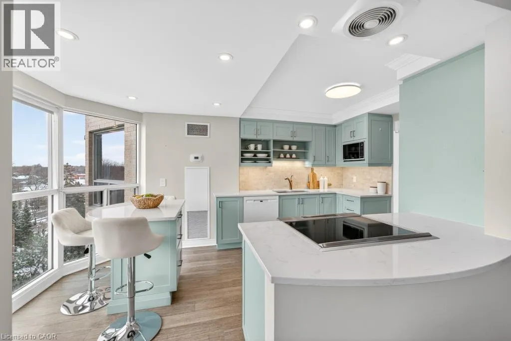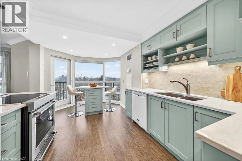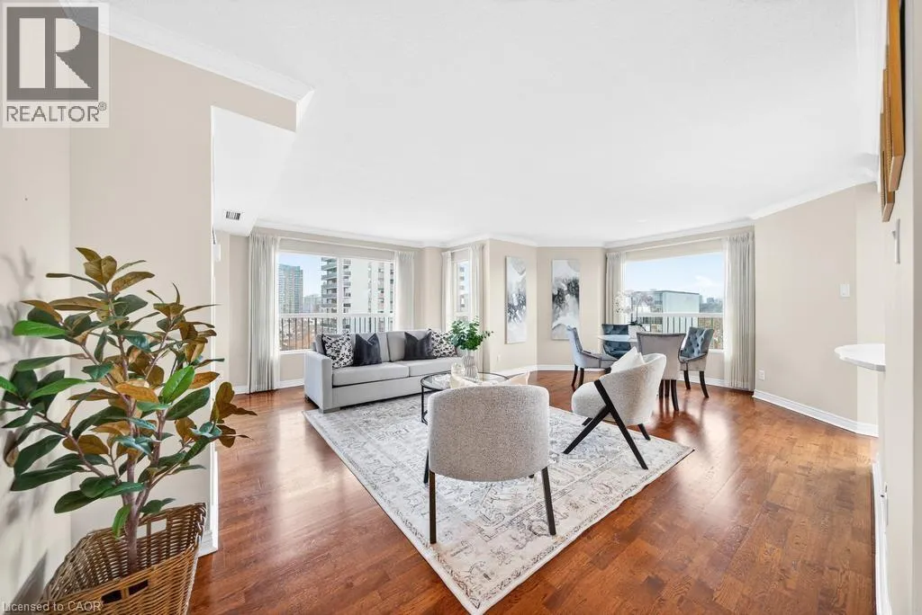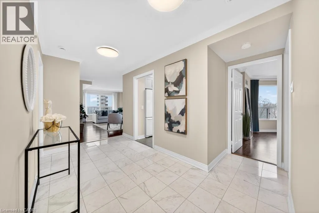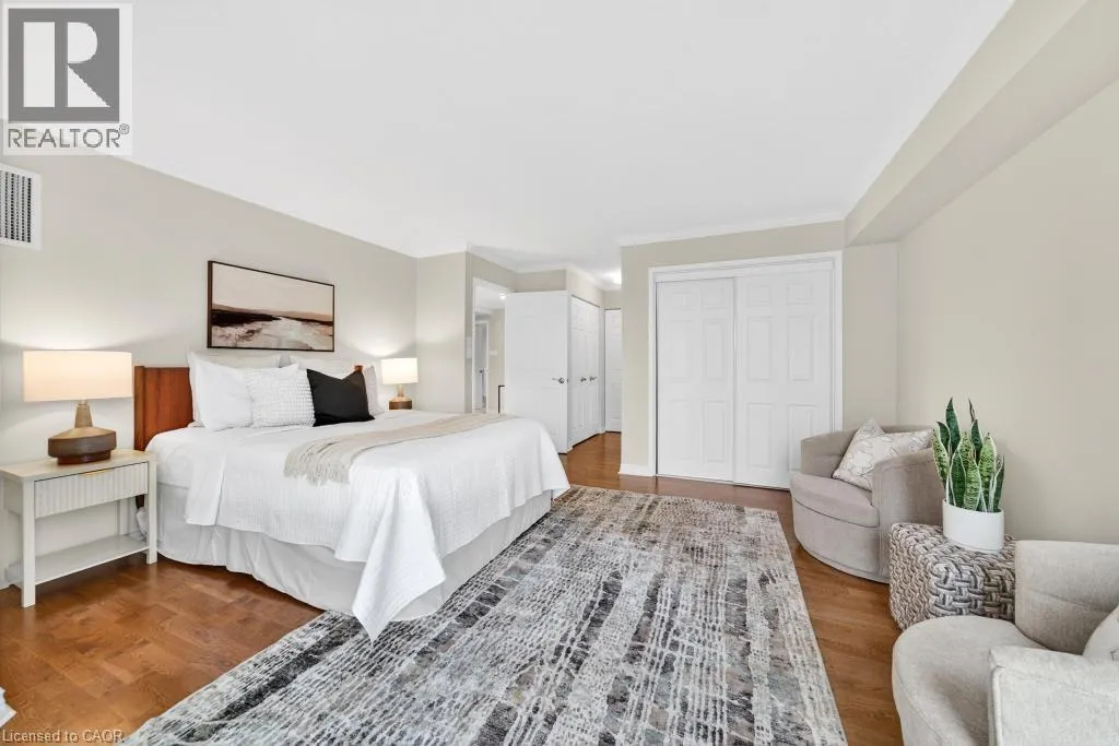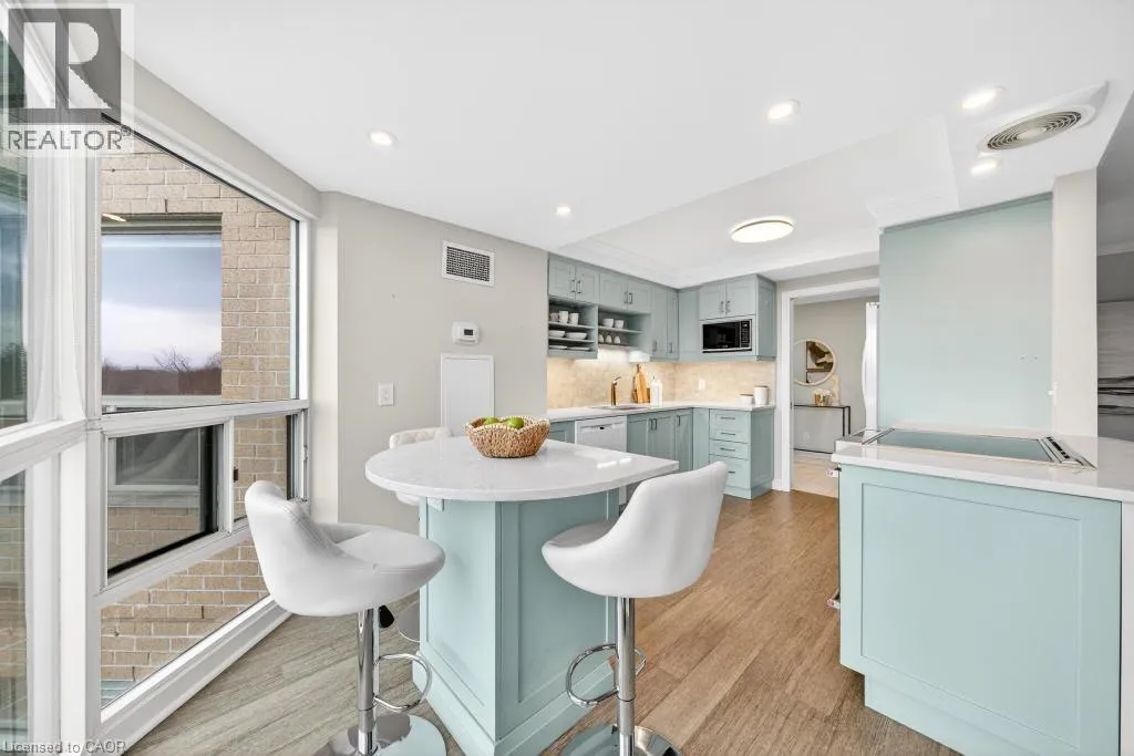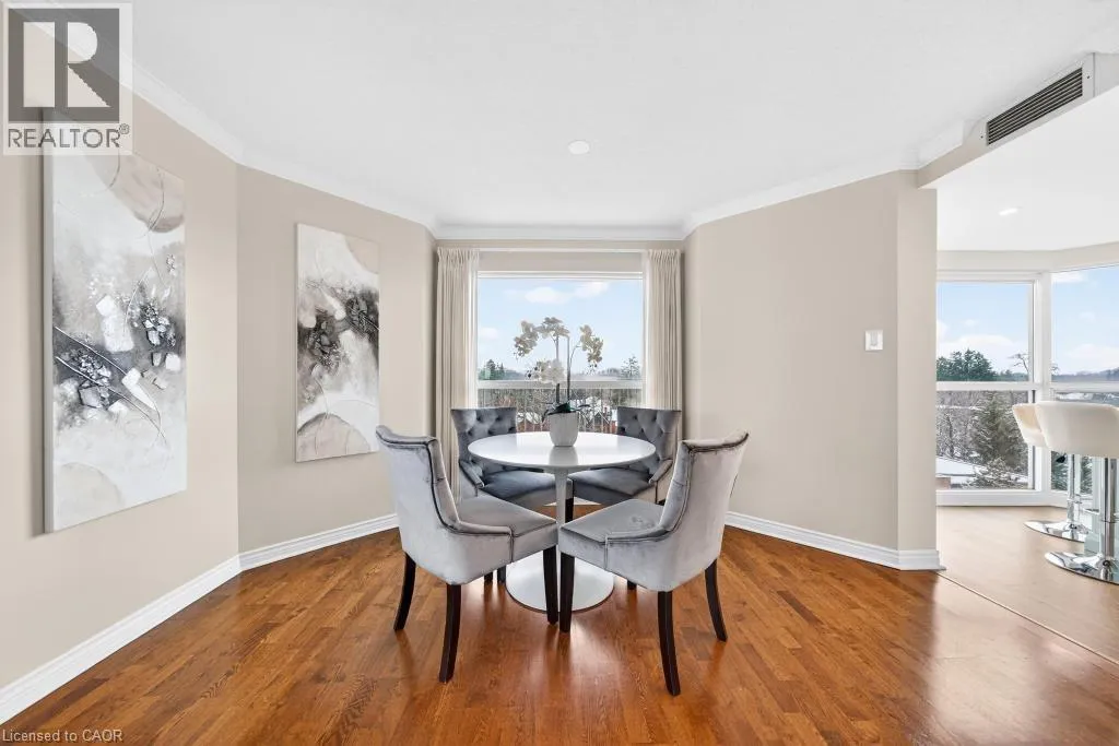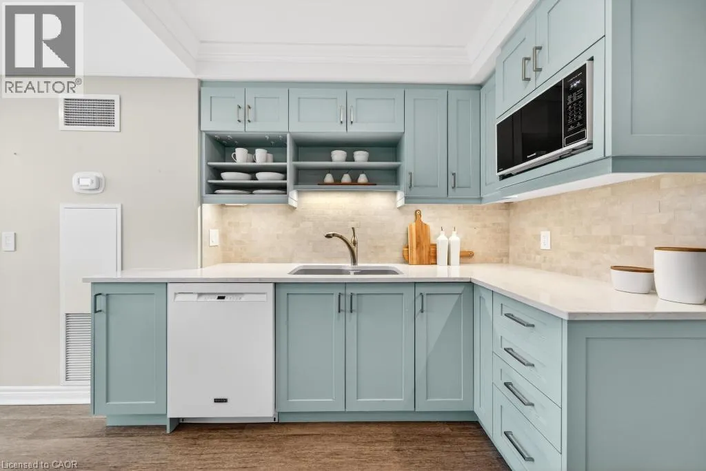 West of Smith Ave Discover exceptional lakeside living in one of Burlingtonâs most desirable buildings. This bright and spacious 2-bedroom, 2-bathroom condo offers stunning southwest views of Lake Ontario and downtown Burlington, filling the home with natural light and the glow of spectacular sunsets. Featuring hardwood flooring and an updated kitchen, the suite provides a warm and comfortable space ideal for both everyday living and entertaining. Enjoy the perfect location peacefully set away from the bustle yet just a short walk to downtownâs restaurants, shops, the Performing Arts Centre, Art Gallery, Spencer Smith Park, and waterfront trails. The building offers impressive amenities, including an indoor pool and hot tub, exercise room, library, party room, BBQ area, on-site superintendent, security system, and direct water access for kayaking. One parking space and one locker are included. This is a rare opportunity to experience convenience, views, and lifestyle all in one exceptional home. (id:27476)