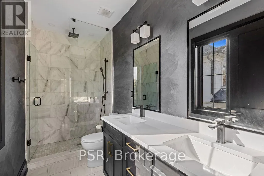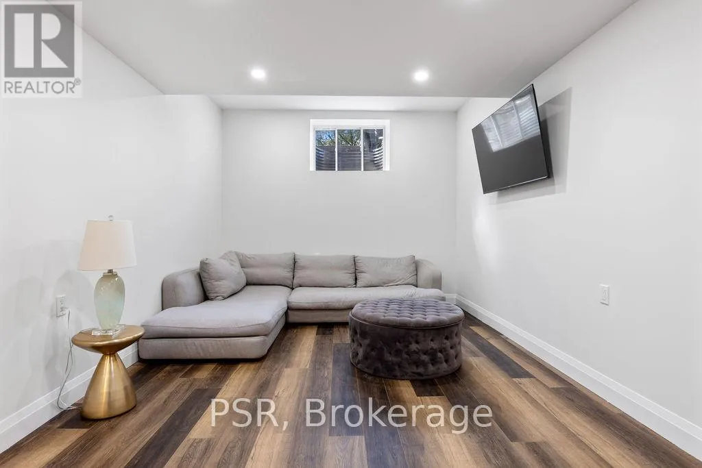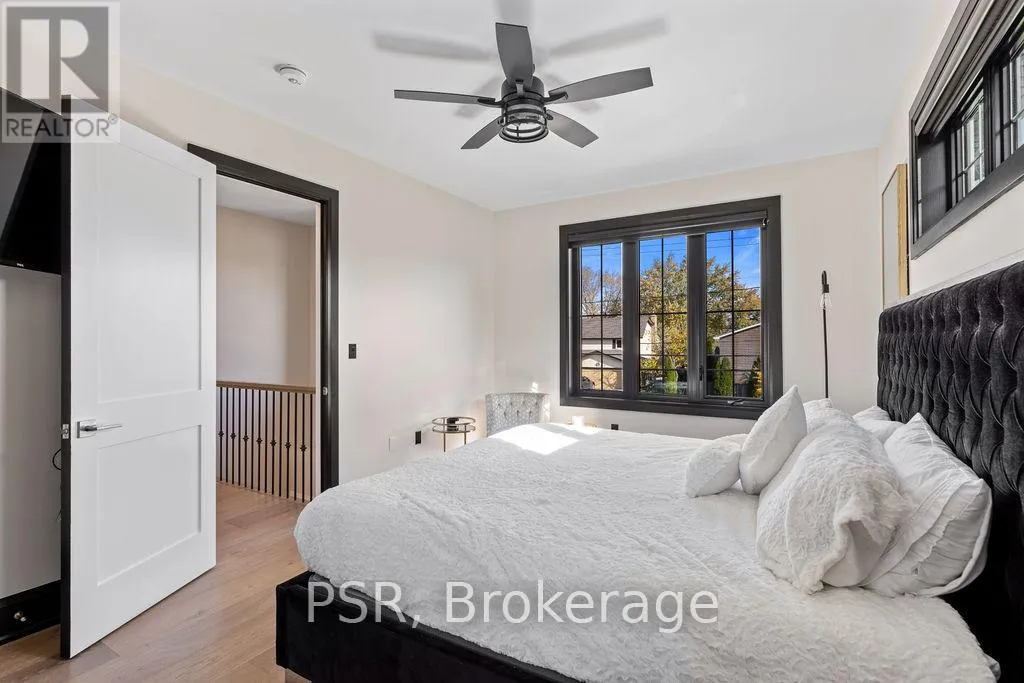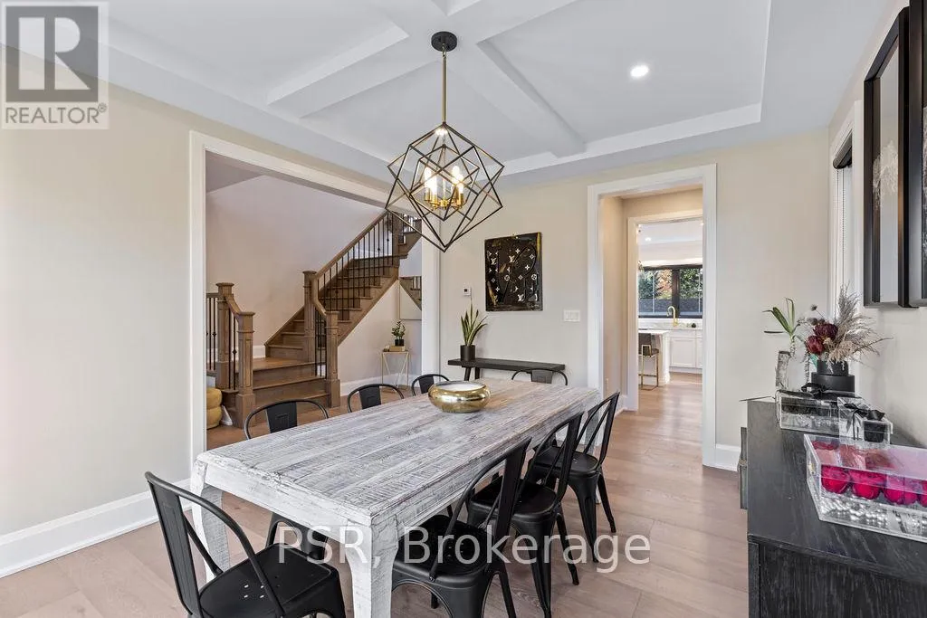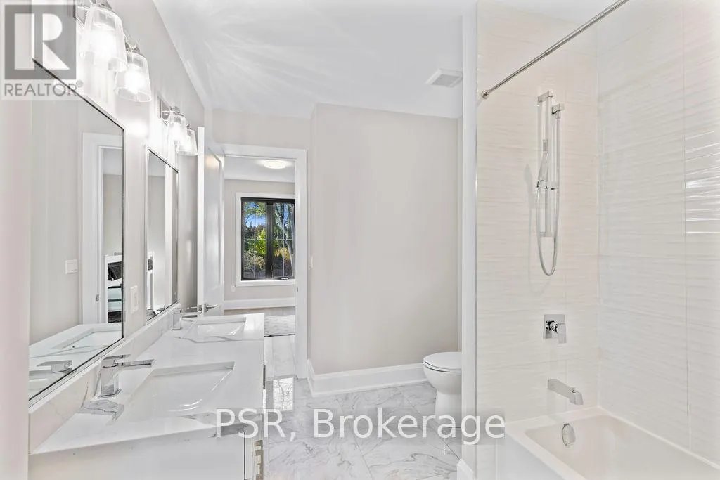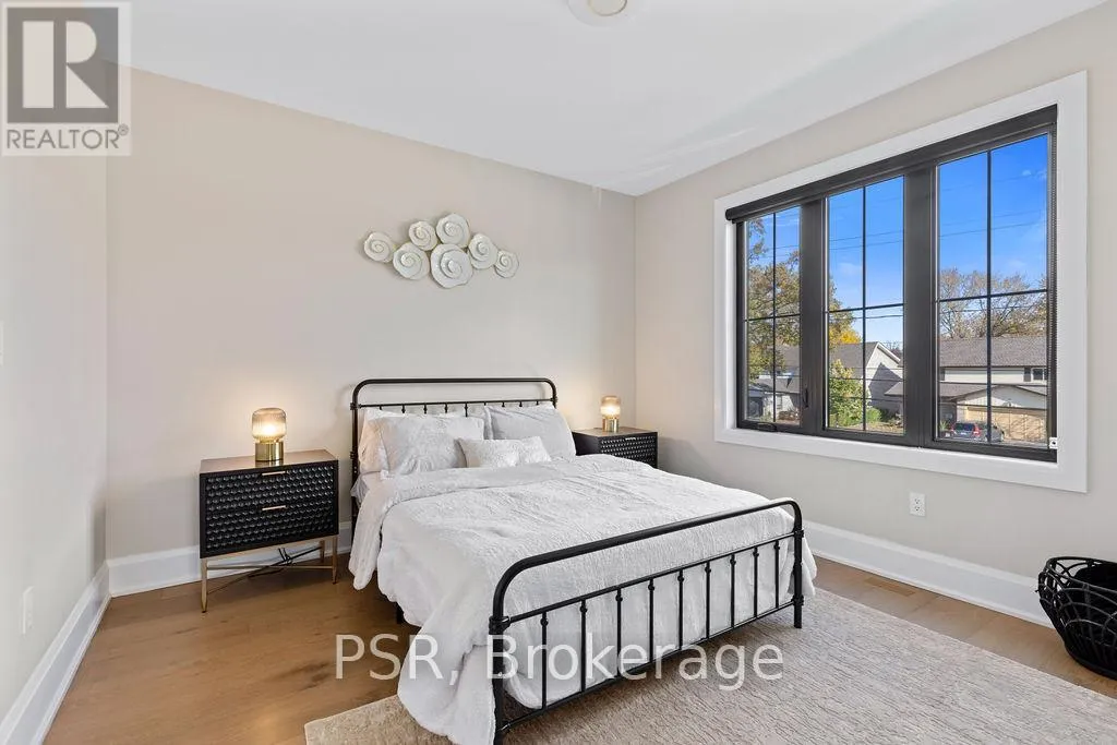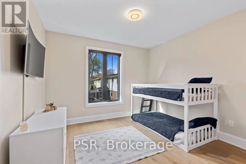 Appleby Line and Sylvana Cres Exceptional, custom-built home only 2 years new, located in the highly sought-after Shoreacres neighbourhood. This impressive 2-storey residence offers 3+1 bedrooms, 3.5 bathrooms and approx. 2,250 sq. ft. of living space plus a fully finished lower level. The main floor features a spacious foyer leading to a formal dining room with coffered ceilings and a convenient servery. The gourmet kitchen includes a large island, quartz counters, stainless steel appliances, custom white cabinetry and a beautiful backsplash. It opens to a bright family room with a soaring 2-storey ceiling, gas fireplace with feature wall and walkout to the backyard. A stylish powder room and functional mudroom with garage access complete the level. Upstairs are 3 generous bedrooms, including a primary suite with a large walk-in closet and spa-like 4-piece ensuite. The 5-piece main bath offers dual sinks and shared access for the additional bedrooms. Bedroom-level laundry provides added convenience. The fully finished lower level includes a 4th bedroom, spacious rec room, wet bar, 3-piece bath and ample storage. Exterior highlights include a 4-car driveway, irrigation system, excellent curb appeal and a large private backyard. Additional features: wide-plank engineered flooring on the main and upper levels, 9-ft smooth ceilings and pot lights throughout (id:27476)