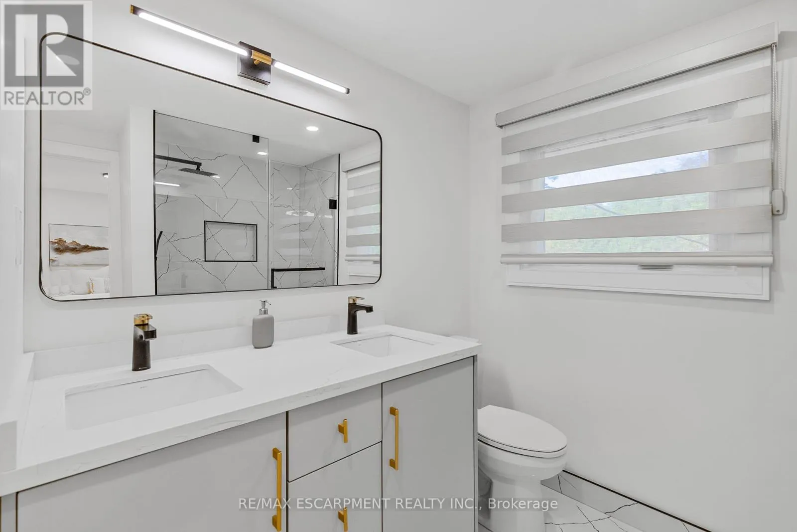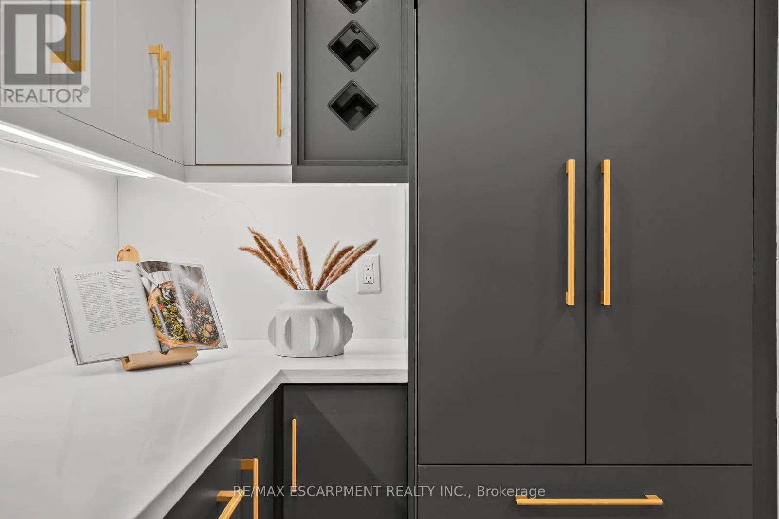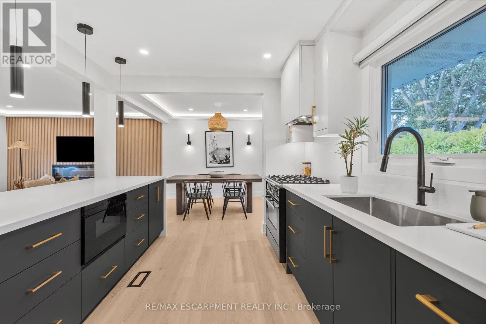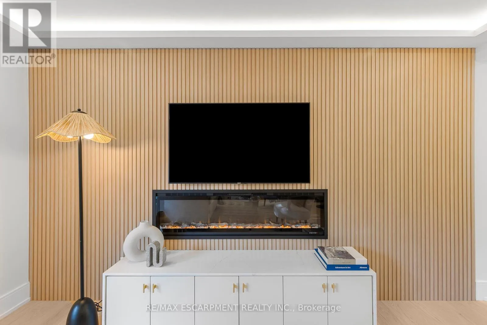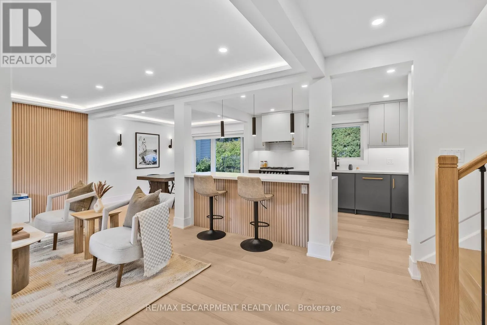 Cross Streets: LAKESHORE ROAD/WALKERS LINE. ** Directions: Lakeshore Road or Spruce Avenue to Strathcona Drive. Welcome to this updated family home in the heart of Shoreacres. RECENTLY ADDED JACK-AND-JILL BATH ON UPPER LEVEL and updated throughout in 2024 with over 2000 square feet of finished living space, this home has been transformed with custom finishes throughout. The open-concept main floor is greeted by a functional entrance with custom built-ins and storage (including closet with bench) that lead into the living room, dining area, and kitchen. The kitchen features paneled Fisher & Paykel appliances, a waterfall quartz island with seating, and sleek cabinetry offering ample counter and storage space. Upstairs, you'll find three spacious bedrooms , all with their own private ensuites. The lower levels extend your living space with two family/rec rooms, wet bar area, and in-wall wiring ready for a home theatre setup - ideal for movie nights or a teen hangout space. This level also includes a fourth bedroom with a 4-piece ensuite, perfect for teens, extended family, and guests. Updates include engineered hardwood floors, fluted feature walls, built-in fireplace, custom and motorized blinds, and integrated wall lighting, newer windows throughout, refreshed landscaping, garage door (2025), & owned hot water heater. Just steps to the lake, this is an opportunity to move into a turnkey, designer-finished home in a true family-friendly neighbourhood. Welcome to one of South Burlington's most sought-after neighbourhoods, known for its top-rated schools, parks, and strong community feel. (id:27476)