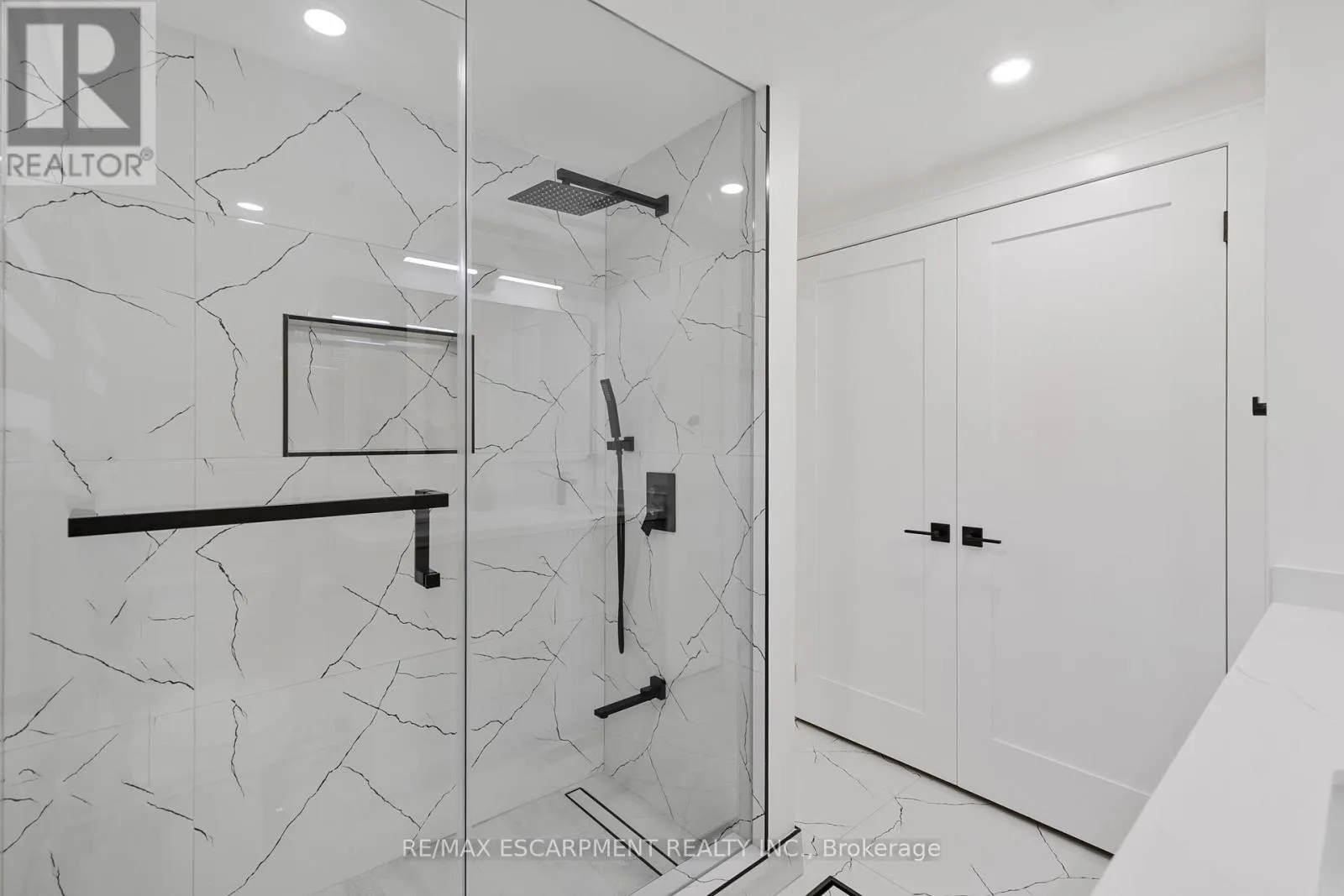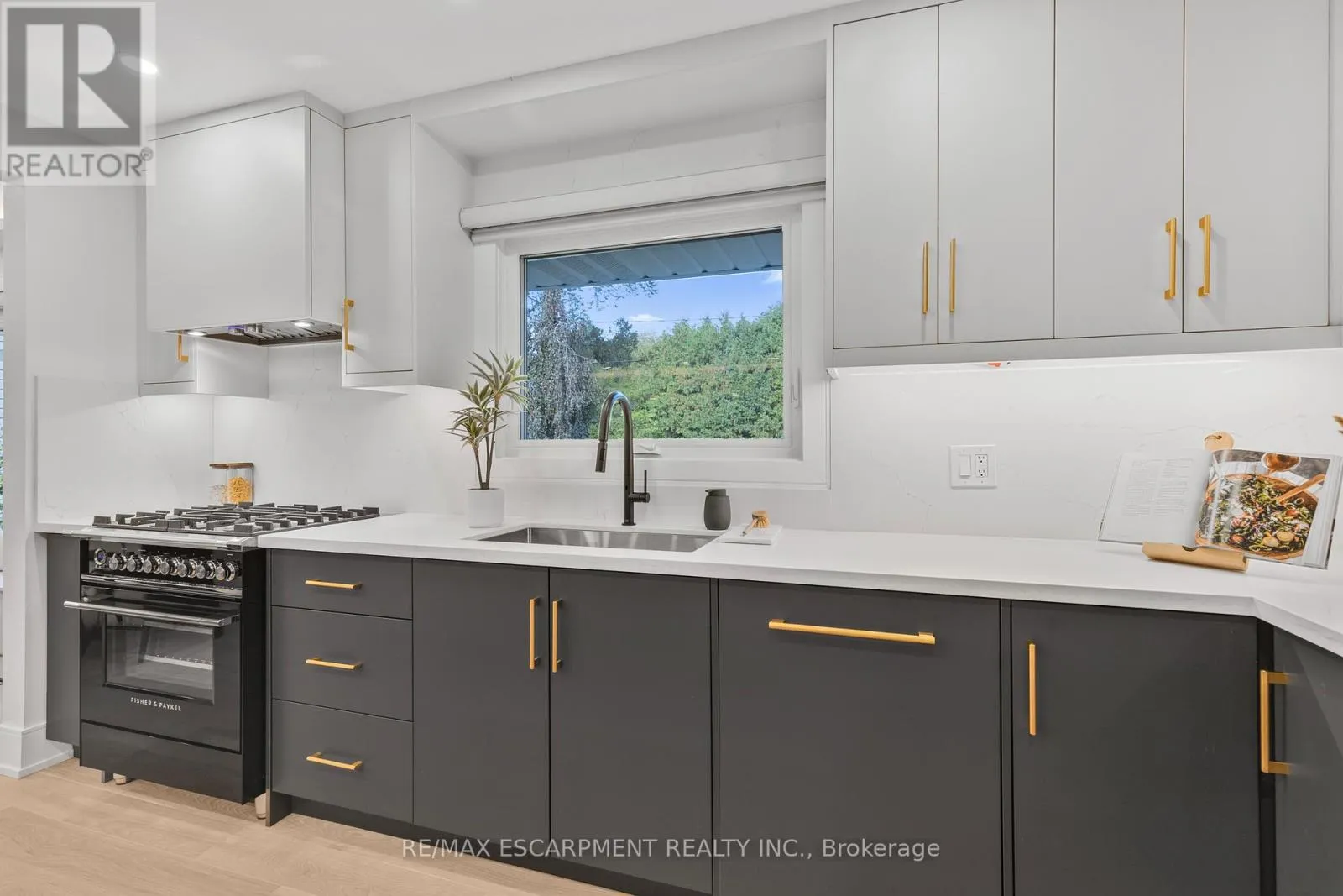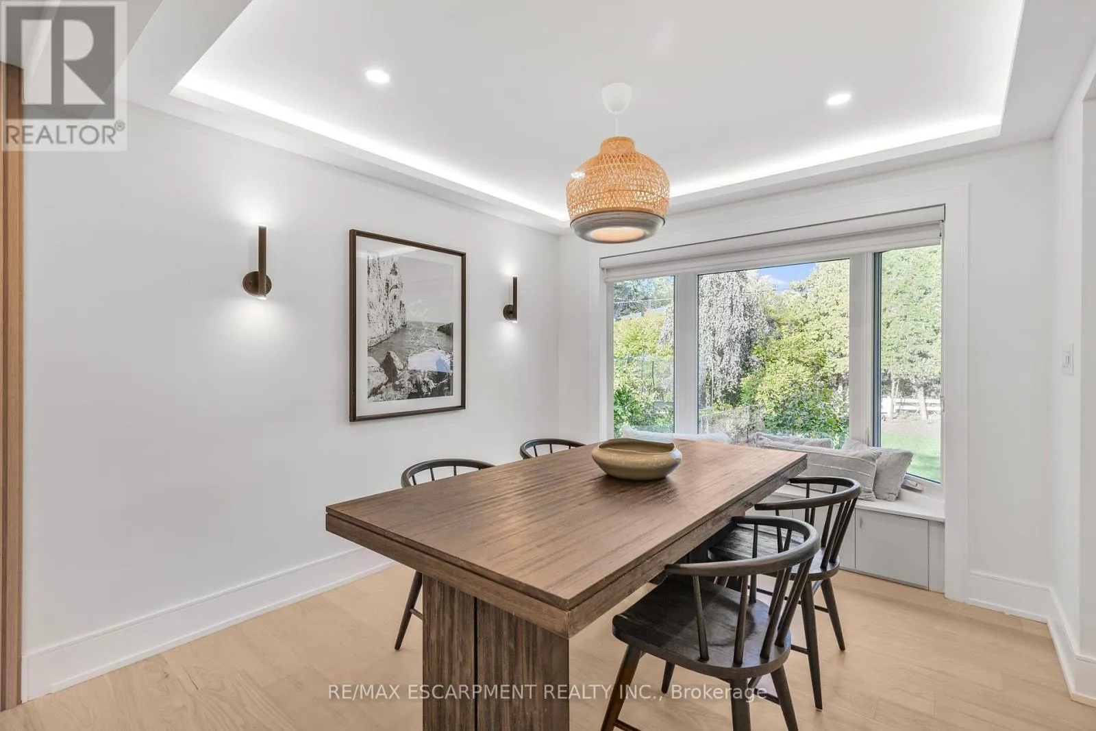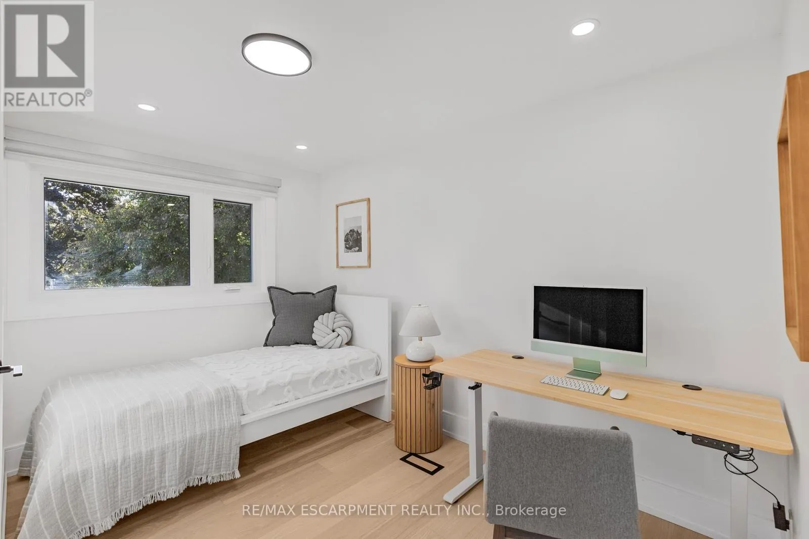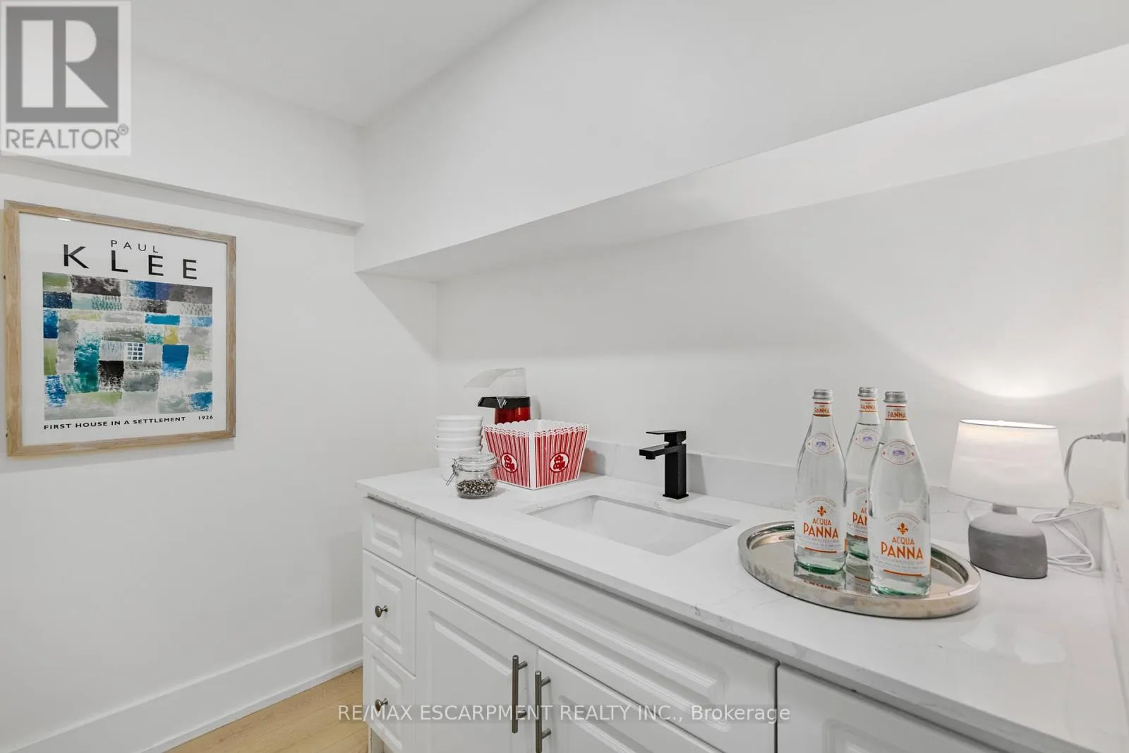 Cross Streets: LAKESHORE ROAD/WALKERS LINE. ** Directions: Lakeshore Road or Spruce Avenue to Strathcona Drive. Welcome to this updated family home in the heart of Shoreacres. RECENTLY ADDED JACK-AND-JILL BATH ON UPPER LEVEL and updated throughout in 2024 with over 2000 square feet of finished living space, this home has been transformed with custom finishes throughout. The open-concept main floor is greeted by a functional entrance with custom built-ins and storage (including closet with bench) that lead into the living room, dining area, and kitchen. The kitchen features paneled Fisher & Paykel appliances, a waterfall quartz island with seating, and sleek cabinetry offering ample counter and storage space. Upstairs, you'll find three spacious bedrooms , all with their own private ensuites. The lower levels extend your living space with two family/rec rooms, wet bar area, and in-wall wiring ready for a home theatre setup - ideal for movie nights or a teen hangout space. This level also includes a fourth bedroom with a 4-piece ensuite, perfect for teens, extended family, and guests. Updates include engineered hardwood floors, fluted feature walls, built-in fireplace, custom and motorized blinds, and integrated wall lighting, newer windows throughout, refreshed landscaping, garage door (2025), & owned hot water heater. Just steps to the lake, this is an opportunity to move into a turnkey, designer-finished home in a true family-friendly neighbourhood. Welcome to one of South Burlington's most sought-after neighbourhoods, known for its top-rated schools, parks, and strong community feel. (id:27476)