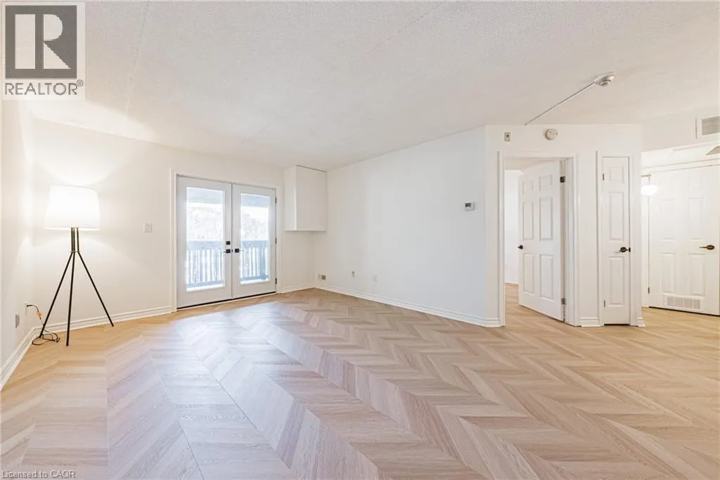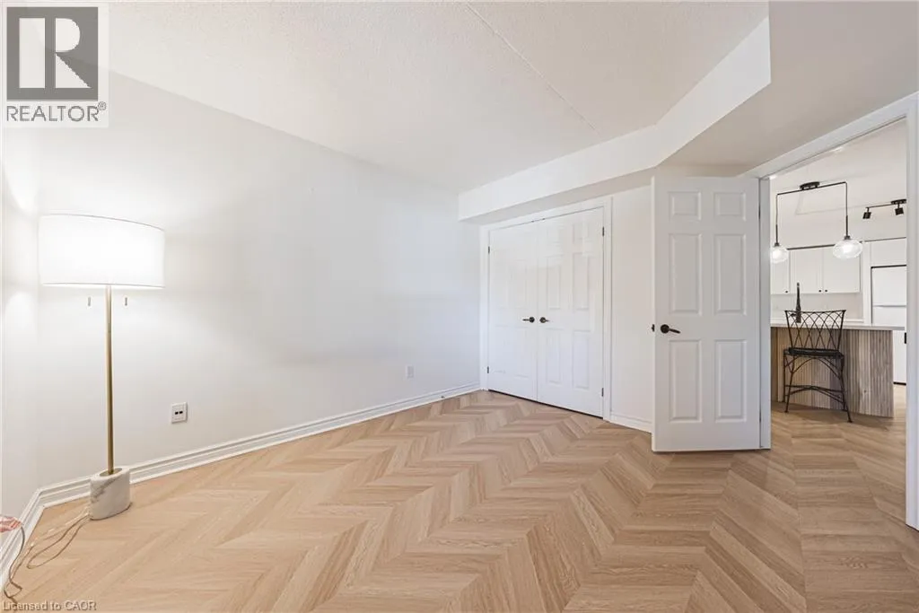 Upper Middle Rd to Cleaver Avenue Welcome to this beautifully newly renovated 1 bedroom + DEN condo unit that blends modern finishes with everyday functionality. The bright open-concept layout features all-new chevron flooring, fresh paint, and stylish lighting throughout. The upgraded kitchen offers sleek cabinetry and plenty of counter space â perfect for cooking and entertaining. The bedroom provides a comfortable retreat with ample closet storage, while the versatile den is ideal for a home office, guest area, or reading nook. Enjoy an inviting cozy living room that flows seamlessly to your private balcony â perfect for relaxing and unwinding after a long day. This unit includes two parking spaces, in-suite laundry, and is located within walking distance to all amenities. Don't miss your opportunity to live in a beautiful bright unit in the sought after Headon Forest neighbourhood! (id:27476)