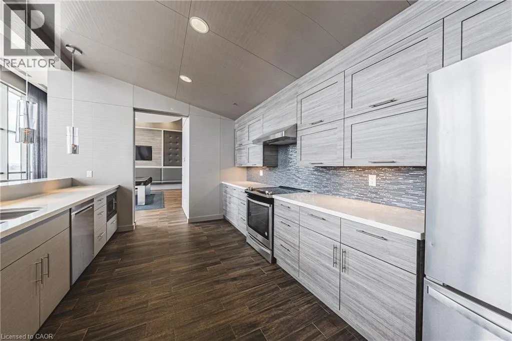 Fairview in bewtween Brant and Guelph Line A SOPHISTICATED Corner unit condo in the highly sough-after Paradigm Gran - unit #2001! This espansive 2 bedroom, 2 bathroom, 2 car Tandem parking, this condo offers approximately 1039 sq ft of contemporary living space and is located on the 20 storey hig-h-rise known as Paradigm Grand Condo's in the Brant/Fairview area of Burlington. Designed with style and comfort in mind, the unit features northeast exposure, letting in ample natural light. Upgraded Sleek finishings including quartz countertops, upgraded cabinetry and stainless-steel appliances, flooring thru-out! Prime location adjacent to Burlington Go Station, making citywide commuting effortless! Quick and easy access via QEW. 403 and 407, simplifying regional travel..Mere steps from downtown Burlington, offering boutique shopping, international dining, waterfront trails, Spencer Smith Park, and lifestyle amenities. Close proximity to Burlington Centre Mall and large retailers like Walmart - enabling everyday convenience. Residents at Paradigm Grand enjoy an impressively curated array of resort-style amenities: Indoor pool, hot tub, sauna, fully equipped fitness centre, half court basketball gym, outsoor terrace with BBQ and lounge areas, dog park and wash stations for pet owners, multiple party rooms, guest suites, theatre room, kids' playroom, games room and more. 24 hour concierge, secure key-fob access, video surveillance and controlled entry systems - ensuring safety and elevated lifestyle (id:27476)