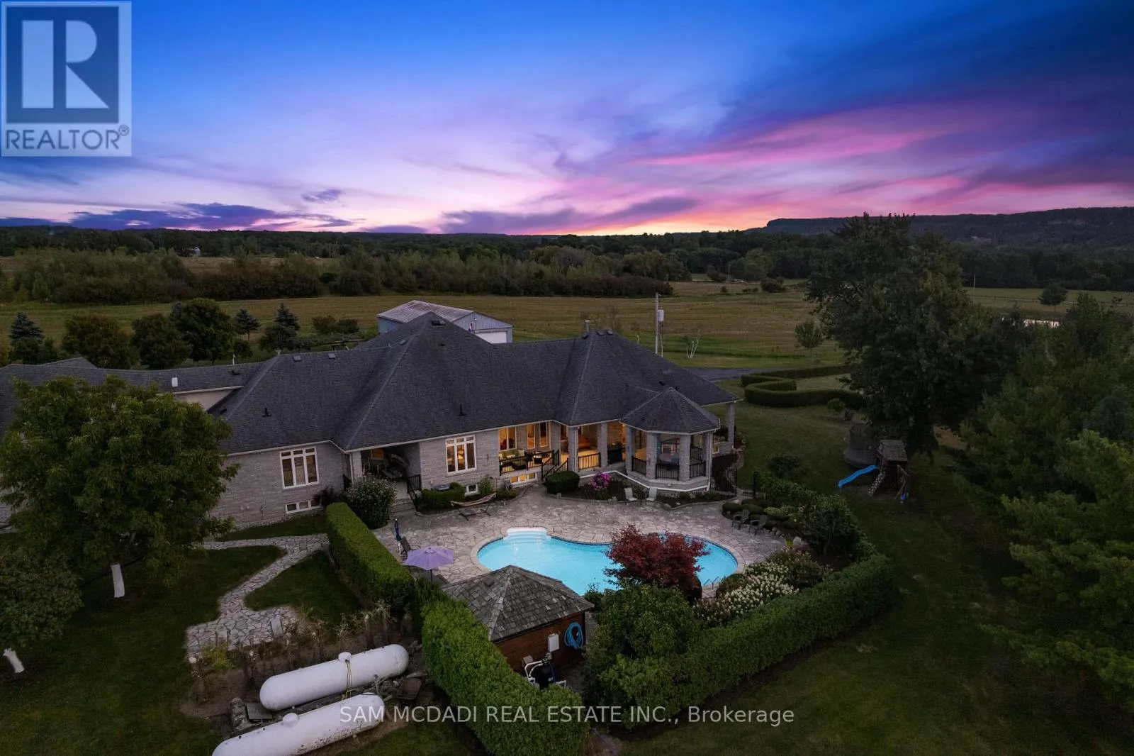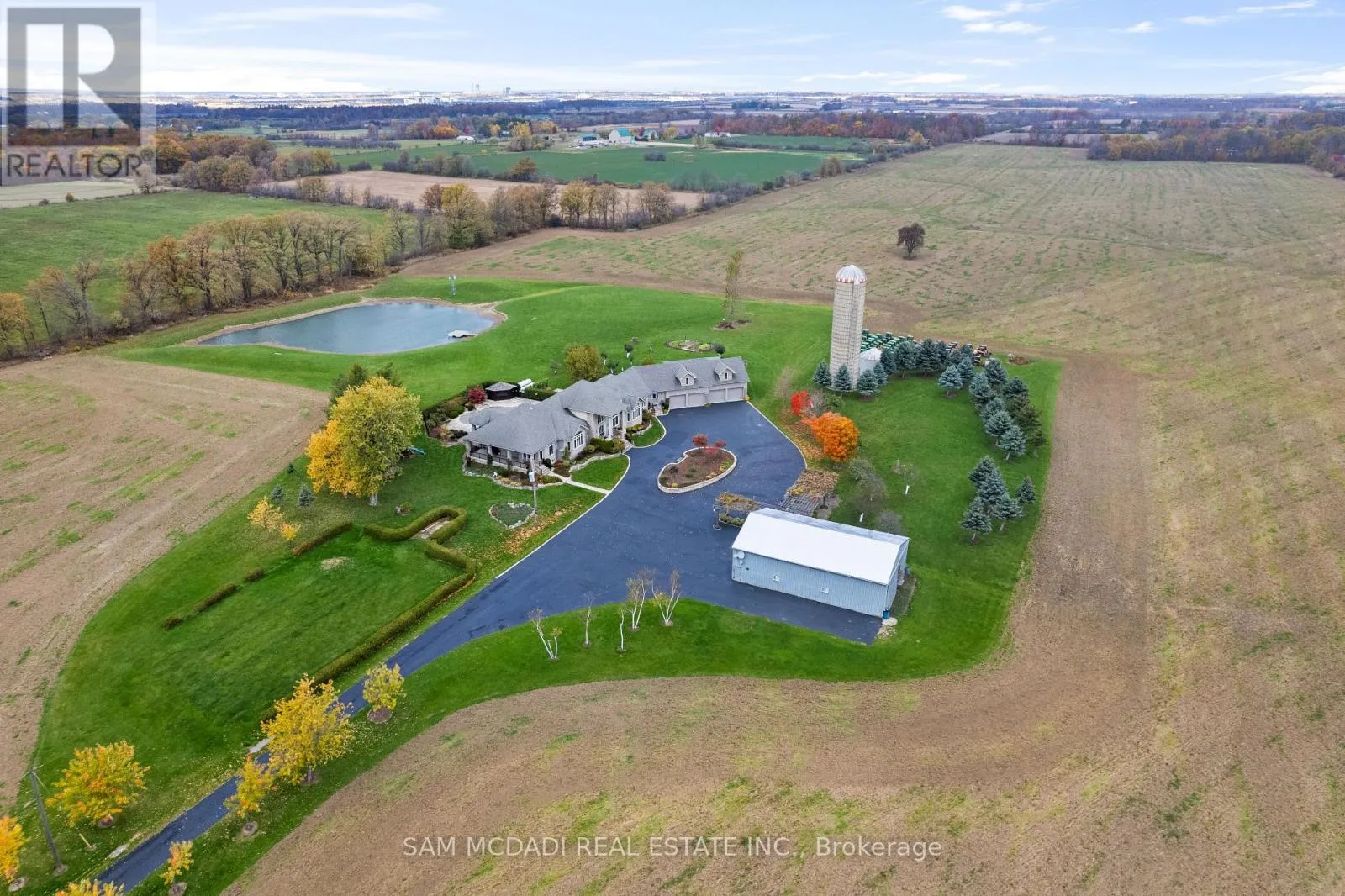 Cross Streets: Appleby Line and Britannia Rd. ** Directions: Via west on Britannia road take a left on Appleby Line. After crossing Side Rd 4, property is on the left. Welcome to 5431 Appleby Line, a sprawling 87-acre estate and one of the few remaining large parcels in Rural Burlington outside the Niagara Escarpment Protection Area. Offering road access from both Appleby Line and Bell School Line, the land is flat, mostly cleared, and highly functional. Just minutes to city amenities, you're 15 minutes to downtown Burlington, 20 minutes to Oakville, and under 30 minutes to Toronto Pearson International Airport. Zoned RA, the property permits equestrian operations, veterinary services, boutique farming, and select agri-tourism uses. Its scale and location support immediate lifestyle or business pursuits while offering strong long-term land-banking potential. As regional planning evolves and infrastructure expands, properties of this size and positioning may become increasingly rare and valuable. With close proximity to Burlington Airpark, the CN Intermodal Yard, and major highways including the 407, with connections to the 403/401 and QEW, this is a rare opportunity to secure an exceptional land asset in a corridor of ongoing growth and infrastructure investment. Surrounded by Mount Nemo Conservation Area, prestigious golf courses, seasonal camps, and renowned equestrian centres, the estate offers an immersive countryside lifestyle. The grounds include three scenic ponds, a large work shed, and expansive open space ideal for vision-driven owners. A custom-built 9,300+ SF residence sits at the heart of the property, offering five bedrooms, six bathrooms, soaring ceilings, a chef's kitchen, and a walk-out lower level with second kitchen, bar, gym, and recreation space, ideal for multi-generational living or entertaining. Outdoors, a 19-foot custom entry gate, mature landscaping, and a saltwater pool with stone waterfall complete the setting, transforming the property into a private, resort-style sanctuary. A legacy property that blends location, lifestyle and offers long-term value and enduring appeal. (id:27476)