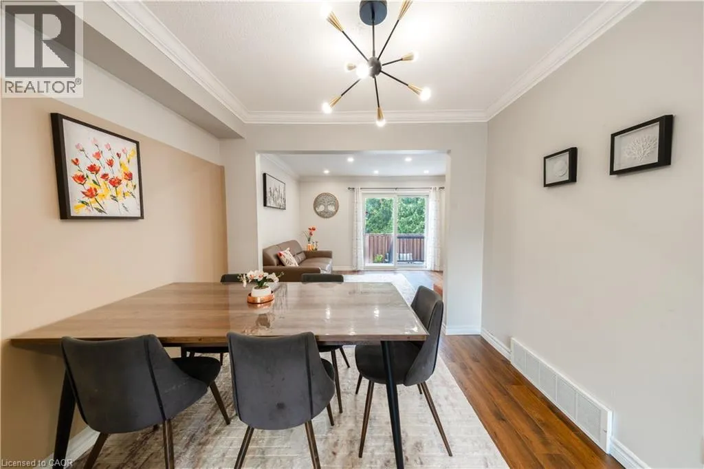 Meadowbrook Road to Westminster Place Welcome to a bright and spacious 3+1 bedroom condo townhouse nestled in a quiet, cul-de-sac (dead-end street) family-friendly Burlington complex. This home backs onto a serene green space with no rear neighbours and no neighbours in the front, offering rare privacy and a fully fenced, interlocked backyard â perfect for morning coffee, playtime, or relaxed entertaining. Inside, enjoy a well-maintained kitchen with a built-in dishwasher and plenty of storage space, a full-sized garage, and a layout that feels noticeably open and airy, with generously sized rooms that provide comfortable space for daily living. The home is filled with natural light, making every room feel bright and welcoming. The finished basement offers extra versatility as a 4th bedroom, rec room, home office, or guest suite. Located close to great schools, parks, shopping, GO Transit, and the QEW, this home delivers on both lifestyle and convenience. ( Basement not retrofit). Come experience the unique charm and setting of this special home. Some highlights: New central vacuum and parts installed in 2024,Backyard railing â Done in 2024, Backyard interlocking â Done in 2023,Backyard wooden fence is about 3 years old.A/C, furnace, and water heater owned. New water heater installed in Dec 2022, Some highlights: A/C, furnace, and water heater owned New water heater installed in Dec 2022 New central vacuum and parts installed in 2024 Backyard railing â Done in 2024 Backyard interlocking â Done in 2023 Backyard wooden fence is about 3 years old (id:27476)