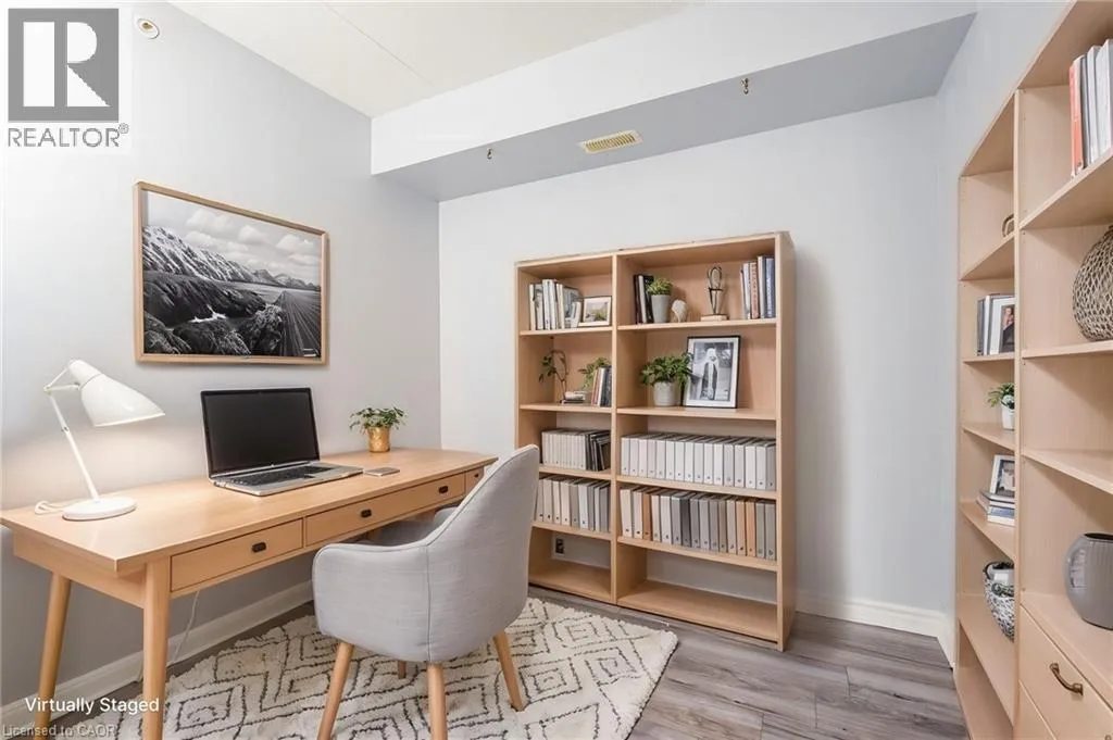 Walkers Line, just South of Upper Middle MOVE-IN READY 1 Bedroom + Den condo in Burlingtonâs Palmer neighbourhood! This great home offers in-suite laundry, parking for one vehicle, and two storage lockers, including one off the balcony. The kitchen features plenty of cupboard space and a peninsula with seating. The living room offers a functional design as it opens to your covered balcony, perfect for relaxing and easy entertaining. The spacious bedroom has a double closet, and the versatile den is ideal as a home office or hobby room. A tasteful 4-piece bathroom completes the unit. Amenities include visitor parking, and an exercise room, a party room and a sauna in the clubhouse. This prime location is walkable to grocery stores, schools, restaurants, shops, parks, and the Tansley Woods Community Centre with a library and pool. Nearby, enjoy the scenic Escarpment, golf courses, trails, and quick access to highways 5, 407, QEW, and public transit, including Burlington and Appleby GO stations. Offering immediate tenancy! (id:27476)