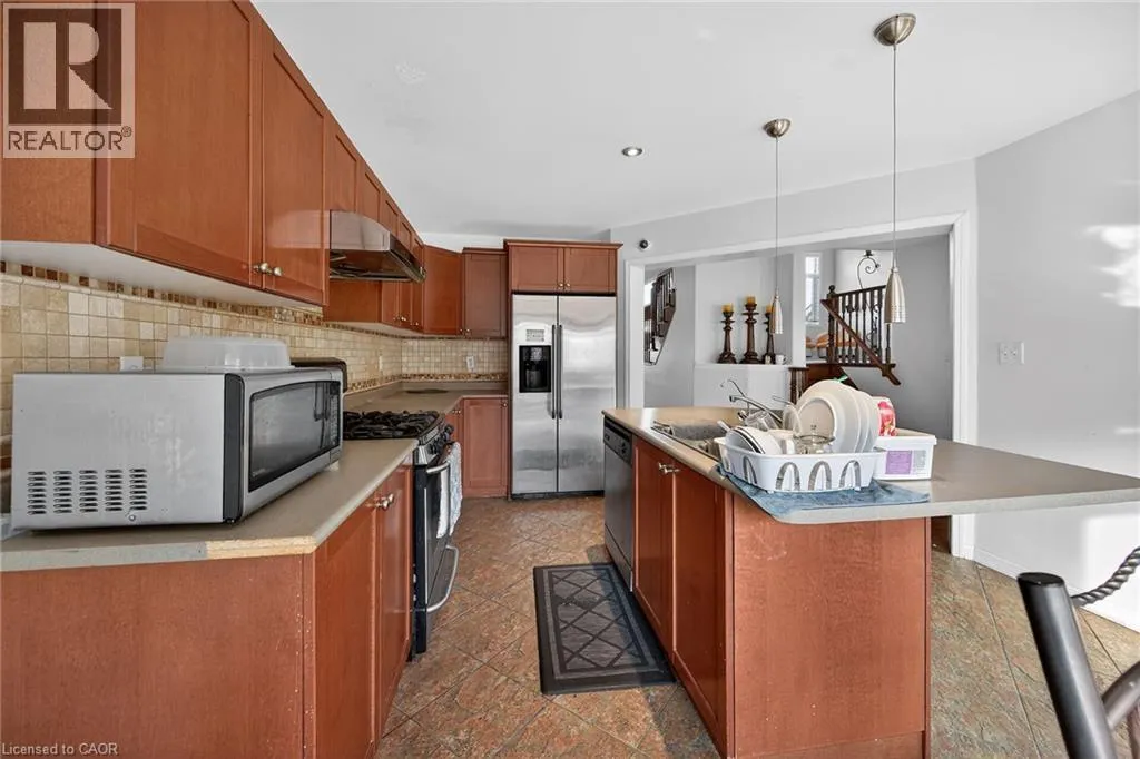 Walkers Line to Thomas Alton Blvd, Left on Steeplechase Dr, Right onto Bunkerhill Welcome to this spacious 4+1 bedroom, 3.5 bathroom home located in the highly sought-after Alton Village. This prime location features close proximity to all local amenities, making it ideal for a growing family. The main and upper levels feature hardwood flooring, a large living room, and an oversized family room. The kitchen provides walk-out access through patio doors to a deck, perfect for entertaining. Upstairs, the generous primary bedroom boasts a 4-piece ensuite complete with a separate shower and a soaker tub. Fully finished lower level provides a complete in-law suite, featuring an additional bedroom, kitchen, family room and 4 piece bathroom. No representations or warranties are made of any kind by the Seller. All rental equipment, parking and other fees are unknown. RSA. (id:27476)