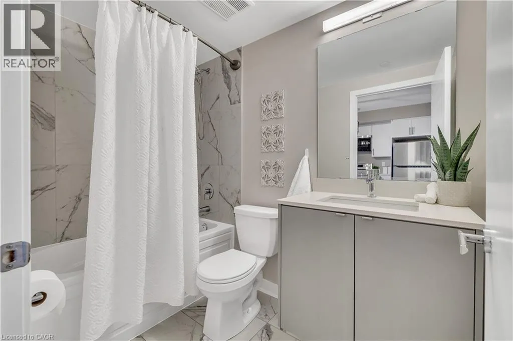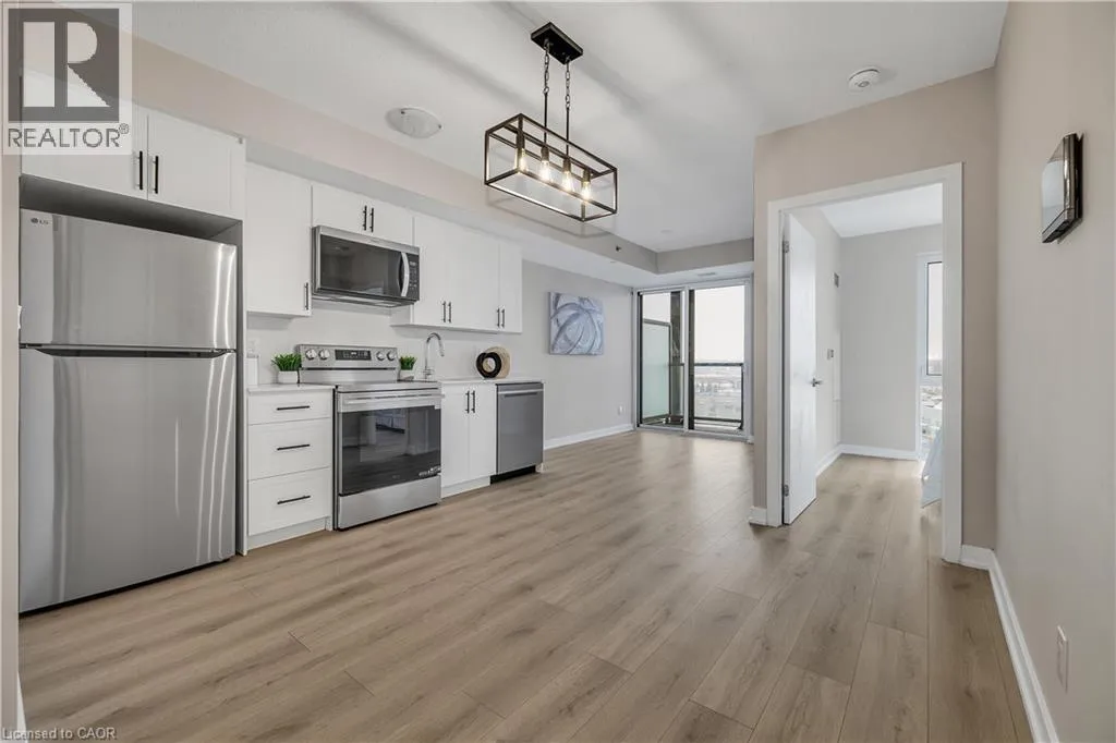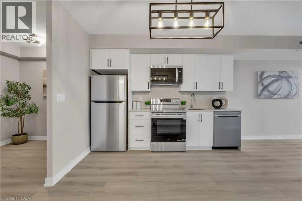 Dundas & Appleby Welcome to this beautifully renovated one-bedroom, one-den, one-bath condominium located in the heart of Burlington. This unit has been fully updated, featuring brand-new stainless steel appliances in the kitchen, sleek modern finishes throughout, and fresh paint that gives it a clean, contemporary look. The spacious den is versatile, perfect for use as a home office, a separate dining area, or even a cozy private living space. Additionally, the condo comes with a dedicated parking space, adding convenience and ease. Situated in a prime location, you'll have easy access to local amenities, dining, and transportation. This condo truly blends style and convenience in one of Burlingtonâs most desirable areas. (id:27476)