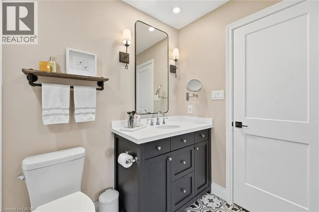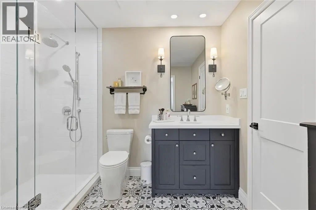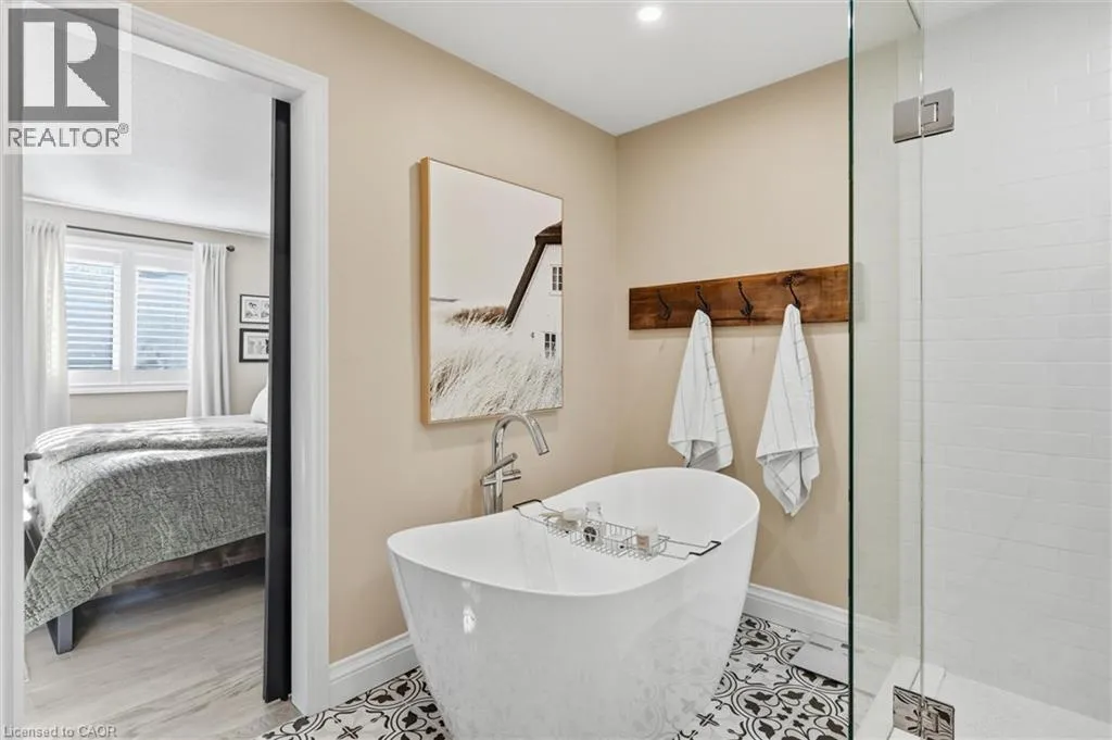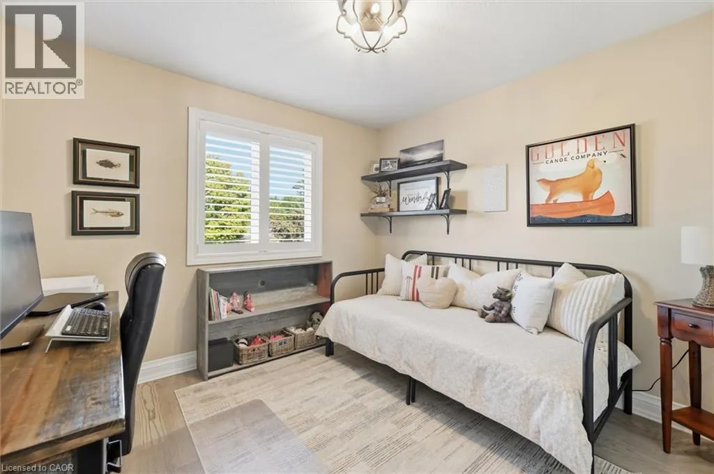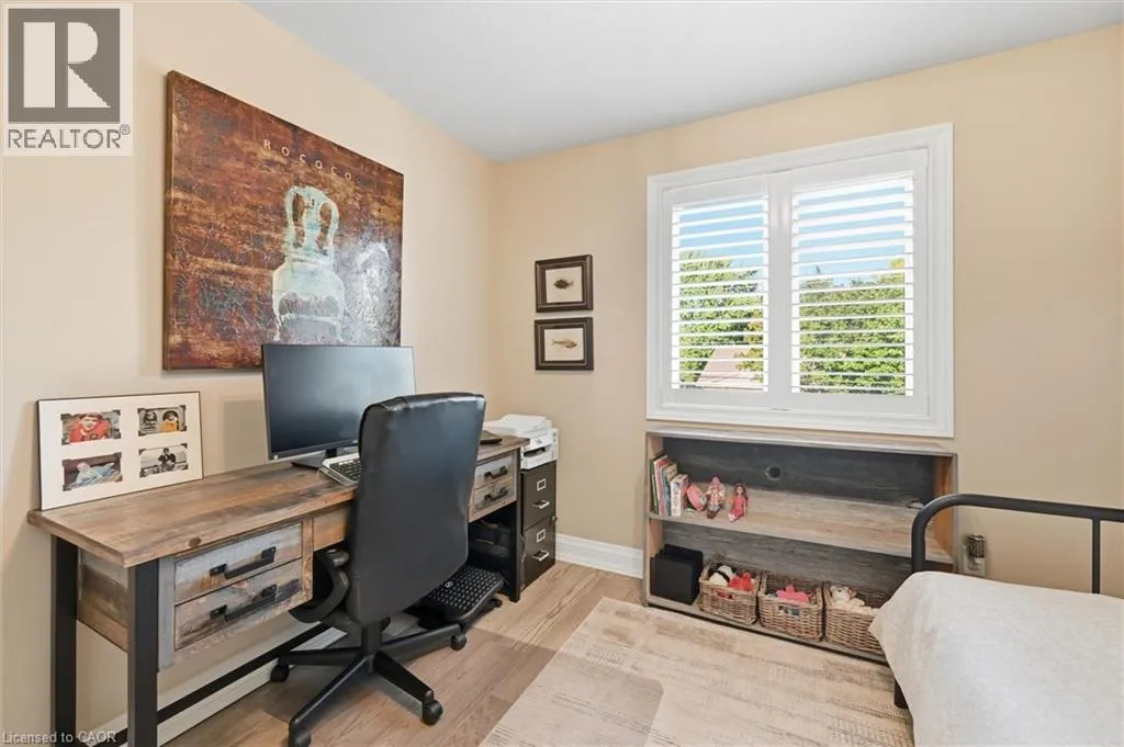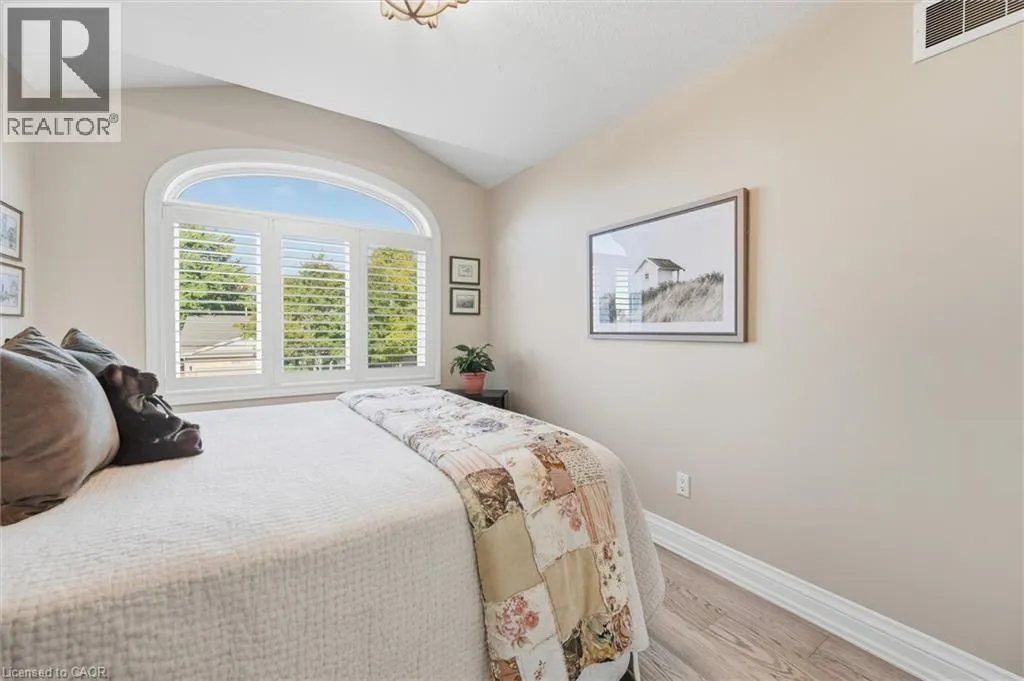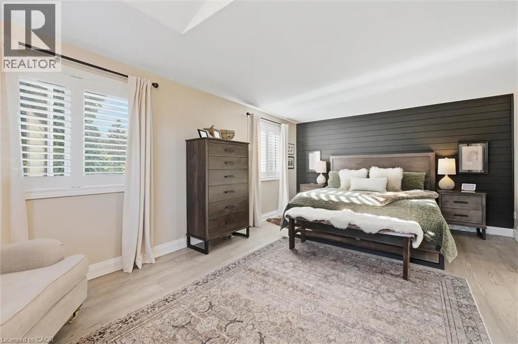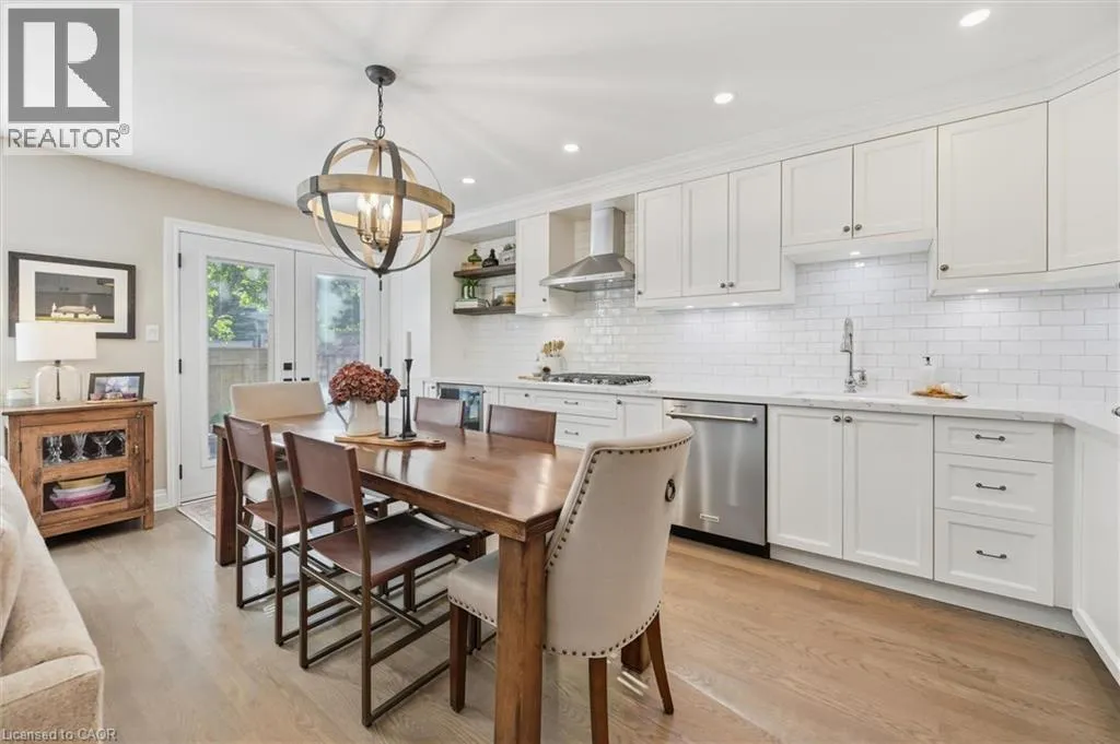 Upper Middle to Headon Rd Welcome to this beautifully updated End-Unit townhome in sought-after Headon Forest. Perfect for the busy professional or those looking to downsize. This home combines timeless style, modern upgrades, and maintenance-free living just minutes from parks, shops, restaurants, and major commuter routes. Step inside to discover a fully renovated kitchen with an elegant extension featuring granite counters, gas cooktop, built-in oven/microwave combo, range hood, bar fridge, and under-cabinet lighting designed for entertaining and everyday ease. The open-concept main floor offers refinished hardwood floors, modern pot lighting, California shutters, and an inviting dining and living area that opens to a private, extended patio with upgraded stonework and a natural gas line for outdoor cooking. Upstairs, youâll find three spacious bedrooms with new hardwood throughout, a spa-inspired main bath with stand-alone soaker tub, and a renovated two-piece powder room on the main level. Attention to every detail, updated interior doors and hardware, upgraded ceramic tile, a custom stair runner, all new exterior windows, doors, eaves and downspouts, plus patio doors with glass-enclosed blinds. Enjoy the convenience of two-car parking in the driveway, ample visitor parking nearby, and the peace of mind that comes with a maintenance-free exterior. This exceptional property delivers style, substance, and a prime Burlington location move right in and start living! (id:27476)