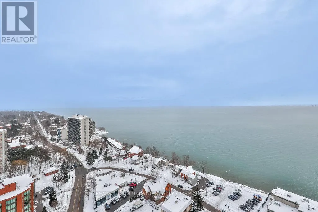 Lakeshore Rd E/Martha St Welcome to modern lakefront living at the Nautique Residences. From the moment you open the door, the unparalleled views afforded by the floor-to-ceiling windows will take your breath away in this stunning suite that features 2 bedrooms plus a den and 2 full bathrooms. This premier unit (one of only 2 units) boasts approximately 1,133 sq ft of luxurious and sophisticated interior living space as well as 262 sq ft of exceptional outdoor space with a 42 ft wide continuous terrace that spans the width of the unit and delivers jaw dropping unobstructed lake views accessible from both bedrooms as well as the main living space. The primary bedroom boasts a large walk-in-closet and a spa inspired sumptuous 5-piece ensuite. This well appointed rare suite is drenched in natural light and is sure to impress. The 4th floor amenities include an outdoor dining area, fire pit lounge, indoor/outdoor yoga studio, fully equipped fitness centre, outdoor swimming pool, indoor/outdoor bar to gather with friends and family and truly enjoy all that downtown Burlington's vibrant waterfront has to offer. 1 underground parking space and a locker are included, plus a 24-hour concierge, so you'll always feel secure. Nestled in the heart of downtown Burlington, this suite is walking distance to the Burlington Pier, Spencer Smith Park, and an eclectic selection of cafes, spas, restaurants, and shops. This dynamic and lively community is alive with festivals and events offering a truly unique and immersive experience. Whether you enjoy waking up to stunning views, ending your day with magnificent sunsets or both, this is it. Discover why 370 Martha St is one of downtown Burlington's most coveted locations. (id:27476)