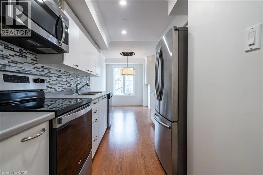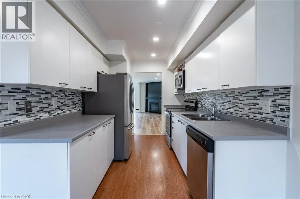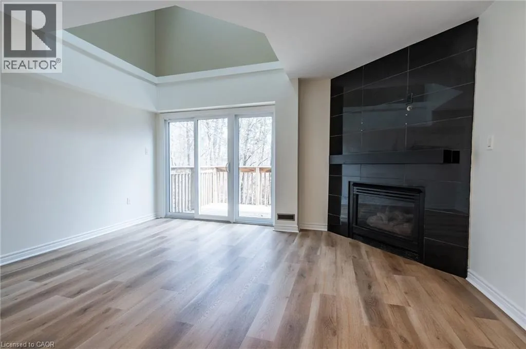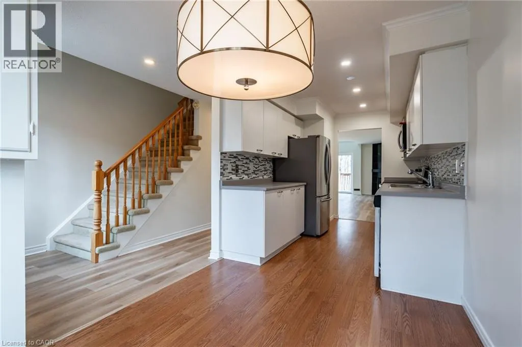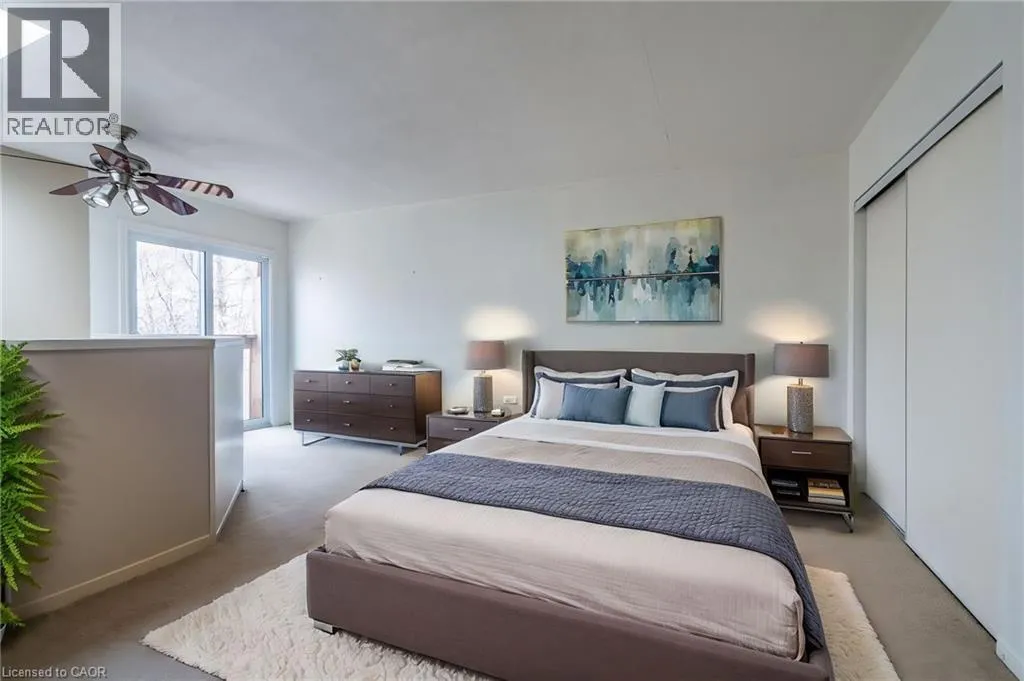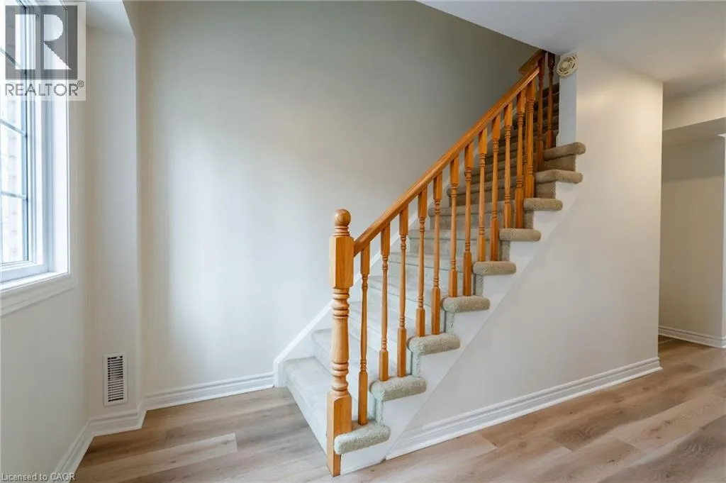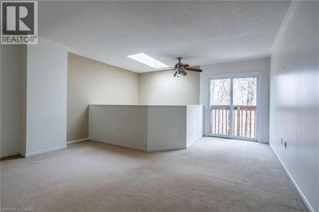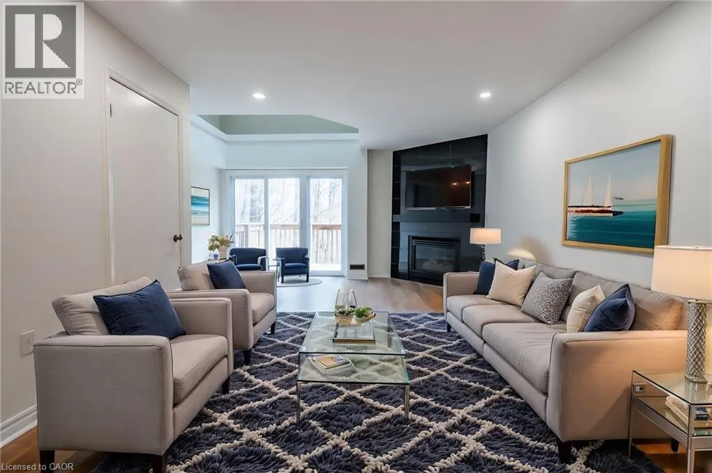 Upper Middle and Walkers Line Stunning 2 Bedroom Loft-Style Townhome in Desirable Millcroft** Discover the perfect blend of comfort and tranquility in this rare 2-bedroom, 2-bathroom loft-style townhome. This exceptional unit rarley offered in this complex, backs onto a serene private ravine, providing a peaceful retreat right in your backyard. As you enter, a brand new staircase welcomes you to a bright and inviting living space, adorned with new flooring that complements the modern aesthetic. The open-concept layout features high ceilings, creating an airy atmosphere throughout. Enjoy cozy evenings by the gas fireplace, while natural light pours in through the skylight, illuminating both the primary bedroom and living room. Step outside to your new private terrace (7x14), offering picturesque views of the wooded area and stream, making it the perfect spot for morning coffee or evening relaxation. The bathrooms have luxurious heated floors and elegant glass doors, adding a touch of sophistication to your daily routine. The Condo Corporation has ensured peace of mind with recently replaced windows, doors, and garage door, enhancing the home's energy efficiency and curb appeal. You'll also appreciate the convenience of a one-car garage, just steps away, complete with a large storage room attached for all your needs. Visitor parking is plentiful, making it easy for friends and family to visit. This location is a true gem, with close proximity to scenic walking trails, golf coursesâincluding the beautiful Tansley Woodsâshopping, medical facilities, all within walking distance. Whether you're a first time home buyer seeking a stylish space retiree looking for a peaceful haven, this townhome offers everything you need. In a neighbourhood that offers saftey and value. (id:27476)