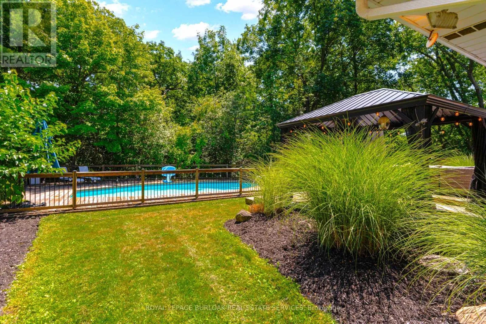 Cross Streets: Skyview and Heather Hills. ** Directions: Skyview North to Heather Hills. Right on Heather Hills. Set in one of Burlington's most desirable communities...among rolling hills, mature trees, and a golf course setting, this beautifully upgraded 4+1 bedroom, 2.5 bath home offers a true retreat right in the city. The home offers a double car garage, a wide premium pie-shaped lot and it all backs directly onto a ravine-providing rare privacy and a serene, "cottage-like" setting. The lot provides more than 100ft of treed beauty stretching across the back, it's a backyard you'll never want to leave. Inside you'll find the fully renovated main floor with spacious dining room, and the show-stopping kitchen featuring quartz countertops, a 10-foot island, gas stove, farmhouse sink, and endless storage. The kitchen flows seamlessly into a warm and inviting living room with agas fireplace, plus a walkout to the backyard. Step outside to find a two-tier deck, landscaped gardens, a generous green space, and a sparkling pool-all framed by mature trees. The main floor includes a convenient laundry and mudroom. Upstairs you'll find 4 generous bedrooms, 2full bathrooms, including a stylish primary ensuite bath. The newly finished basement adds even more space with a 5th bedroom, large rec room, and ample storage. All of this is set in a neighbourhood known for its natural beauty, quick highway and shopping access. It has close proximity to hiking, and biking trails, and Tyandaga Golf Course. If you've been searching for the perfect family home...your wait is over! (id:27476)