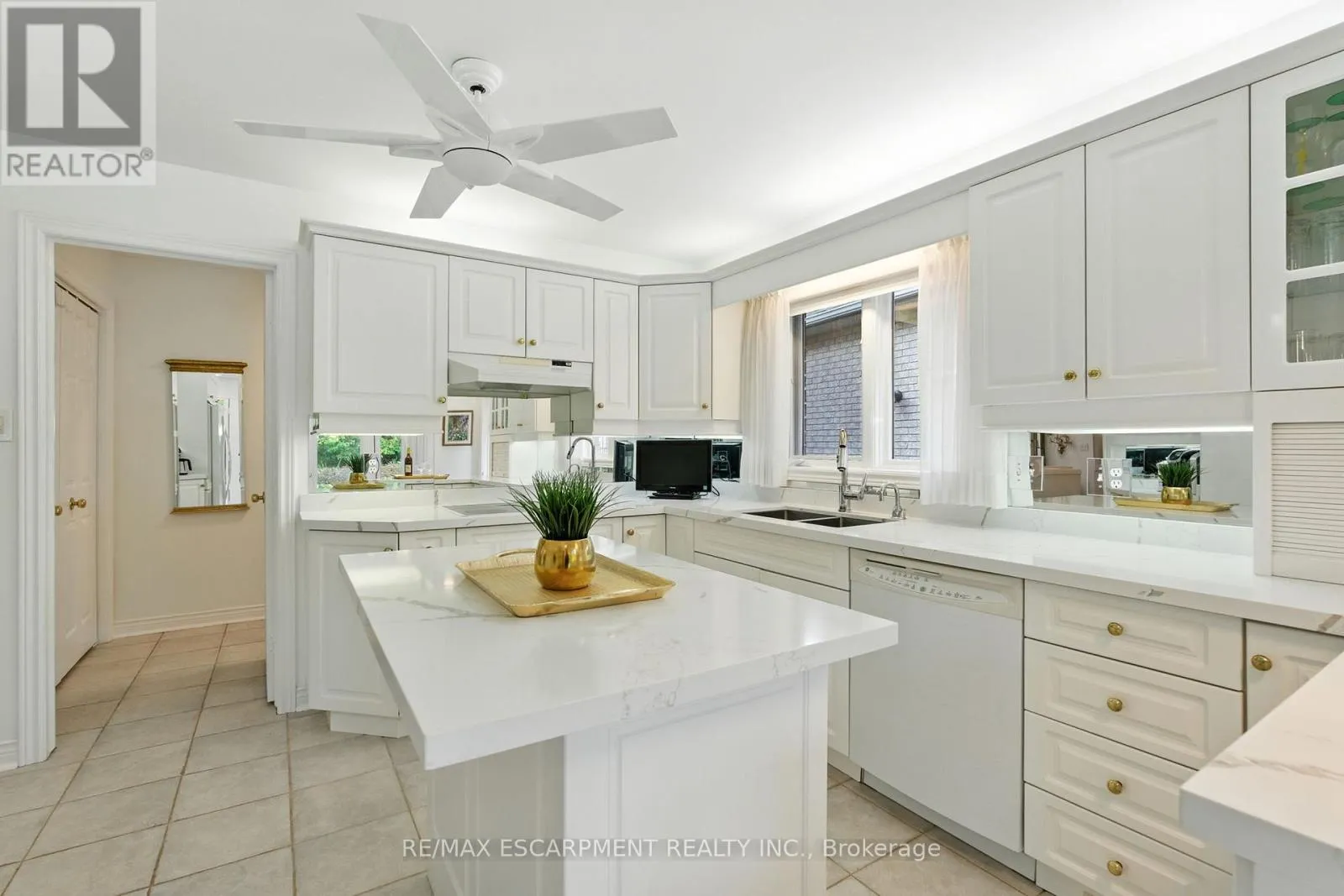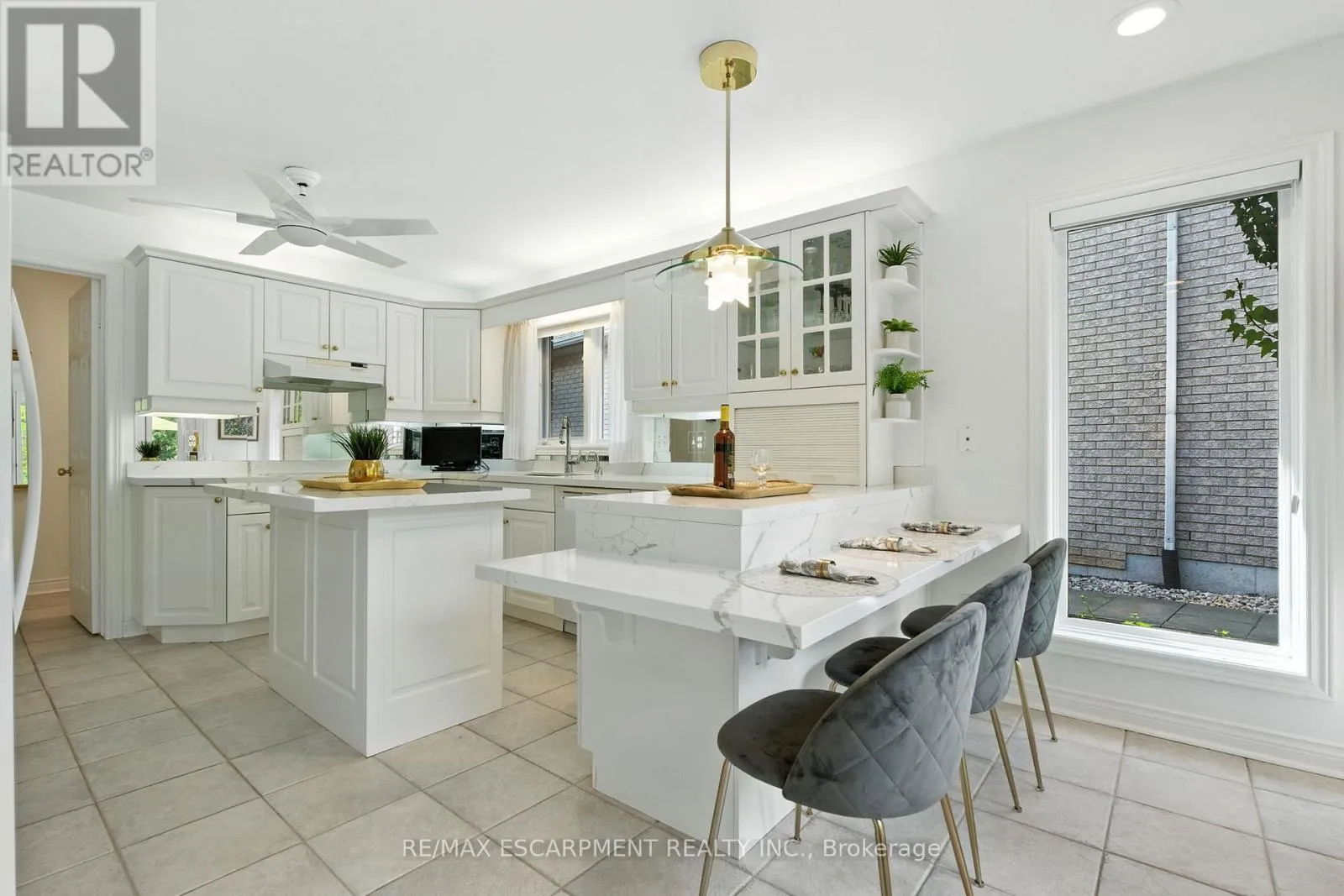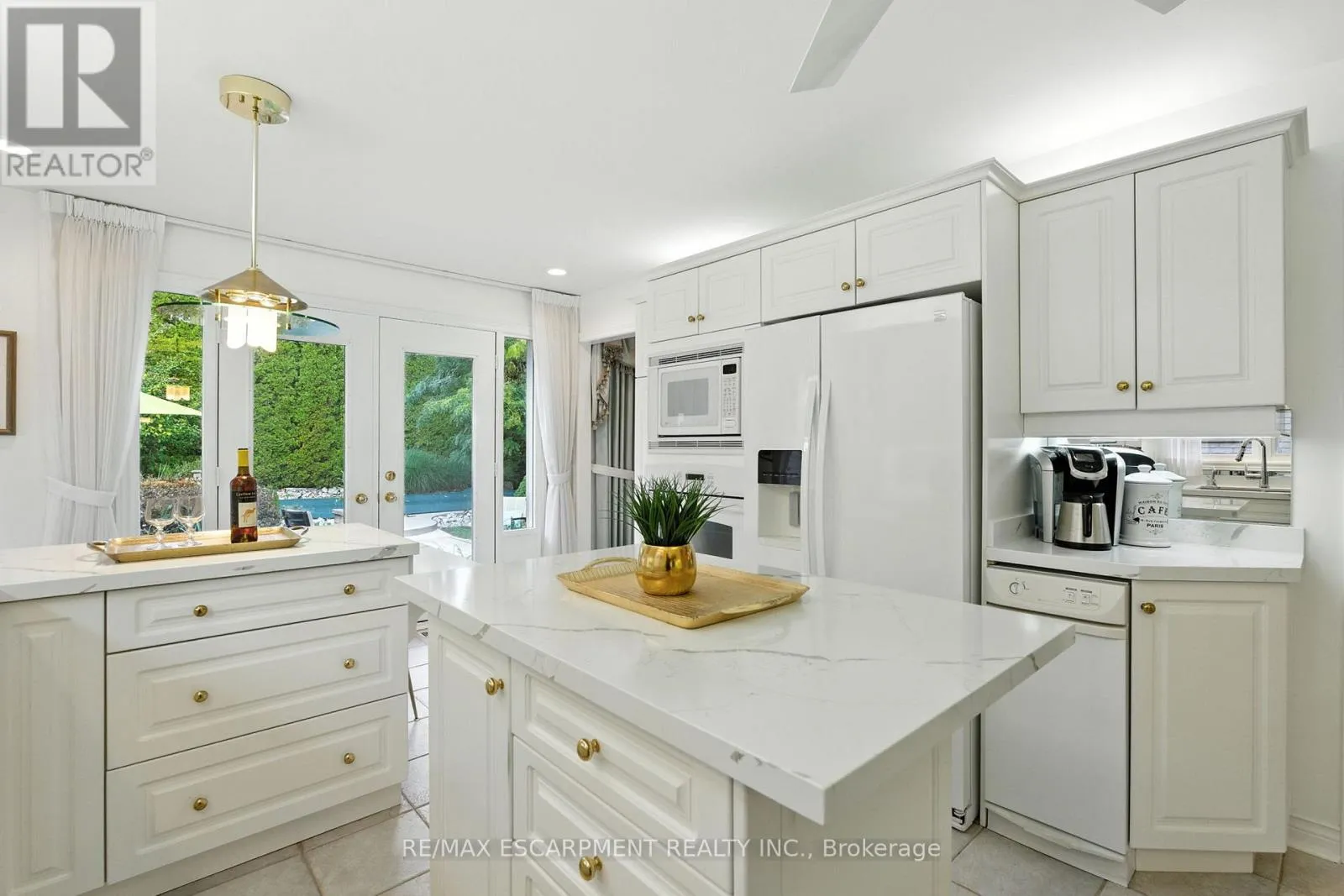 N Service Rd to Skyview Dr to Colton Way Welcome to this beautiful 1872 square foot bungalow on one of the most desirable streets in Tyandaga. Located close to all amenities and with easy highway access, this home combines tranquility with convenience. With fantastic curb appeal, this home welcomes you with its classic charm. Step inside to the wide-open great room, featuring vaulted ceilings and massive windows that fill the space with natural light. The kitchen boasts solid-surface countertops and a convenient walk-out to the yard, making outdoor entertaining a breeze. The main level features a master retreat complete with a walk-in closet, a fourpiece ensuite, and a private walk-out to the yard. A spacious second bedroom and a den (easily converted into a third bedroom) provide plenty of space for family or guests. The fully finished basement offers a huge rec room, perfect for movie nights or family gatherings. You'll also find a dedicated hobby room, ample storage, and a three-piece bathroom. Outside, the spectacular and extremely private backyard is your personal oasis. Surrounded by mature trees, it features an inground pool and multiple seating areas, creating the perfect setting for summer fun and relaxation. RSA. (id:27476)