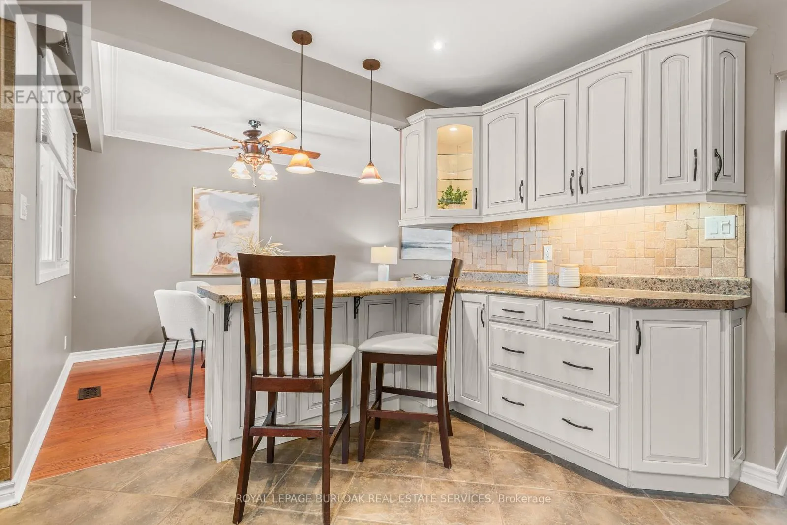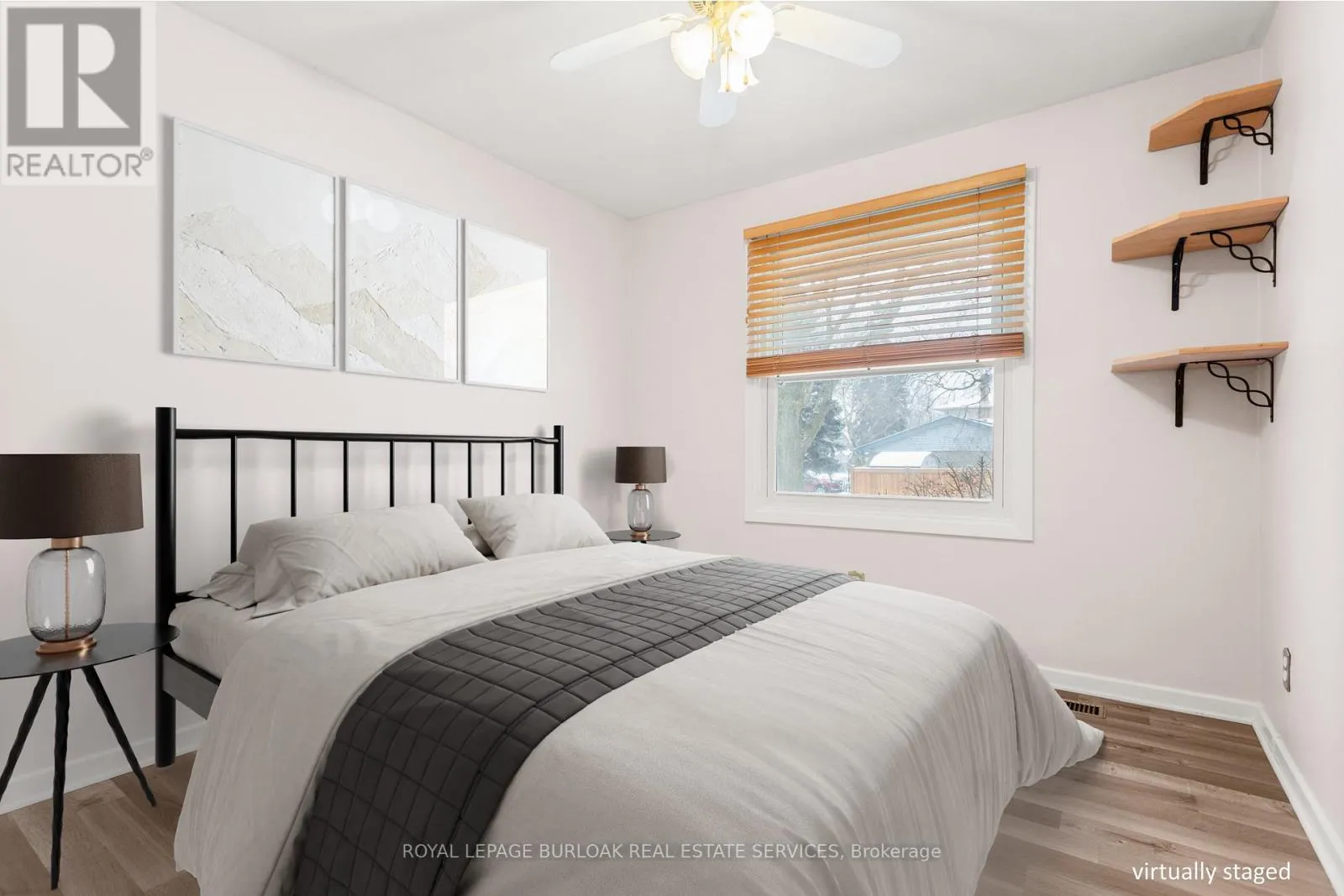 Cross Streets: Rexway & Walkers. ** Directions: From Walkers Line, turn west on Rexway and north on Braemore. This south Burlington sidesplit offers charm, warmth, and is located in the fantastic Dynes neighbourhood! When you view this great property, just imagine you're home... Park your car on the double wide driveway, wave to the friendly neighbours and enter your main foyer. The large living room finished with beautiful oak hardwood impresses with a large floor to ceiling bay window letting in loads of natural light. The dining room, adjoins the large kitchen that is sure to impress for both everyday living and entertaining, offering s/s appliances, pot lights, breakfast bar, and plenty of prep and pantry space. A large window over the sink bathes the space in even more sunlight. Up the short staircase, you'll find 3 spacious carpet free bedrooms with the primary finished with hardwood. Notice the unusually large windows in each room. Now, should you relax in the soaker tub in the 4 piece bathroom? Or maybe head down to the lower level that is great retreat offering a large rec room with finished pot lights and a gas fireplace to cozy up by. A great space for entertaining friends with great conversation or maybe watching the game on the big screen right close to the built in dry bar and bar fridge. Also on this level you'll find a 4th bedroom perfect to use as an optional guest room or home office, and 3 piece bathroom with glass shower. The large crawl space give you loads of storage for all your 'stuff'! In the fully fenced back yard the home sits on a mature 100' x60' corner lot! Notice the privacy! Not a neighbour's window to be seen! A small landscape pond trickling with a waterfall gives serenity in the summer. There's also a wood garden shed with lights and power. And what a location! 2 min drive to the highway, steps to two bus routes, top-rated schools, the renowned Marilu's market, a short walk to the lake and Burlington Centre Mall, restaurants and so much more so close by. Come view this great property and imagine what home could be! (id:27476)