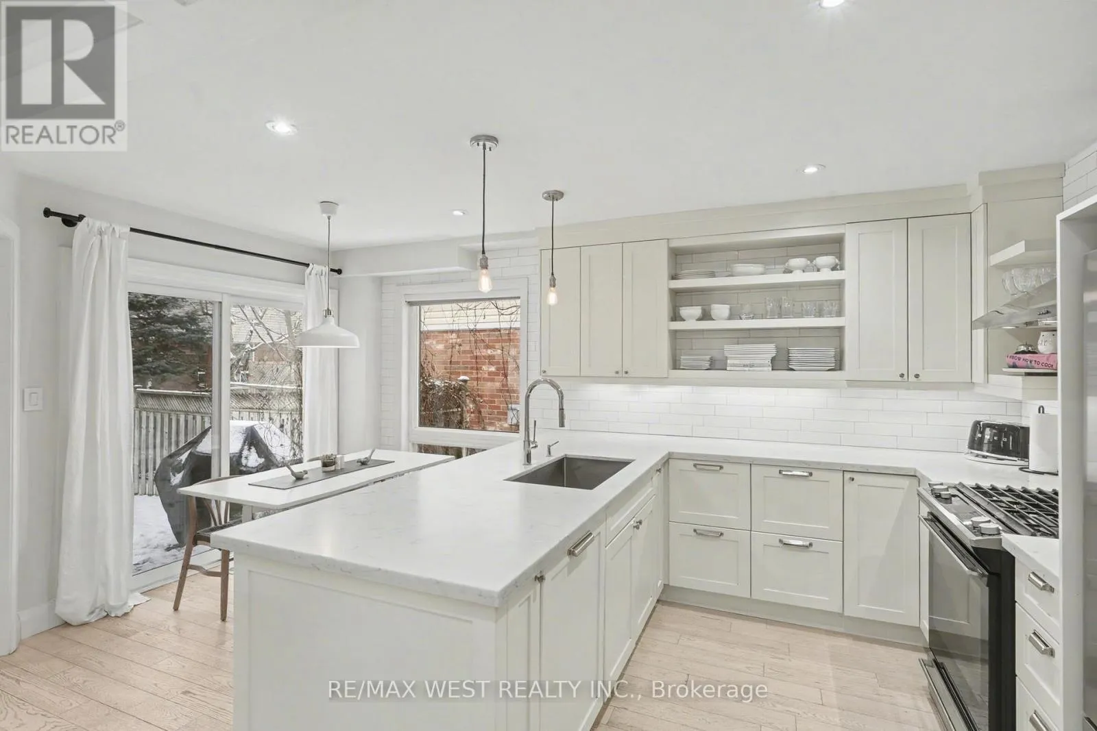 Cross Streets: Appleby and Upper Middle. ** Directions: Upper Middle to Blue Spruce to Thorn Lane. Stunning home in beautiful Orchard community featuring numerous renovations that seamlessly blend style and luxury while providing comfort for everyday living. This fully detached home is situated on a pie-shaped lot and has an exceptional main floor layout beginning with a sun filled living space with hardwood floors, smooth ceilings, and a striking gas fireplace flanked by custom built-in shelving. The living room flows perfectly to the custom designed kitchen complete with quartz countertops, gas stove with pot filler, classic subway tile backsplash, under-cabinet lighting, breakfast bar and a spacious separate eat-in area perfect for casual meals or gathering with friends. Thoughtful touches like pot drawers with built-in lighting and an integrated dishwasher create a clean, modern look. Upstairs you'll find three generous bedrooms including a king-sized primary suite with a huge walk-in closet. The finished basement adds even more living space with a versatile rec room and the potential to add a three-piece bathroom, offering flexibility for growing families, guests, or a home office. Location, location, location... family friendly quiet street that's close to parks, scenic trails, shopping, hospital and ideal for commuters with GO and HWY's just minutes away. (id:27476)
