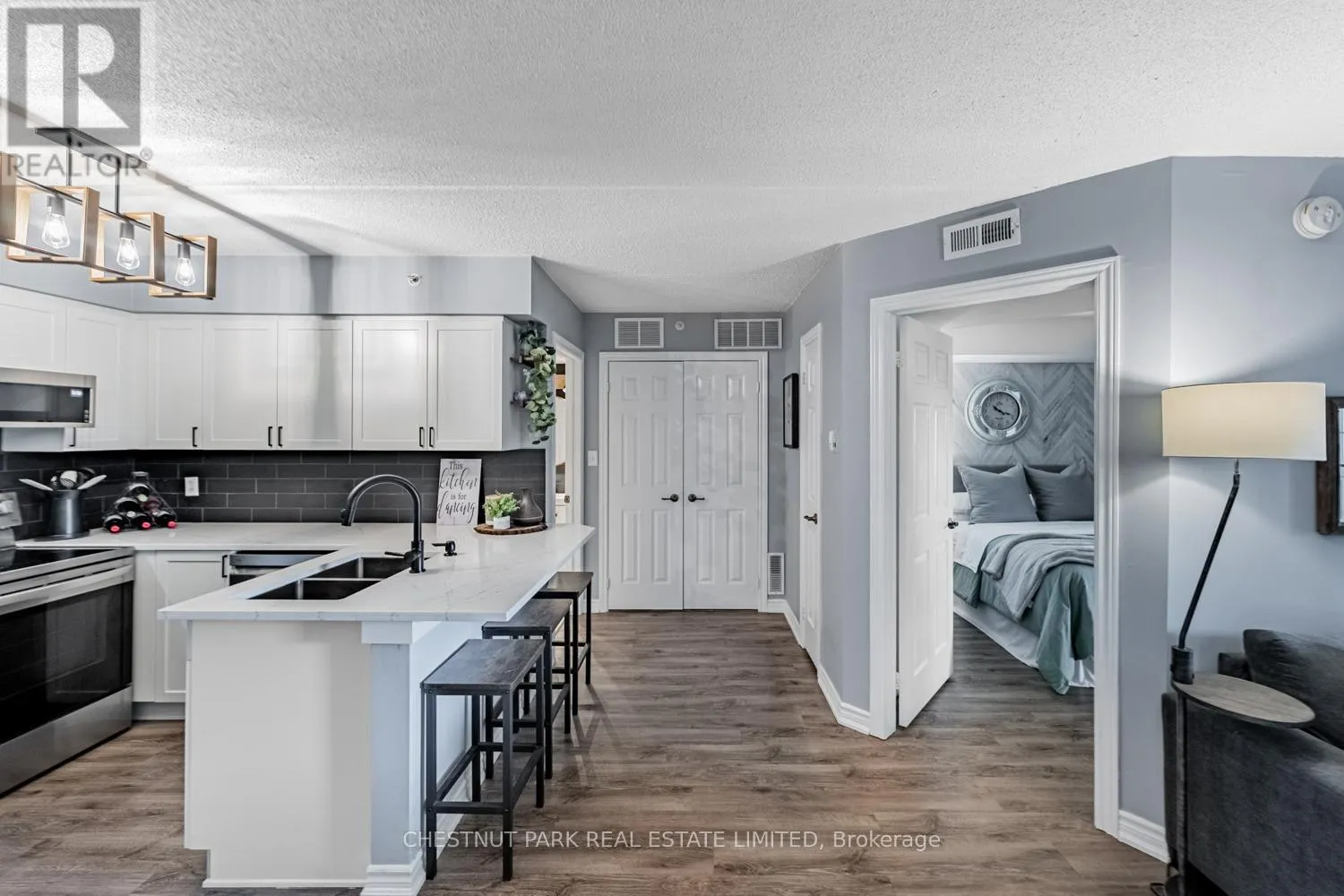 Appleby & Upper Middle This well appointed and spacious 1-bedroom + den suite offers a fantastic layout in one of Burlington's most desirable communities. The open-concept living and dining area is filled with natural light, featuring large windows and a walk-out to a private balcony -perfect for morning coffee or evening relaxation. The kitchen boasts modern appliances, ample cabinetry, and a breakfast bar for casual dining. A versatile den provides the ideal space for a home office or guest area. The generously sized primary bedroom includes a double closet for ample storage, while the 4-piece bathroom is well-appointed and practical. Enjoy the convenience of in-suite laundry, one underground parking space, and two private lockers! The building offers excellent amenities, including a fitness room, party/meeting room, and plenty of visitor parking. Located in a quiet, well-managed complex just minutes from shops, restaurants, schools, parks, and major highways, this home is perfect for first-time buyers, downsizers, or investors alike. Move-in ready and full of charm, don't miss your opportunity to own in Orchard Uptown! (id:27476)