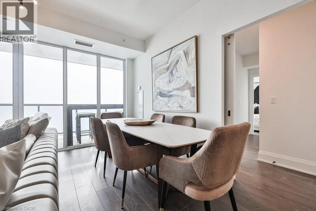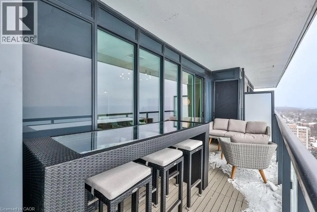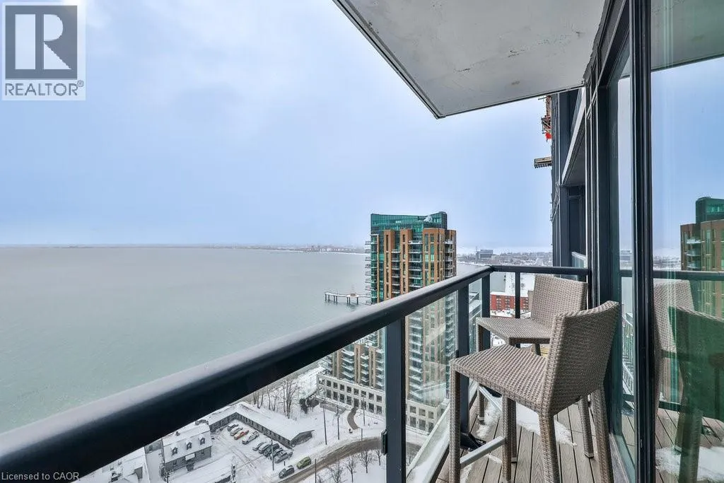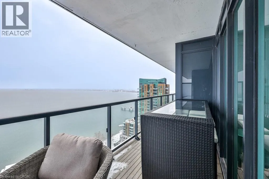 Welcome to modern lakefront living at the Nautique Residences. From the moment you open the door, the unparalleled views afforded by the floor-to-ceiling windows will take your breath away in this stunning suite that features 2 bedrooms plus a den and 2 full bathrooms. This premier unit (one of only 2 units) boasts approximately 1,089 sq ft of luxurious and sophisticated interior living space as well as 262 sq ft of exceptional outdoor space with a 42 ft wide continuous terrace that spans the width of the unit and delivers jaw dropping unobstructed lake views accessible from both bedrooms as well as the main living space. The primary bedroom boasts a large walk-in-closet and a spa inspired sumptuous 5-piece ensuite. This well appointed rare suite is drenched in natural light and is sure to impress. The 4th floor amenities include an outdoor dining area, fire pit lounge, indoor/outdoor yoga studio, fully equipped fitness centre, outdoor swimming pool, indoor/outdoor bar to gather with friends and family and truly enjoy all that downtown Burlington's vibrant waterfront has to offer. 1 underground parking space and a locker are included, plus a 24-hour concierge, so you'll always feel secure. Nestled in the heart of downtown Burlington, this suite is walking distance to the Burlington Pier, Spencer Smith Park, and an eclectic selection of cafes, spas, restaurants, and shops. This dynamic and lively community is alive with festivals and events offering a truly unique and immersive experience. Whether you enjoy waking up to stunning views, ending your day with magnificent sunsets or both, this is it. Discover why 370 Martha St is one of downtown Burlington's most coveted locations. (id:27476)