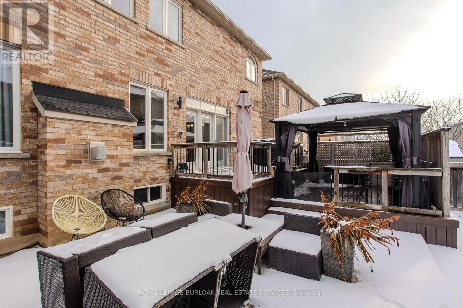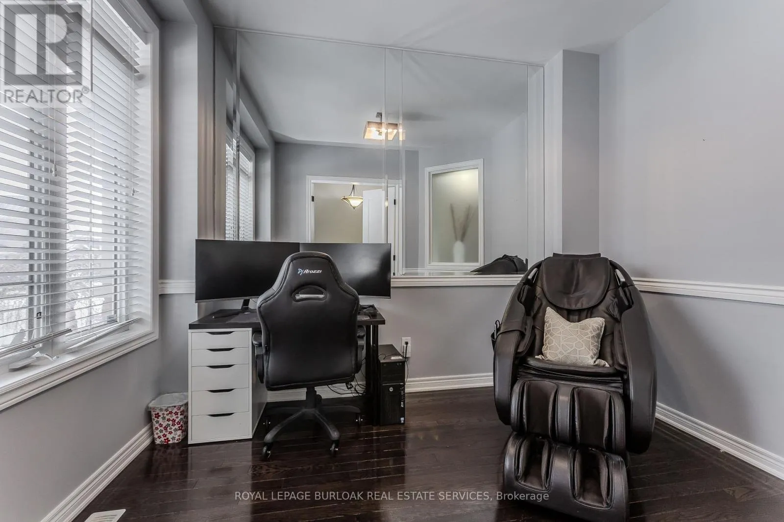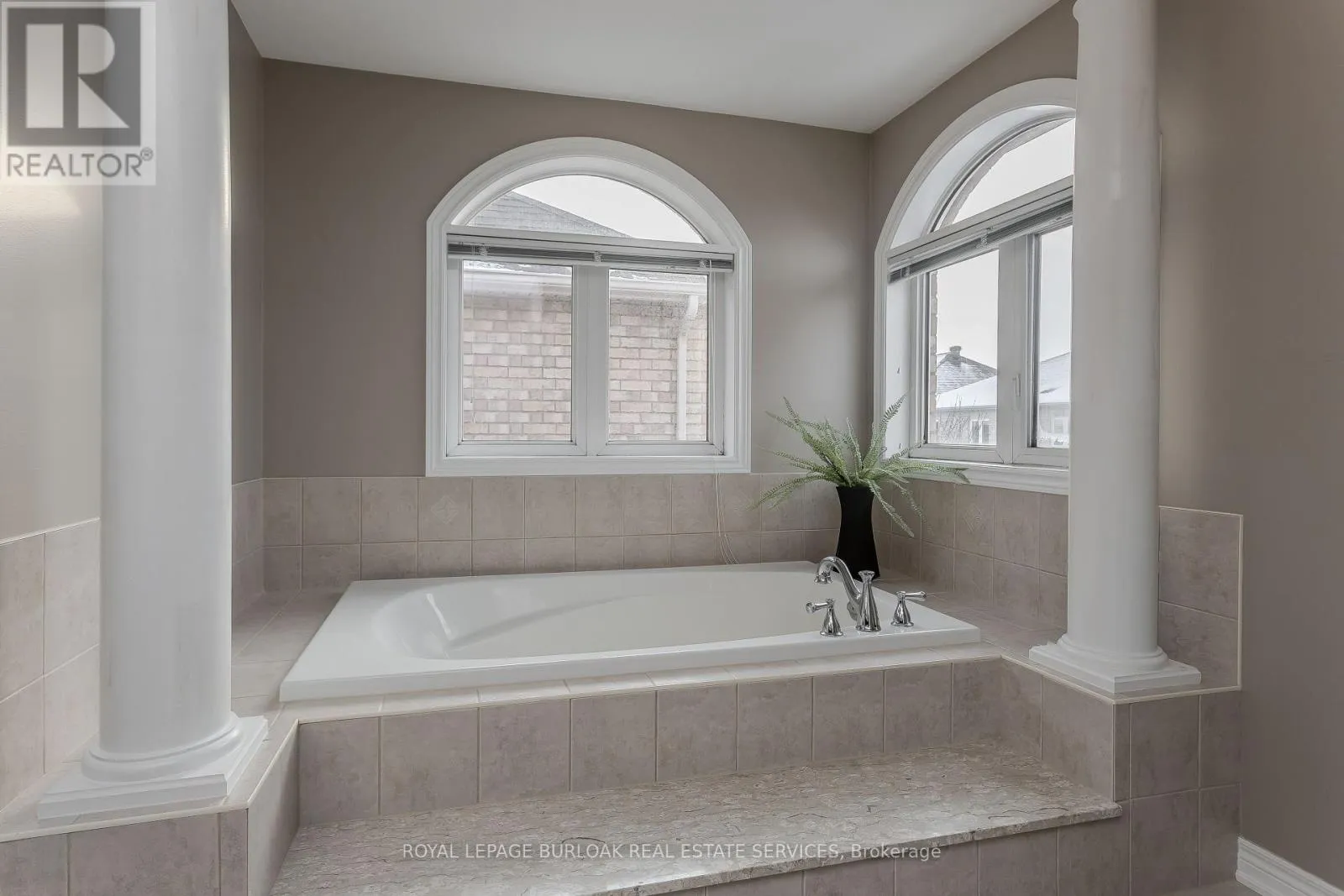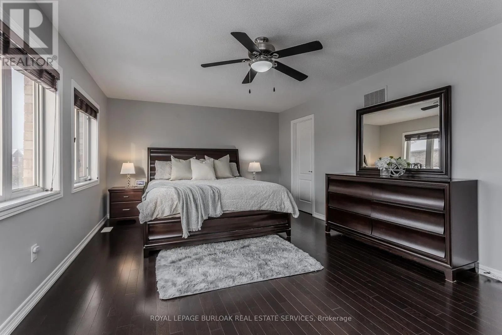 Cross Streets: Dundas Street & Appleby. ** Directions: Thomas Alton Blvd to Hopkins Dr to Stoneware Road. Welcome to a beautiful two-storey home in the heart of Alton Village-an inviting, updated space with 2,858 sqft of living space designed with family living in mind. Set in a highly sought-after, family-friendly neighbourhood close to schools, transit, parks, shopping, and amenities, this home offers the perfect blend of comfort, function, and location. The exceptional curb appeal makes a great first impression, with an interlock walkway leading to a welcoming porch, perennial gardens, and a convenient cement side walkway to the backyard. A true double garage features upgraded barn-style doors and inside entry, ideal for busy family life. Inside, hardwood floors flow throughout the main level, highlighting the open-concept layout. A bright home office is perfect for remote work or homework, while the formal dining room is ideal for family gatherings and celebrations. The spacious eat-in kitchen is the heart of the home, complete with granite countertops, tile backsplash, stainless steel appliances, rich wood cabinetry, and an island with breakfast bar. A walkout leads directly to the backyard, making indoor-outdoor living easy. The living room offers a great place to unwind with large windows and a stone-surround gas fireplace with mantle. A 2-piece powder room and a laundry room with garage access complete the main floor. Upstairs, hardwood continues throughout. The expansive primary suite is a true retreat, featuring a walk-in closet with California Organizers, and spa-like 5-piece ensuite with dual vanity, soaker tub, and large glass walk-in shower. Three additional bedrooms provide plenty of space for growing families-one with a private ensuite and two sharing a Jack and Jill-plus another dedicated home office. The fully fenced backyard is ready for play, entertaining, and relaxing, featuring interlock stone, a paver patio, composite deck, and shed. A wonderful opportunity to settle into a move-in-ready family home in one of Burlington's most loved communities. (id:27476)