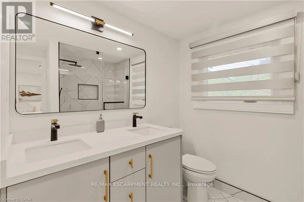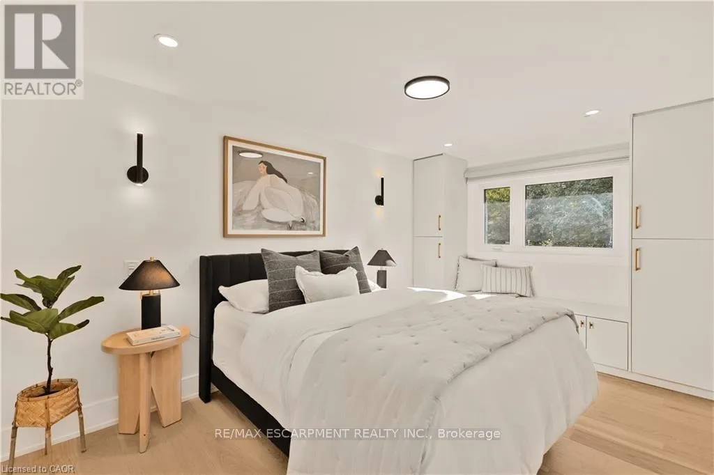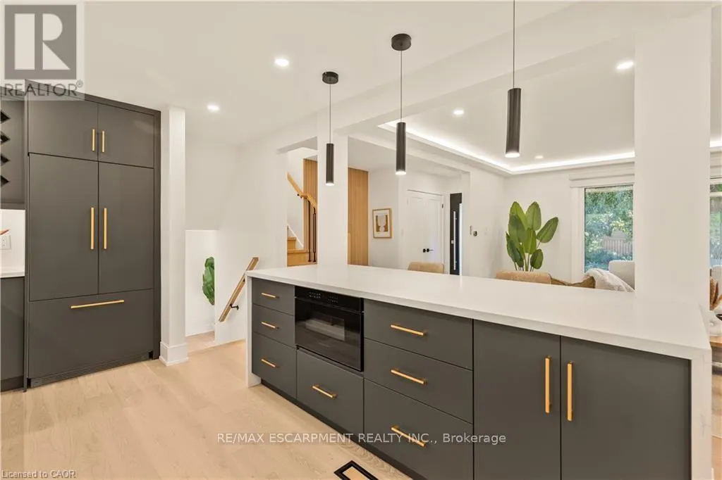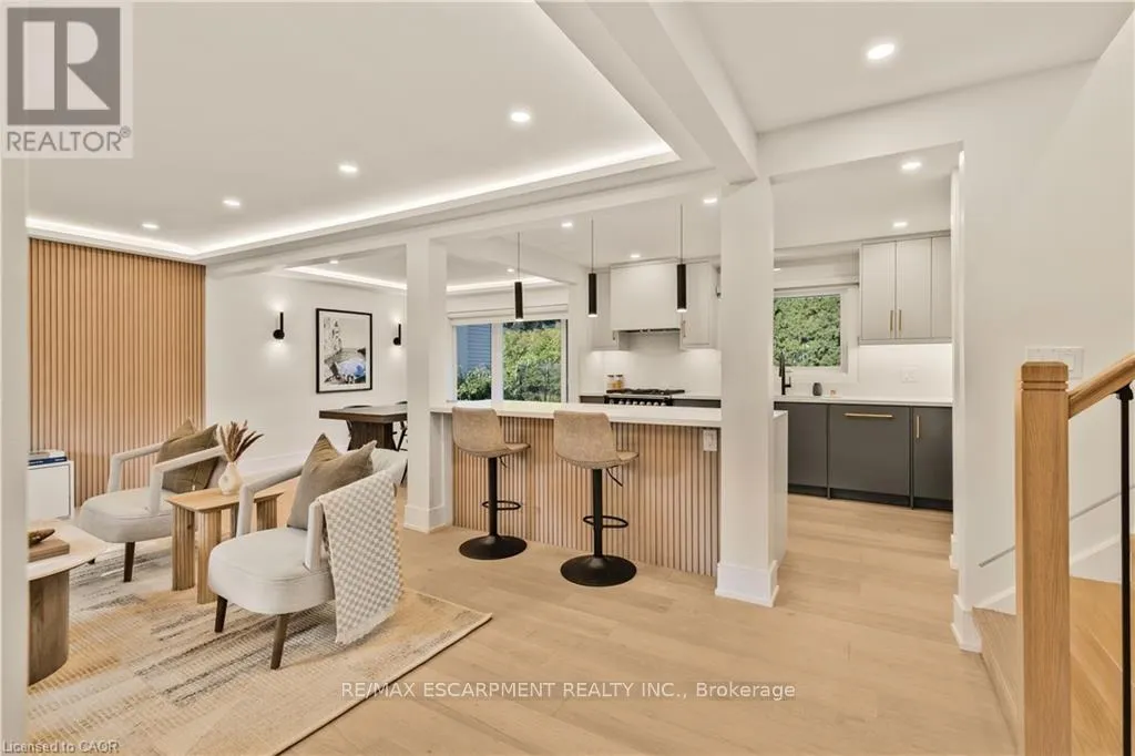 Cross Streets: LAKESHORE ROAD/WALKERS LINE. ** Directions: Lakeshore Road or Spruce Avenue to Strathcona Drive. Welcome to this updated family home in the heart of Shoreacres. Updated throughout in 2024 with over 2000 square feet of finished living space, this home has been transformed with custom finishes throughout, and includes 4 bedrooms all with their own ensuites. The open-concept main floor is greeted by a functional entrance with custom built-ins and lots of storage that lead into the living room, dining area, and kitchen. The kitchen features panelled Fisher & Paykel appliances, a waterfall quartz island with seating, and sleek cabinetry offering ample counter and storage space. Upstairs, you'll find three spacious bedrooms , all with their own private ensuites. The lower levels extend your living space with two family/rec rooms, wet bar area, and in-wall wiring ready for a home theatre setup. This level also includes a fourth bedroom with a 4-piece ensuite, perfect for teens, extended family, and guests. Updates include engineered hardwood floors, fluted feature walls, built-in fireplace, custom and motorized blinds, and integrated wall lighting, newer windows throughout, refreshed landscaping, garage door (2025), & owned hot water heater. Just steps to the lake, this is an opportunity to move into a turnkey, designer-finished home in a true family-friendly neighbourhood. Welcome to one of South Burlington's most sought after neighbourhoods, known for its top-rated schools (Tuck & Nelson), parks, and strong community feel. (id:27476)