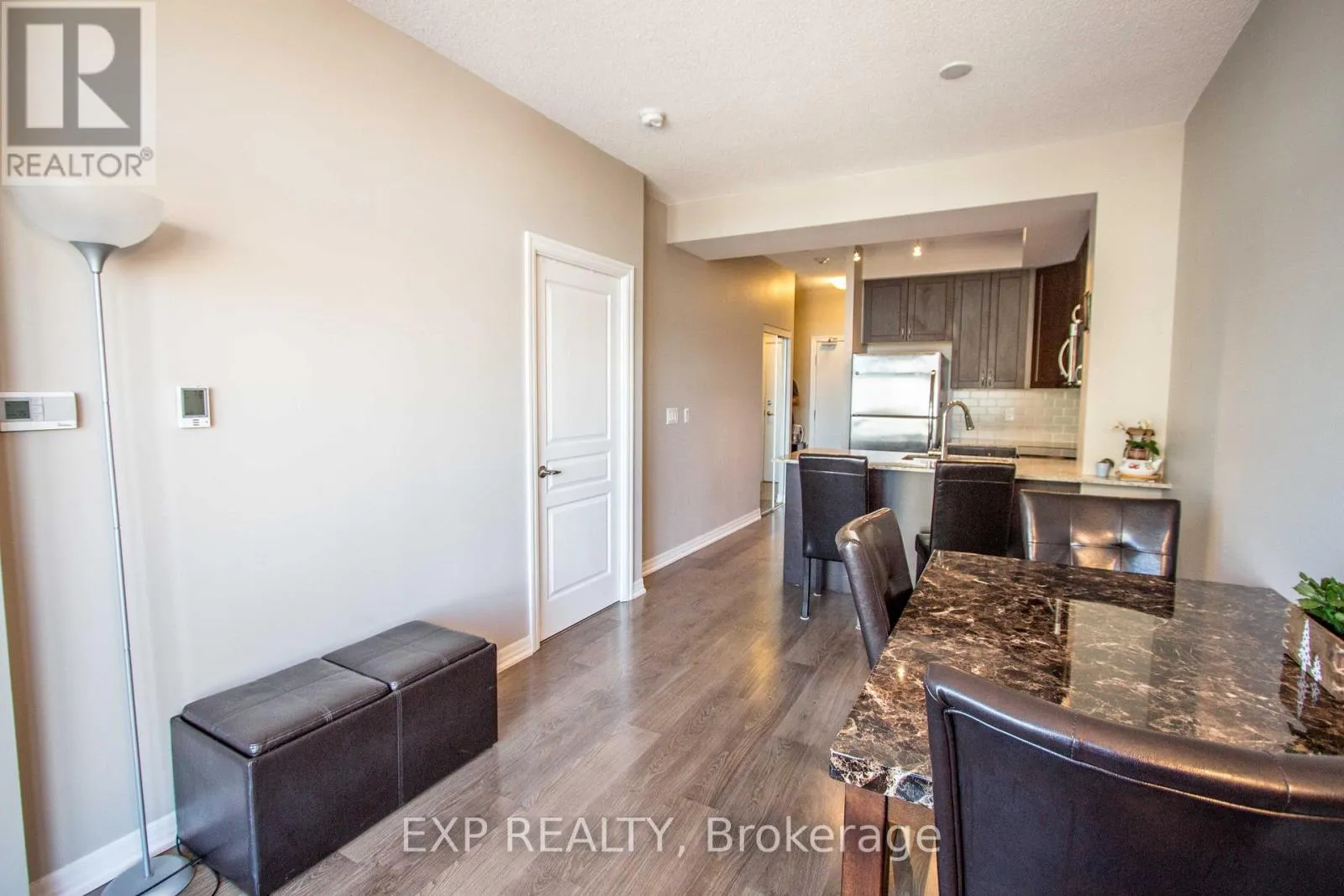 Cross Streets: Appleby Line & Upper Middle Road. ** Directions: South on Appleby, East on Ironstone. Gorgeous unit in The Ironstone! This Marble model suite has open concept kitchen and living room, with 1 Bedroom plus Den, 1.5 Baths, 1 underground parking spot, and unobstructed rooftops garden views from Bedroom and Living Room! Approximately 580 sqft plus 53 sqft balcony. Granite counters, breakfast bar, undermount sink, and stainless-steel appliances in the upgraded kitchen with 42" upper cabinets. Some of the best amenities included: 24-hour concierge, entertaining rooftop terrace with built-in barbecue and outdoor kitchen, fitness room with Pilates/yoga area and separate showers, 2nd floor party room, and media room. Ideal for single executive or young couple who want it all! Easy access to highways and GO station, and walking distance to wonderful restaurants, cafes, groceries, and other local stores. (id:27476)