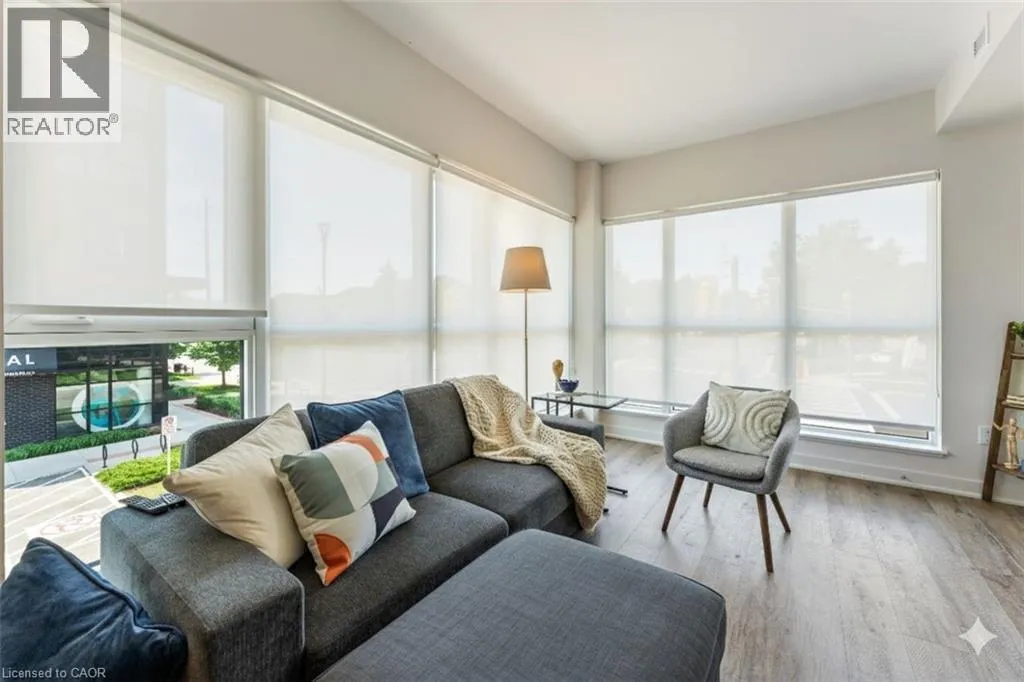 Waterdown road and Plains Road East. Located in the heart of Central Aldershot, this stylish condominium offers the perfect blend of comfort and convenience. Situated in a new, well-maintained building, residents enjoy top-notch amenities including an exercise room, business center, party room, rooftop patio/garden, and ample visitor parking. The unit features an open-concept layout with tons of natural light, a modern kitchen complete with stainless steel appliances, generous storage, -ideal for everyday living and entertaining. The den is perfect for a home office, and the private balcony offers a great spot to unwind. Includes an owned underground parking space and owned storage locker. Just minutes to the Aldershot GO Station, major highways, RBG, downtown Burlington, shops, restaurants, parks, trails, and the lake. Also close to both Burlington and Hamilton hospitals, and McMaster University. In-suite laundry. (id:27476)