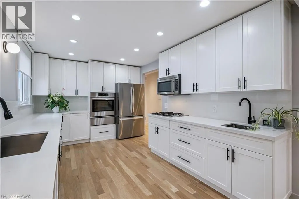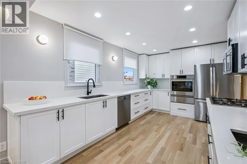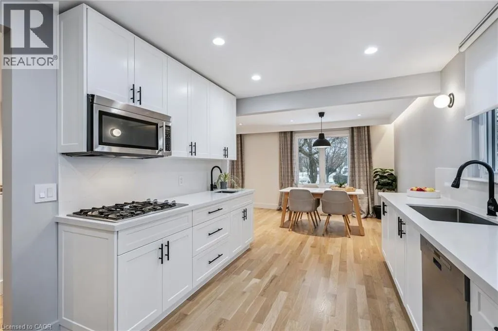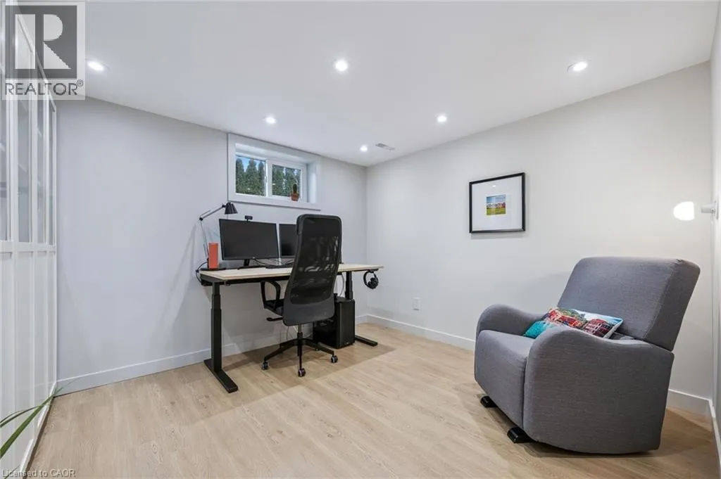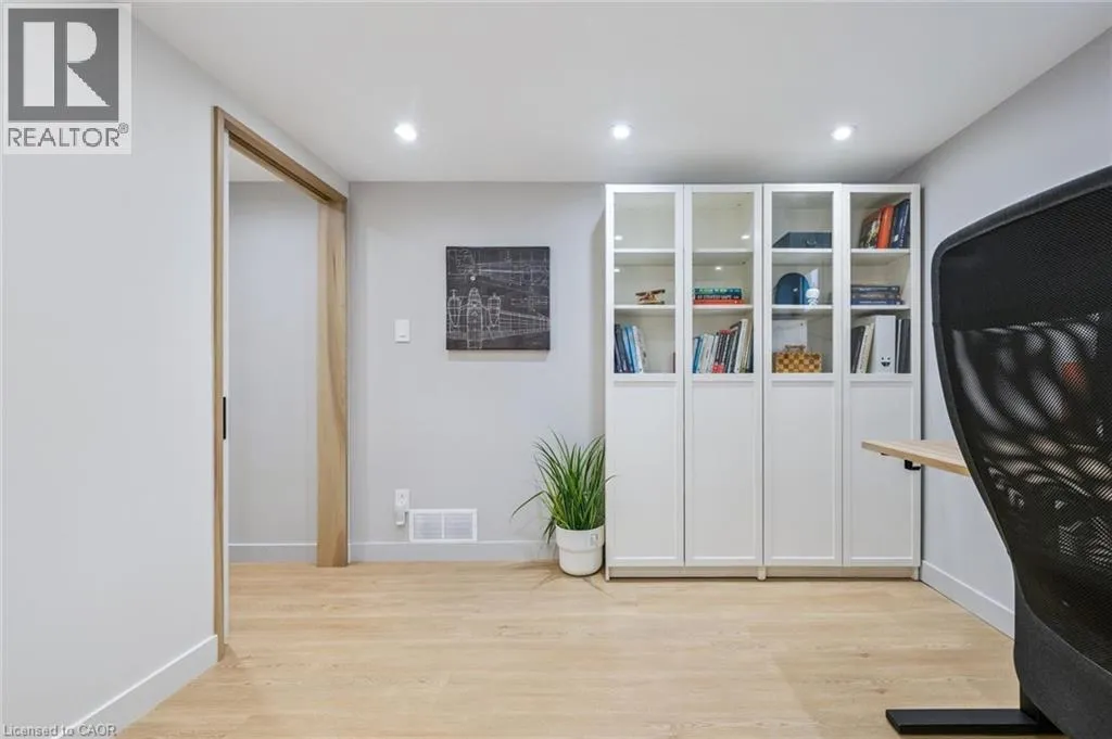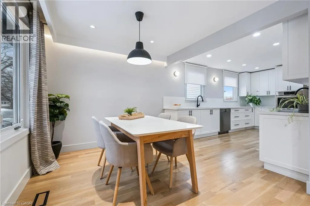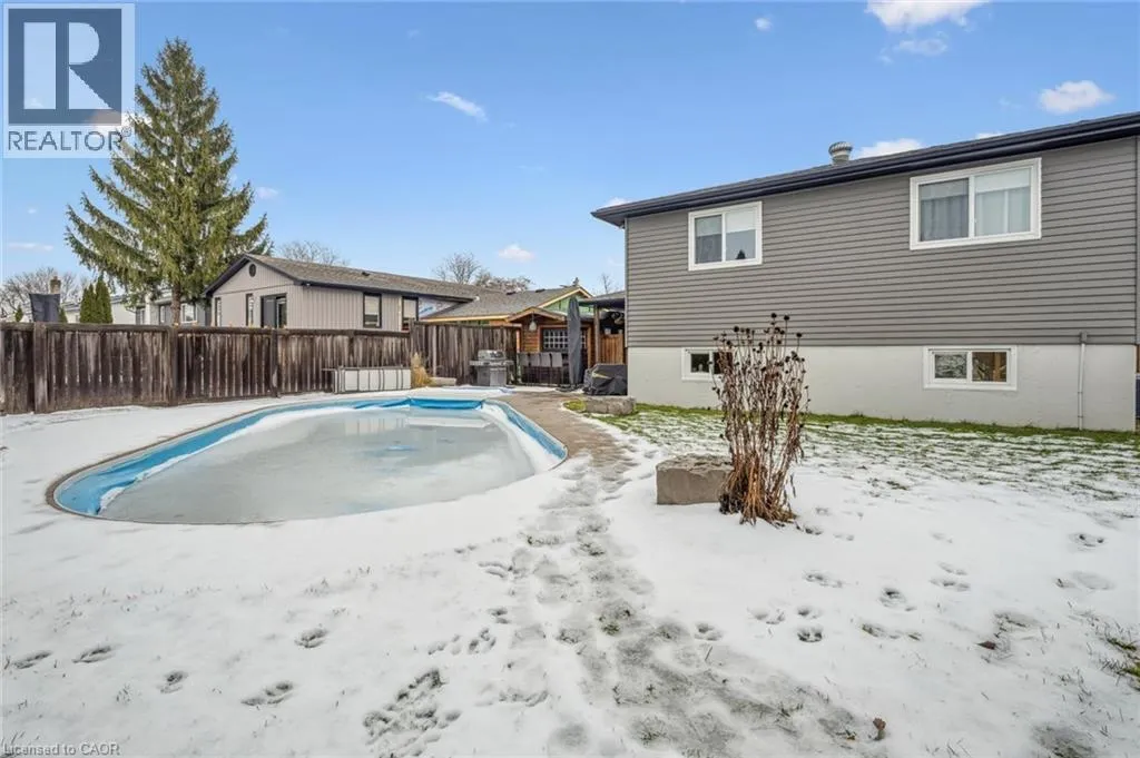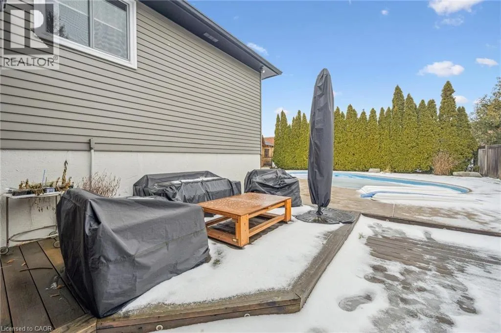 Upper Middle & Palmer Beautifully Updated Raised Bungalow on a Quiet Crescent with In-ground Pool! Welcome to this thoughtfully upgraded 3+1 bedroom, 2-bathroom + office raised bungalow located on a quiet crescent in a desirable Burlington neighbourhood. With no rear neighbours and a private setting, this home offers comfort, quality, and functionality in equal measure. The bright, open-concept main level features refinished hardwood flooring (2022), interior pot lights throughout (2022), updated interior doors, and refined finish carpentry. Large windows fill the living and dining areas with natural light. The well-appointed kitchen includes stylish cabinetry, two separate sinks, a gas cooktop, and new premium appliances: fridge, dishwasher, and built-in wall oven (2025). The spacious primary bedroom features sound-insulated walls for enhanced privacy. Three additional bedrooms and an office (currently used as a walk-in closet) provide flexibility for family, guests, and work. The fully finished basement was refinished in 2022 (excluding the bathroom) and has been sound insulated from the main floor. Step outside to a private backyard retreat featuring an in-ground pool, two-tier deck, and concrete patio, perfect for entertaining. A unique bonus is the pool bar that's equipped with a roll-up door on the driveway side, allowing it to double as secure storage for bikes or a motorcycle. The current owners have made extensive updates including attic insulation (2022), updated stairs and railing (2022), a front door with a 3-point locking system (2022), furnace (2021), air conditioning (2017), owned hot water tank (2017), pool liner (2015), and roof (2012), basement and new finishes throughout. The property also offers a double-wide private driveway and carport. Conveniently located close to schools, parks, public transit, shopping, and major highway access, this move-in-ready home is a rare opportunity in a quiet, family-friendly neighbourhood. (id:27476)