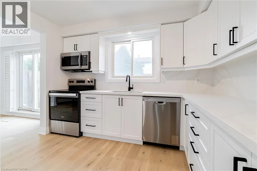 Lakeshore to Burloak Experience lakeside living at 5475 Lakeshore Road, Unit 4 â a fully renovated two-story townhouse in Burlington. This three-bedroom, 1.5-bath home with a finished basement blends modern luxury with family-friendly design. Fully rewired with a brand-new panel, the home features brand-new oak floors, oak stairs, doors, trim, pot lights, and fixtures throughout. The stunning white kitchen boasts brand-new cabinets, quartz countertops that flow into the backsplash, and all new appliances, while the main-floor powder room and upstairs bath are completely new with modern finishes and luxe details. Nestled at the back of the complex, the unit offers quiet privacy and direct access from your two underground parking spots right at your basement door. Beyond the underground, the complex is car-free, featuring safe pathways, a playground, a newly renovated party room, and a sparkling outdoor pool â perfect for kids and community living. Lakeside views, high-end finishes, and thoughtful design make this move-in-ready townhouse an exceptional opportunity in Burlingtonâs sought-after waterfront area (id:27476)