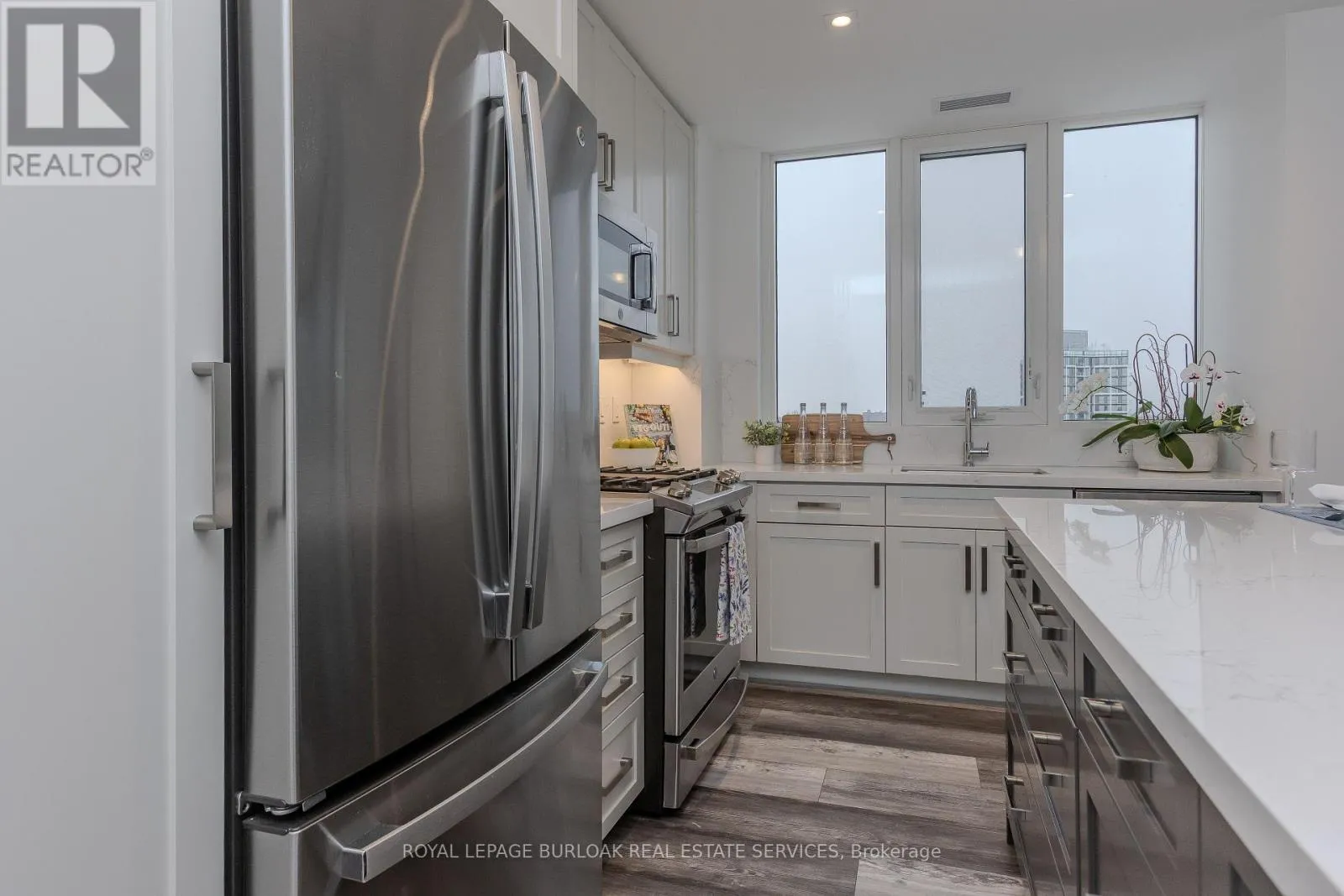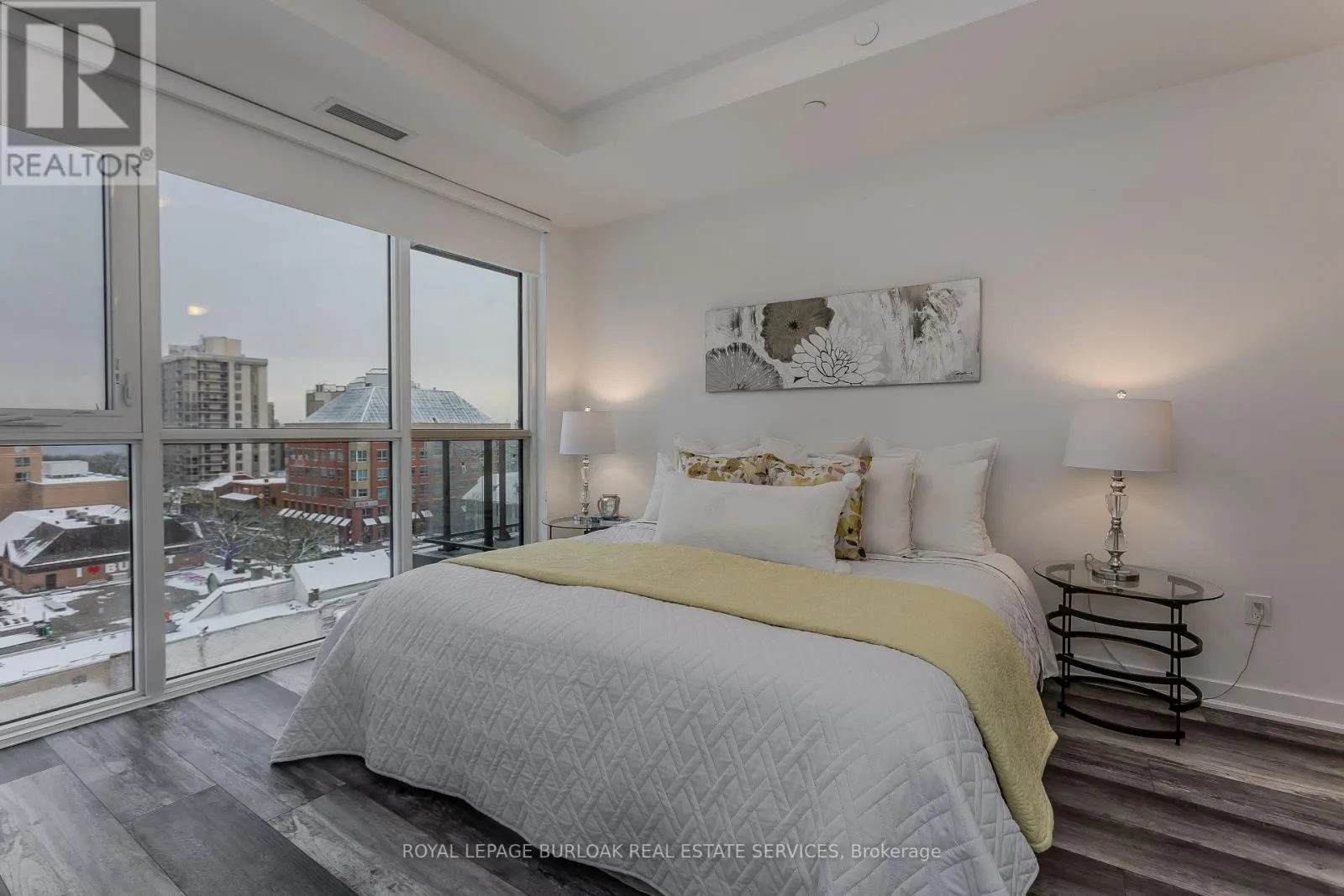 Brant St & James St Experience elevated condo living at Gallery Condos, located in the heart of Burlington's vibrant downtown core, where luxury, lifestyle, and breathtaking lake views come together seamlessly. Spanning 1,064 sqft, this stunning residence offers panoramic waterfront vistas and a front-row seat to one of the city's most sought-after urban lifestyles-perfect for young professionals who want it all, just steps from their door. Inside, a modern and highly functional layout is flooded with natural light, complemented by upgraded wide-plank hardwood flooring throughout. The striking eat-in kitchen blends style and practicality with quartz countertops and backsplash, stainless steel appliances, deep pot-and-pan drawers, a pantry cabinet with efficient roll-out shelving, valance lighting, and a generous island with breakfast bar-ideal for hosting, working, or unwinding. Floor-to-ceiling windows in the spacious living area frame picturesque lake views and open to a private balcony with gas line for BBQ, creating an effortless indoor-outdoor connection. The primary suite is a true retreat, featuring floor-to-ceiling windows, a walk-in closet, and a spa-inspired ensuite with oversized vanity, deep soaker tub, and glass walk-in shower. A second bedroom with floor-to-ceiling windows offers flexibility for guests or a home office, complemented by a sleek four-piece main bath and convenient in-suite laundry. Parking and a storage locker are included. Residents enjoy an impressive collection of amenities including a contemporary lobby lounge, fully equipped fitness centre, co-working and meeting spaces, party and games rooms, media room, indoor lap pool, rooftop terrace with community BBQs, guest suites, concierge service, and a car wash. Set in an unbeatable lifestyle location, you're steps from exceptional dining, cafés, entertainment, waterfront parks and trails, daily essentials, transit, and quick highway access-urban living at its most refined. (id:27476)