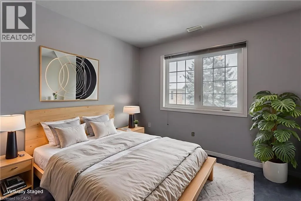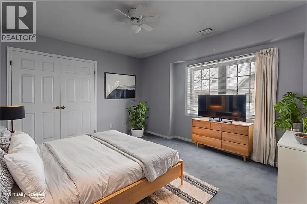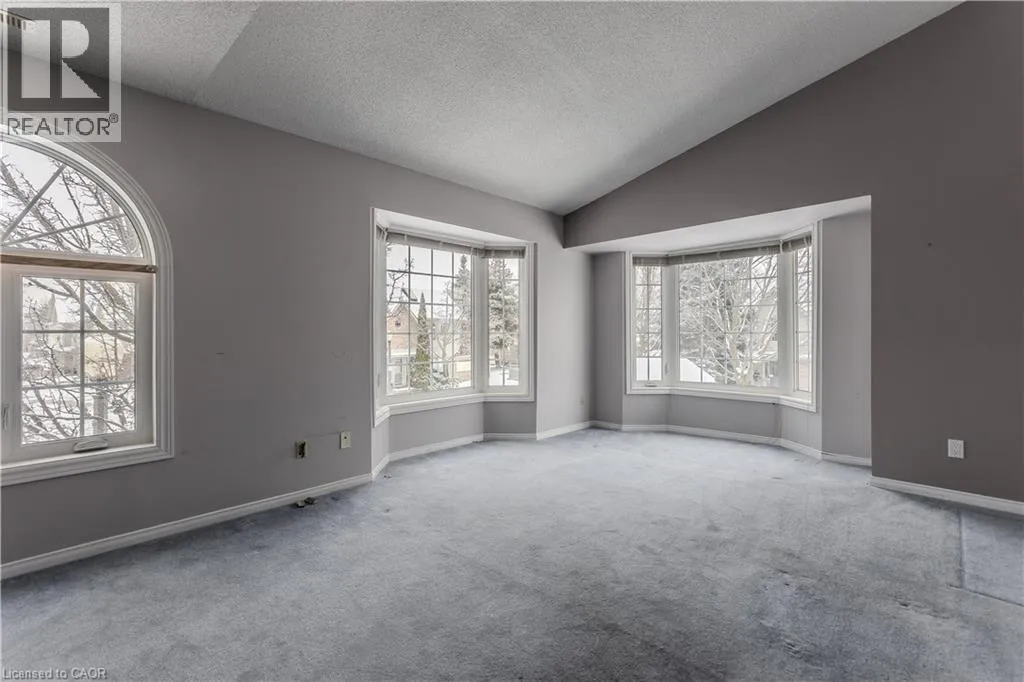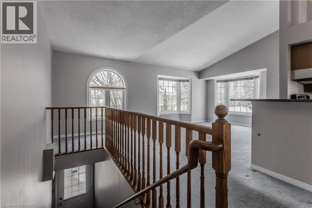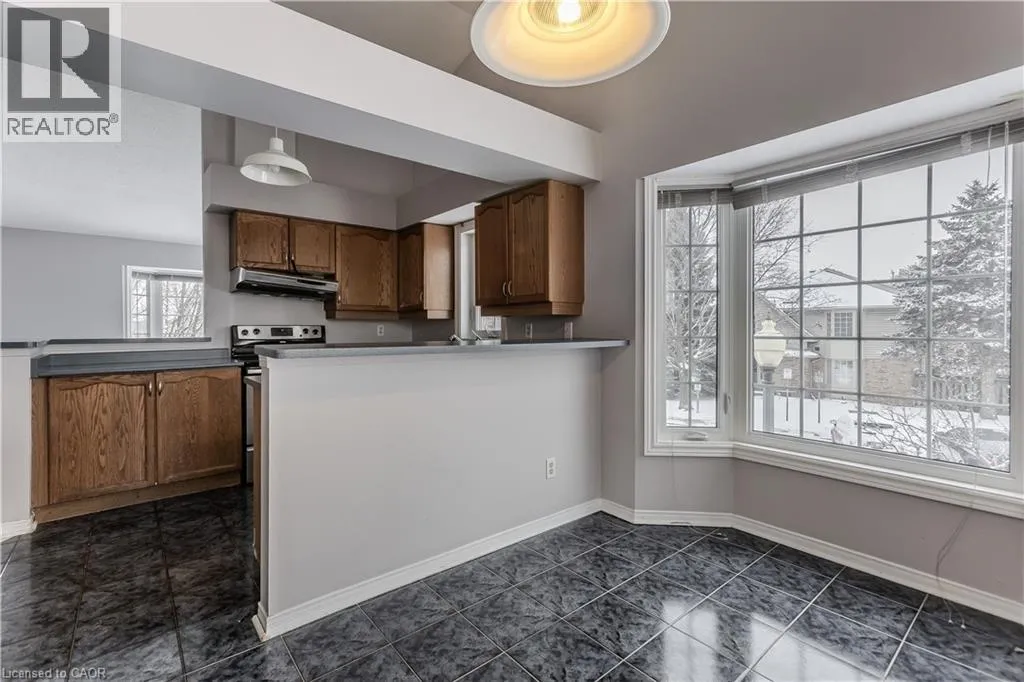 New Street and Woodview Road Welcome to a well-located opportunity in one of south Burlingtonâs most sought-after enclaves. This upper-level, end-unit stacked townhouse is nestled within a quiet, well-maintained community and offers a solid foundation for buyers looking to make a space their own. The single-level layout is functional and family-friendly, with an end-unit configuration that allows for additional natural light and added privacy. The open-concept living area features soaring vaulted ceilings and a large bay window, creating a bright, airy space with plenty of potential to personalize and transform into a warm family hub. The eat-in kitchen is thoughtfully laid out with ample cabinetry, stainless steel appliances, ceramic tile flooring, and a breakfast bar thatâs ideal for busy mornings or casual meals. A dedicated dining area offers space for family dinners, while a walkout leads to a private balconyâperfect for enjoying your morning coffee or winding down at the end of the day. The primary bedroom is generously sized with a bright window, complemented by a second bedroom ideal for a childâs room, nursery, home office, or guest space. A full 4-piece bathroom and in-suite laundry complete the layout. Set close to schools, parks, shopping, transit, and all daily amenities, this home is being offered as-is and presents an excellent opportunity for buyers ready to add their personal touch in a family-friendly neighbourhood they will love to call home. (id:27476)