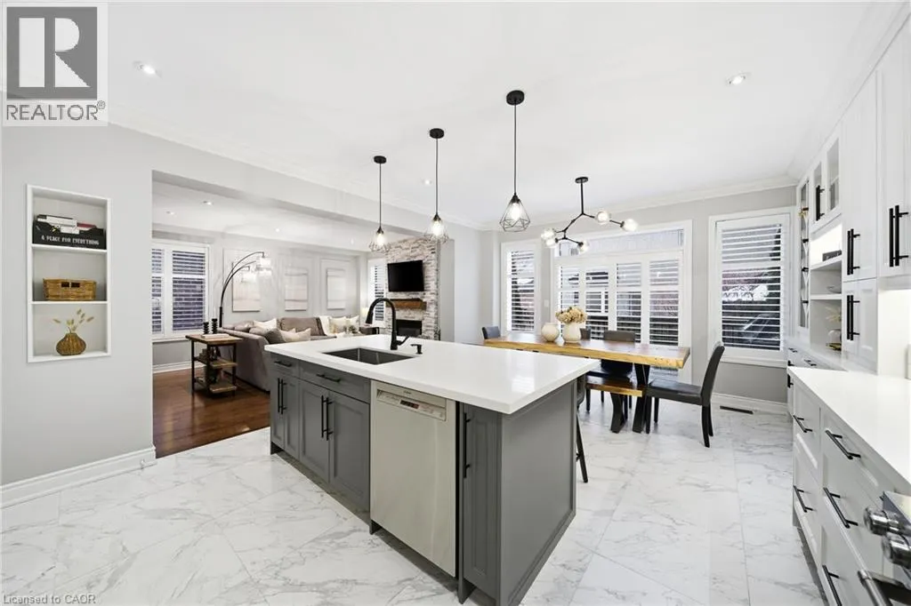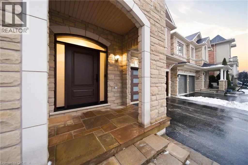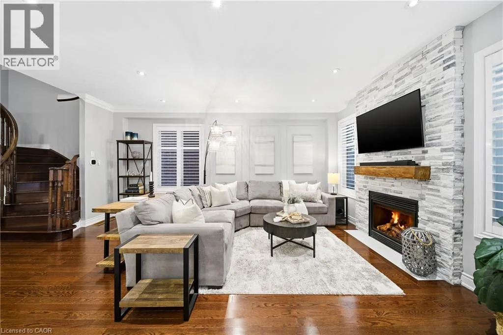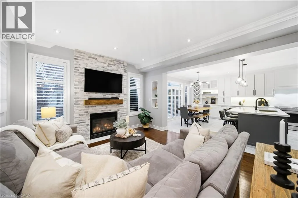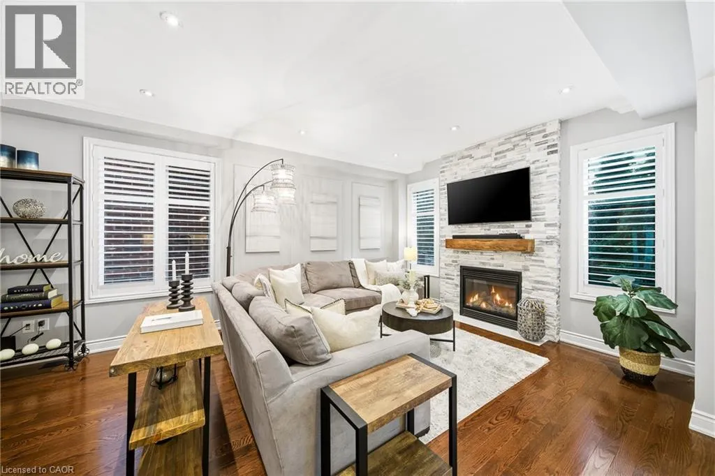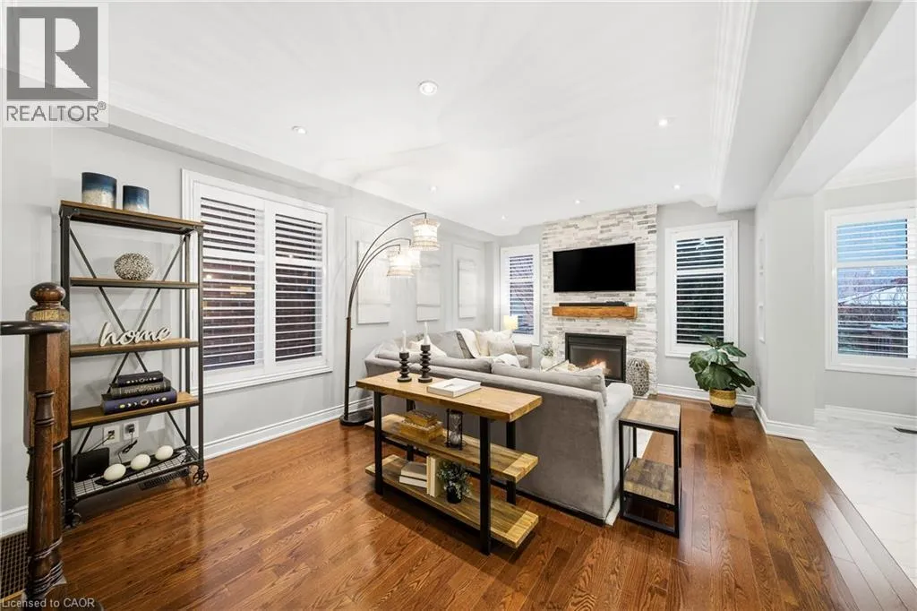 Thomas Alton Blvd- Hopkins Dr. - Kearse St. Move-in ready, beautifully styled 4+1 bed 3.5 bath home nestled on a quiet street in family-friendly Alton community. Exceptional curb appeal greets you with a stone exterior, refreshed landscaping, upgraded front door & garage doors (2025), and double garage. Inside, the home has been thoughtfully renovated and impeccably maintained. Main level showcases hardwood flooring, 9â ceilings, potlights, upgraded light fixtures, shutters, elegant panel moulding, wainscoting, crown moulding and trim throughout. The inviting family room is anchored by a gas fireplace with a custom mantle and striking stone accent wall, offering a warm, stylish space to relax. The heart of the home is the custom-crafted, renovated eat-in kitchen, featuring built-in shelving, a large quartz island, SS appliances, gorgeous lighting and thoughtful storageâperfect for everyday living and entertaining. Newly renovated powder room and updated tile flooring in the front entry complete the main level. Upstairs, youâll find 4 generously sized bedrooms, including a serene primary retreat with a walk-in closet and a beautifully renovated 5-pc ensuite (2025) featuring soaker tub & glass shower. Bedroom-level laundry adds everyday convenience. Professionally finished lower level extends your living space with a 5th bedroom complete with egress window, an updated full bathroom, ample storage and a dedicated theatre area with 9.2 surround sound wiringâideal for movie nights, guests, or a teen retreat. Step outside to enjoy a deck off the kitchen for barbecuing and a private backyard with stone patio, interlock, and low-voltage landscape lighting front and back. A three-zone irrigation system keeps the grounds lush and low maintenance. Additional peace-of-mind upgrades include a roof with upgraded insulation (2022), furnace and A/C (2021), and hot water heater (2024). Close to top-rated schools, parks, shopping, GO Transit and easy access to hwys 407 & QEW, this exceptional home truly checks all the boxes. (id:27476)
