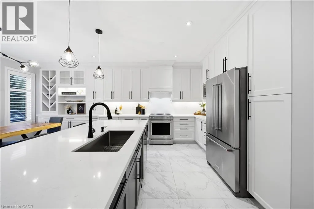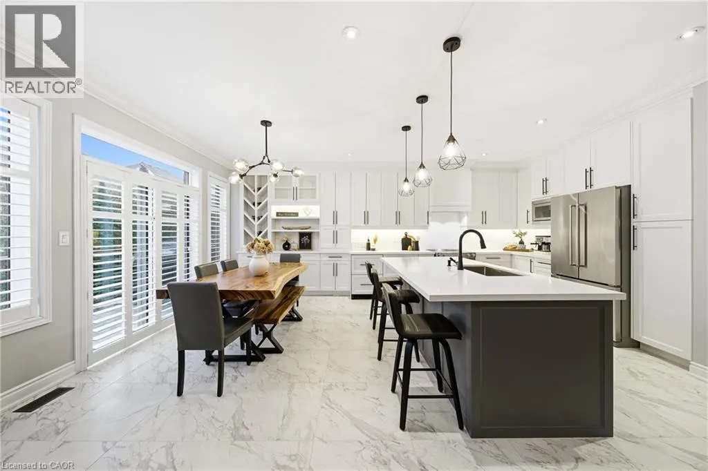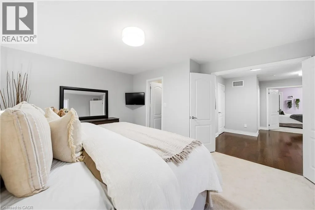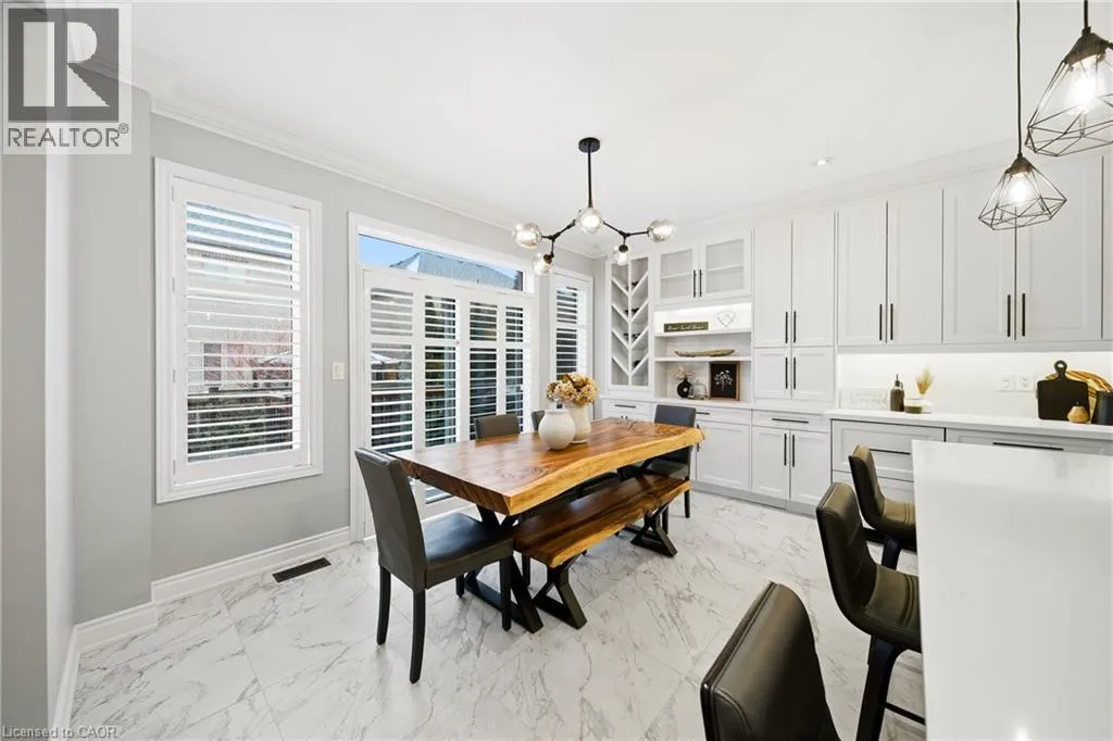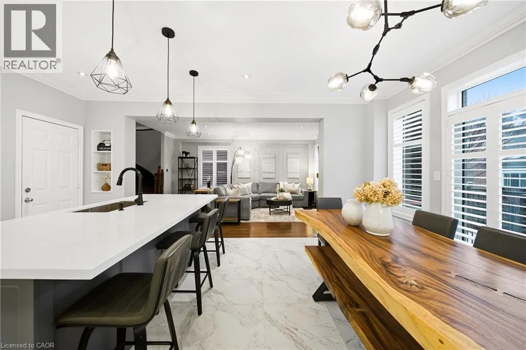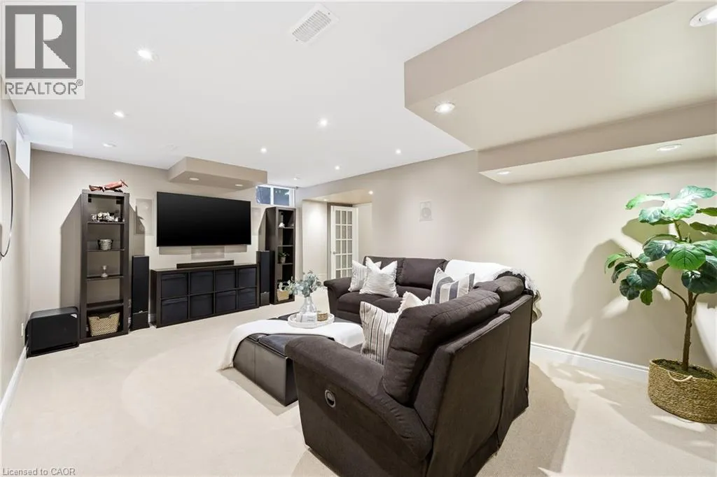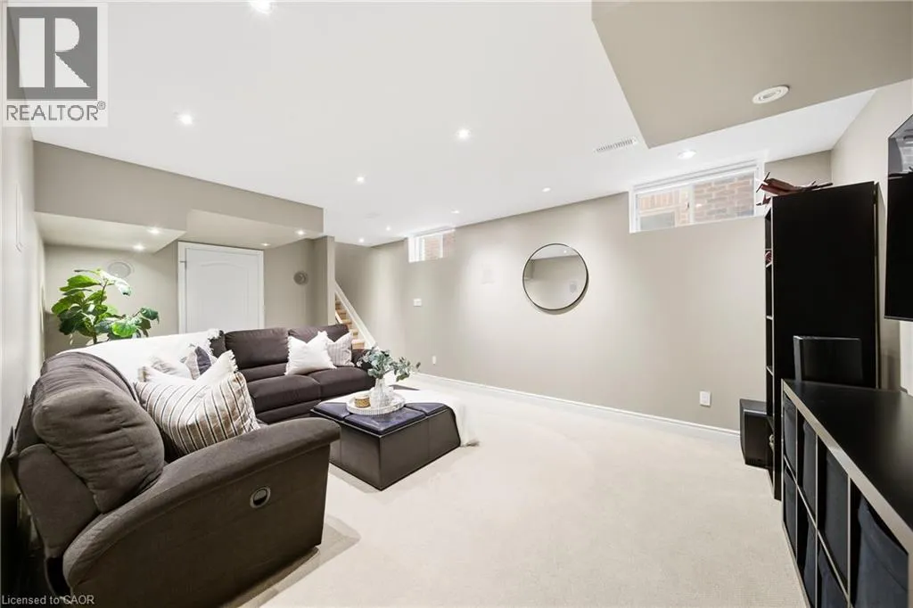 Thomas Alton Blvd- Hopkins Dr. - Kearse St. Move-in ready, beautifully styled 4+1 bed 3.5 bath home nestled on a quiet street in family-friendly Alton community. Exceptional curb appeal greets you with a stone exterior, refreshed landscaping, upgraded front door & garage doors (2025), and double garage. Inside, the home has been thoughtfully renovated and impeccably maintained. Main level showcases hardwood flooring, 9â ceilings, potlights, upgraded light fixtures, shutters, elegant panel moulding, wainscoting, crown moulding and trim throughout. The inviting family room is anchored by a gas fireplace with a custom mantle and striking stone accent wall, offering a warm, stylish space to relax. The heart of the home is the custom-crafted, renovated eat-in kitchen, featuring built-in shelving, a large quartz island, SS appliances, gorgeous lighting and thoughtful storageâperfect for everyday living and entertaining. Newly renovated powder room and updated tile flooring in the front entry complete the main level. Upstairs, youâll find 4 generously sized bedrooms, including a serene primary retreat with a walk-in closet and a beautifully renovated 5-pc ensuite (2025) featuring soaker tub & glass shower. Bedroom-level laundry adds everyday convenience. Professionally finished lower level extends your living space with a 5th bedroom complete with egress window, an updated full bathroom, ample storage and a dedicated theatre area with 9.2 surround sound wiringâideal for movie nights, guests, or a teen retreat. Step outside to enjoy a deck off the kitchen for barbecuing and a private backyard with stone patio, interlock, and low-voltage landscape lighting front and back. A three-zone irrigation system keeps the grounds lush and low maintenance. Additional peace-of-mind upgrades include a roof with upgraded insulation (2022), furnace and A/C (2021), and hot water heater (2024). Close to top-rated schools, parks, shopping, GO Transit and easy access to hwys 407 & QEW, this exceptional home truly checks all the boxes. (id:27476)