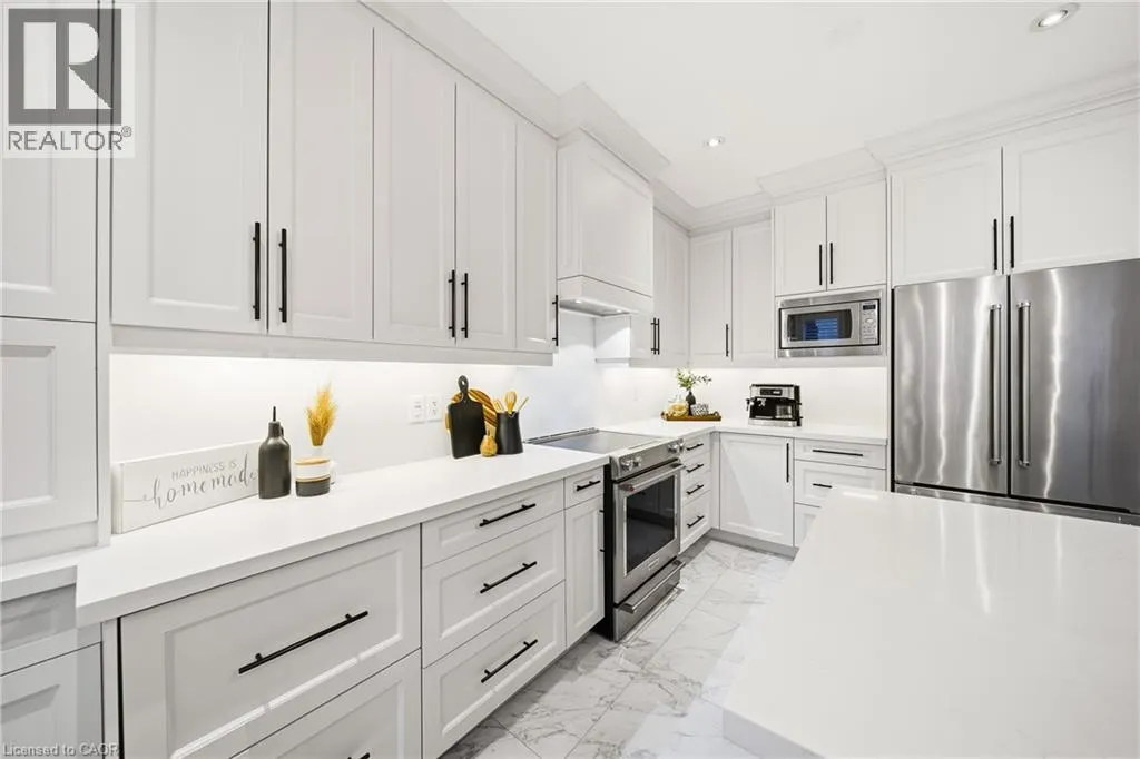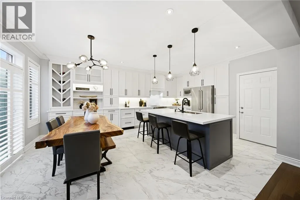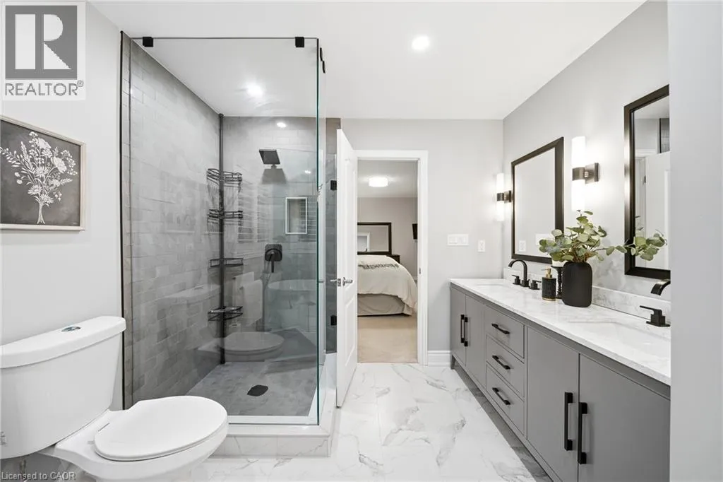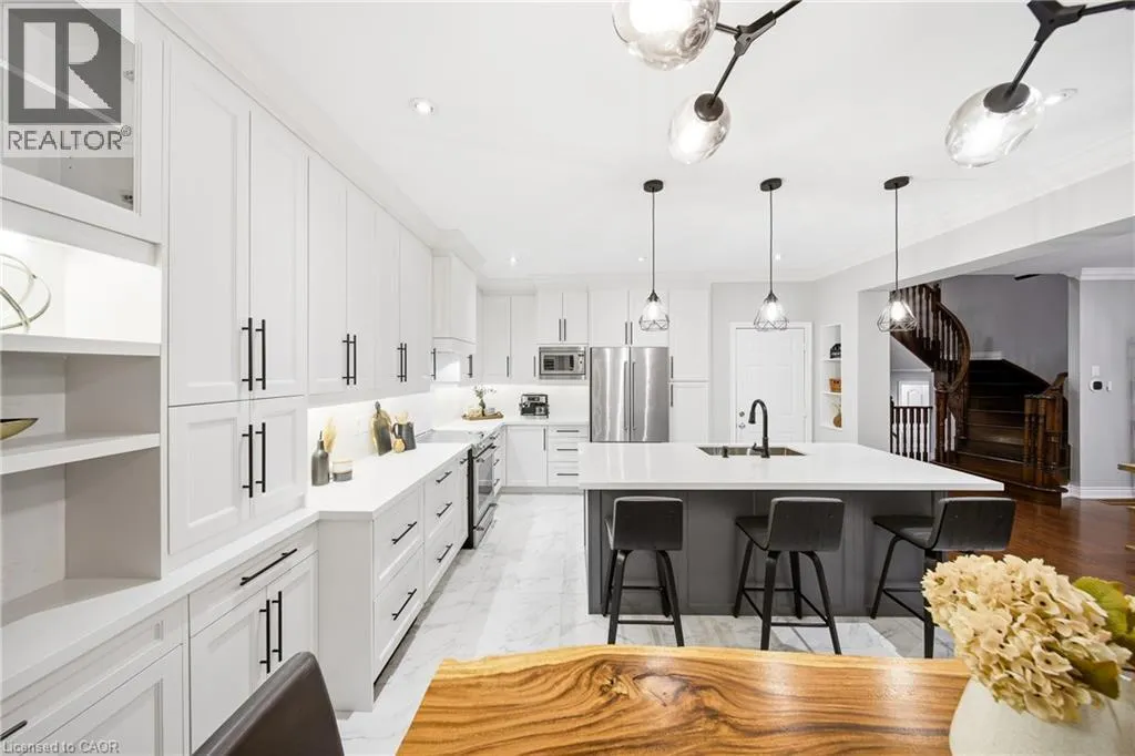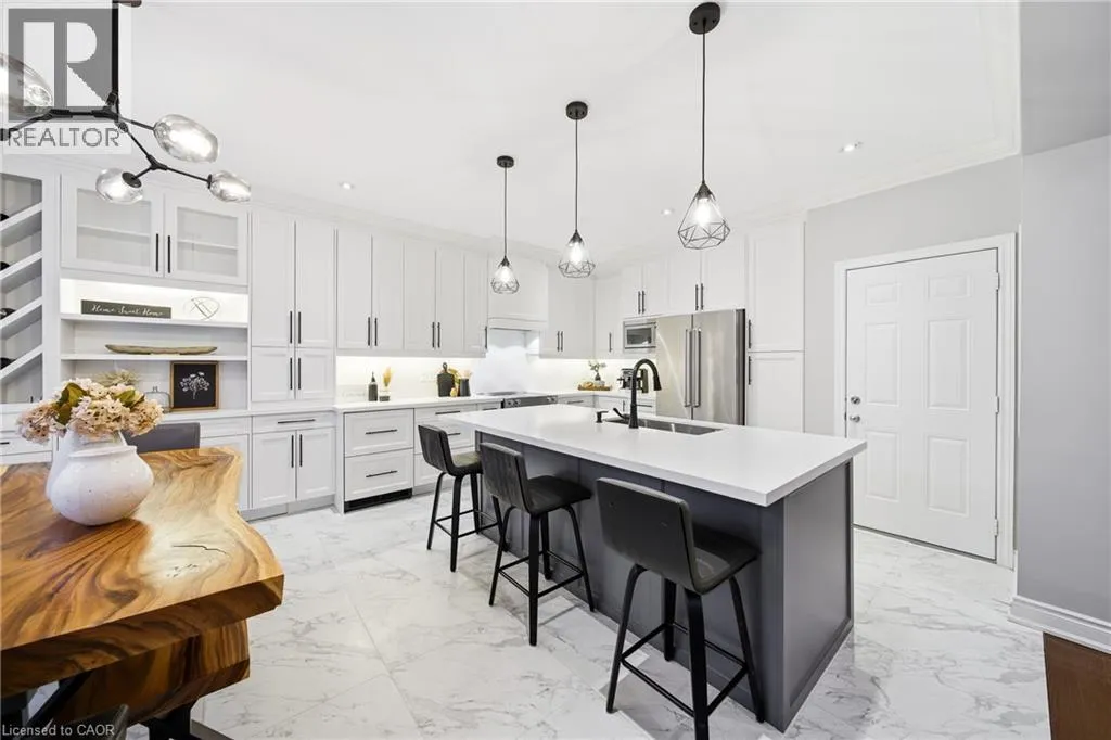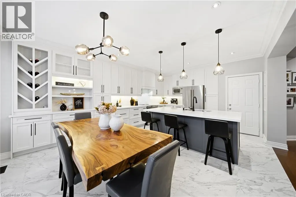 Thomas Alton Blvd- Hopkins Dr. - Kearse St. Move-in ready, beautifully styled 4+1 bed 3.5 bath home nestled on a quiet street in family-friendly Alton community. Exceptional curb appeal greets you with a stone exterior, refreshed landscaping, upgraded front door & garage doors (2025), and double garage. Inside, the home has been thoughtfully renovated and impeccably maintained. Main level showcases hardwood flooring, 9â ceilings, potlights, upgraded light fixtures, shutters, elegant panel moulding, wainscoting, crown moulding and trim throughout. The inviting family room is anchored by a gas fireplace with a custom mantle and striking stone accent wall, offering a warm, stylish space to relax. The heart of the home is the custom-crafted, renovated eat-in kitchen, featuring built-in shelving, a large quartz island, SS appliances, gorgeous lighting and thoughtful storageâperfect for everyday living and entertaining. Newly renovated powder room and updated tile flooring in the front entry complete the main level. Upstairs, youâll find 4 generously sized bedrooms, including a serene primary retreat with a walk-in closet and a beautifully renovated 5-pc ensuite (2025) featuring soaker tub & glass shower. Bedroom-level laundry adds everyday convenience. Professionally finished lower level extends your living space with a 5th bedroom complete with egress window, an updated full bathroom, ample storage and a dedicated theatre area with 9.2 surround sound wiringâideal for movie nights, guests, or a teen retreat. Step outside to enjoy a deck off the kitchen for barbecuing and a private backyard with stone patio, interlock, and low-voltage landscape lighting front and back. A three-zone irrigation system keeps the grounds lush and low maintenance. Additional peace-of-mind upgrades include a roof with upgraded insulation (2022), furnace and A/C (2021), and hot water heater (2024). Close to top-rated schools, parks, shopping, GO Transit and easy access to hwys 407 & QEW, this exceptional home truly checks all the boxes. (id:27476)