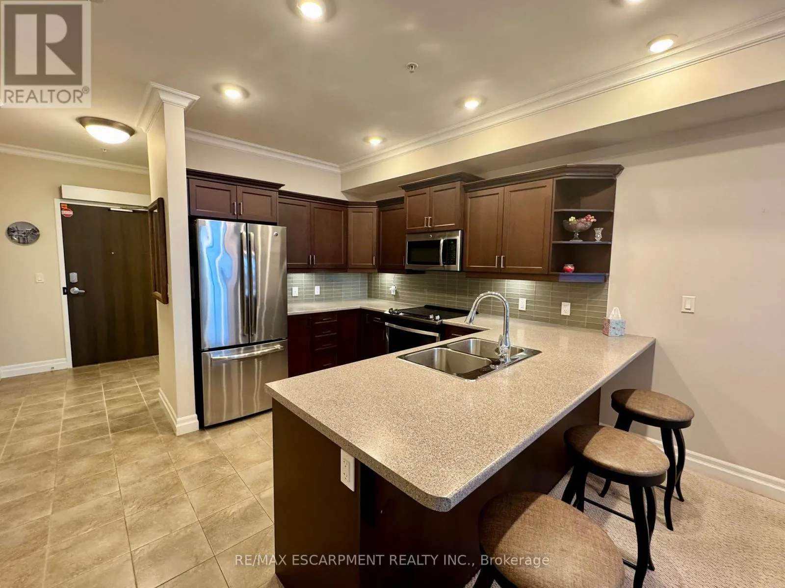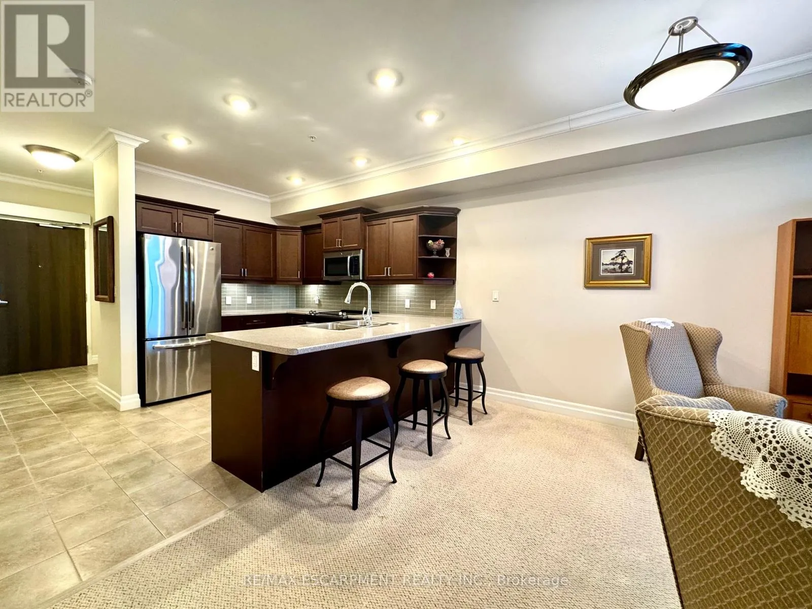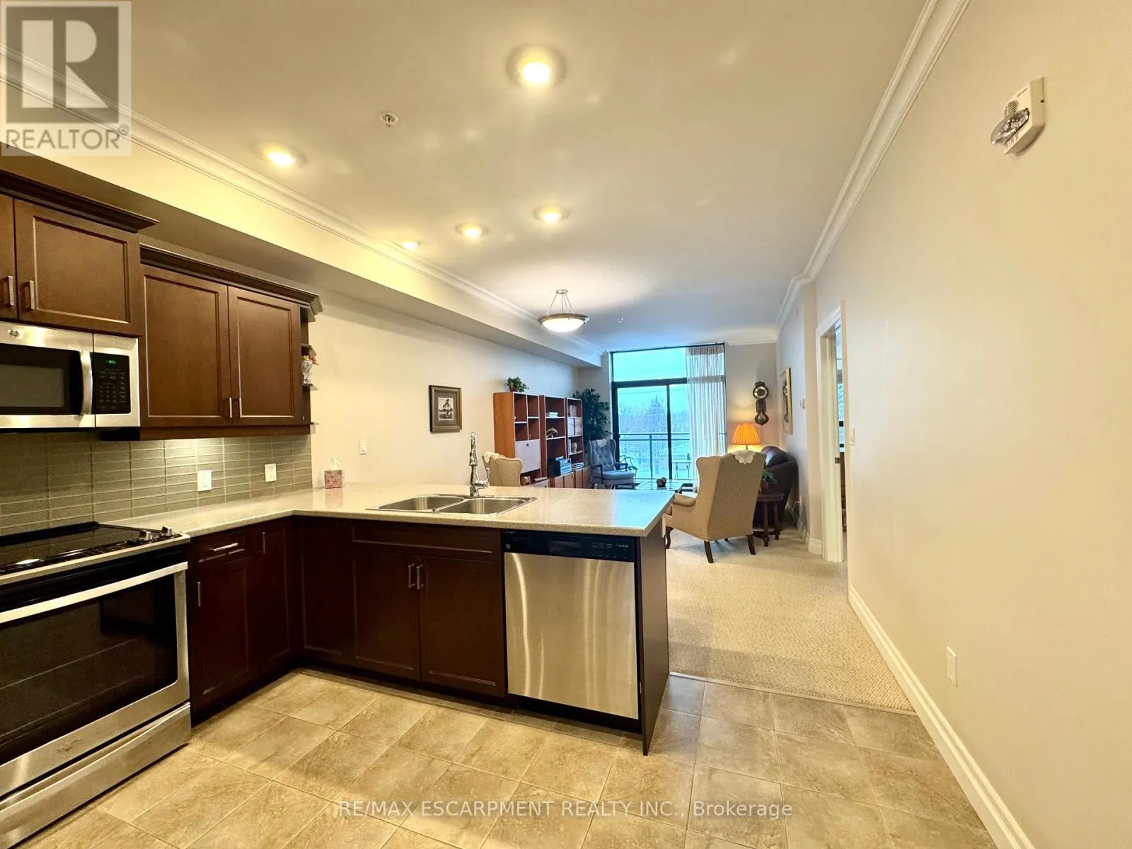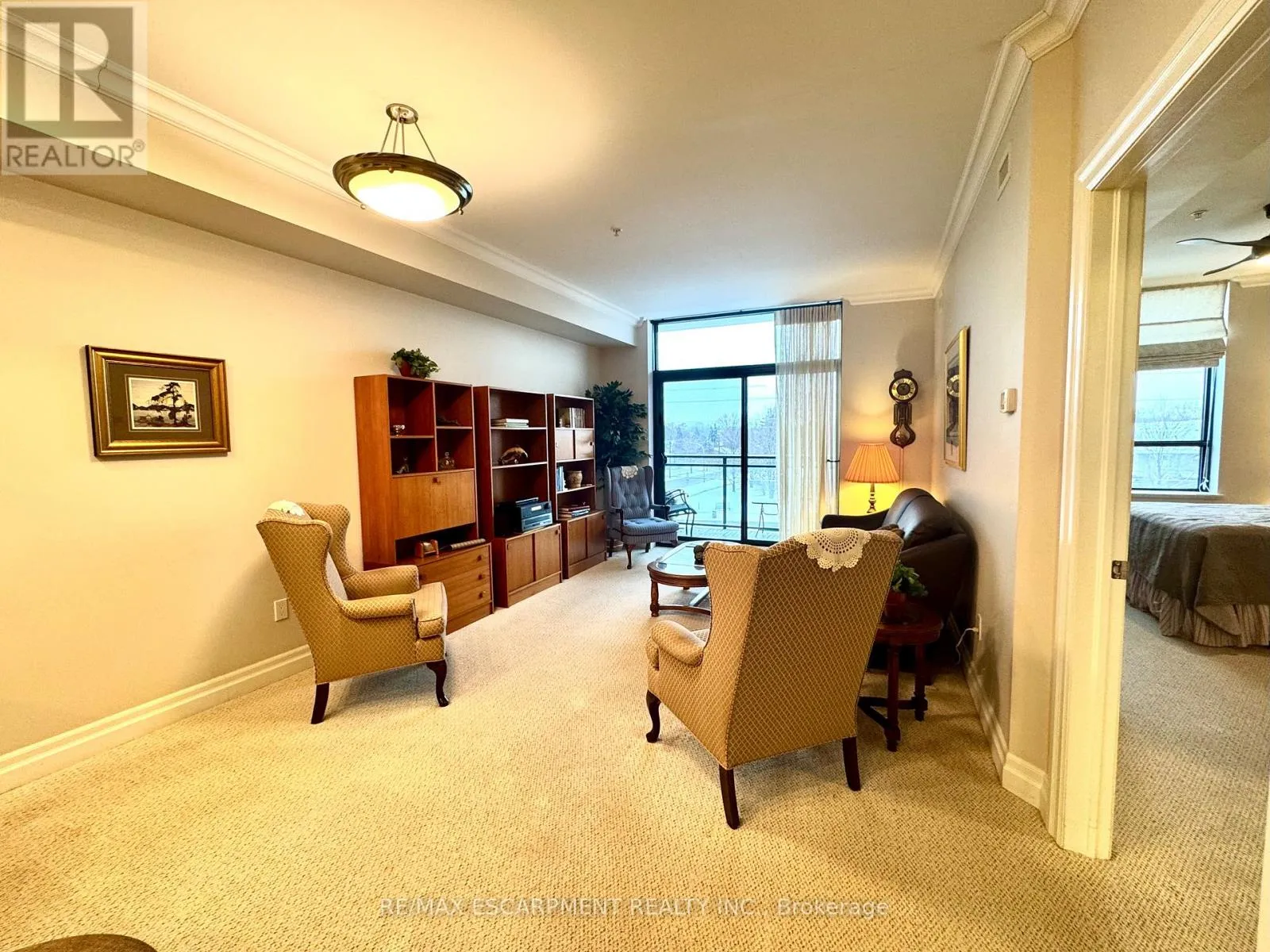 Cross Streets: Cumberland Ave. ** Directions: New St. @ Cumberland Ave. Welcome to "The Gardens by Maranatha", a fully wheelchair-accessible 55+ life lease community located in the heart of mature South Burlington. This thoughtfully designed 1 bedroom plus den residence spans approximately 985 sq. ft. and is situated on the 3rd floor, creating an ideal setting for comfortable, low-maintenance retirement living. The bright, open-concept layout features a spacious kitchen with stainless steel appliances, ample cabinetry, and lower cabinets equipped with convenient pull-out drawers for enhanced accessibility. The kitchen flows seamlessly into the dining and living areas. The living room connects to a private balcony. The primary bedroom includes a walk-in closet and a wheelchair-accessible bathroom complete with a roll-in shower and grab bars. A versatile den provides flexible space for a home office, or hobby room. Additional conveniences include an automatic unit door opener, wide doorways, and in-suite laundry with custom cabinetry, designed with accessibility in mind. Residents enjoy more than 10,000 sq. ft. of outstanding amenities, including a fitness room, woodworking workshop, library, games lounge, coffee shop, main floor lounge, party and meeting rooms, outdoor terraces, and a beautifully appointed 4th-floor rooftop terrace with BBQs and raised garden beds. Secure underground parking, storage lockers, and guest suites add further comfort and convenience. Ideally positioned steps from shopping, public transit, churches, parks, lakefront trails, the hospital, Senior's Centre, library, and downtown Burlington, this welcoming community blends connection with convenience.Monthly fees include heat, water, building insurance, maintenance, landscaping, snow removal, property taxes, phone, internet, and common elements, ensuring a truly carefree lifestyle. A warm, vibrant community designed for independent living - The Gardens by Maranatha is a place you'll be proud to call home. (id:27476)