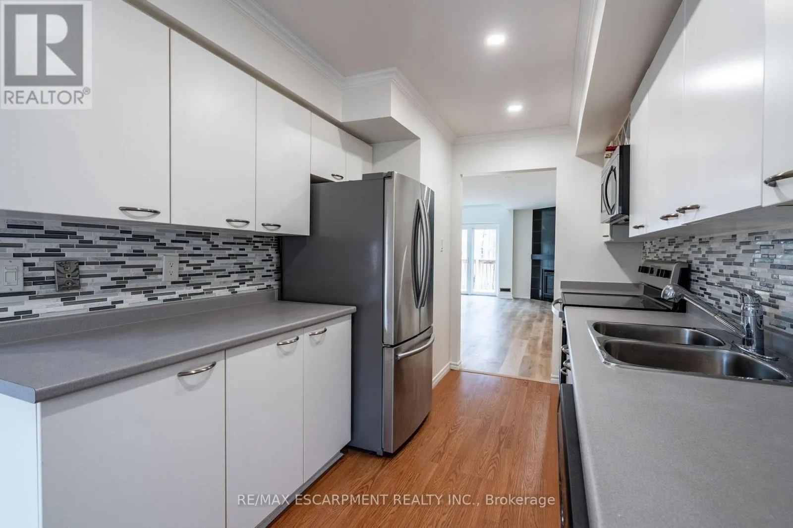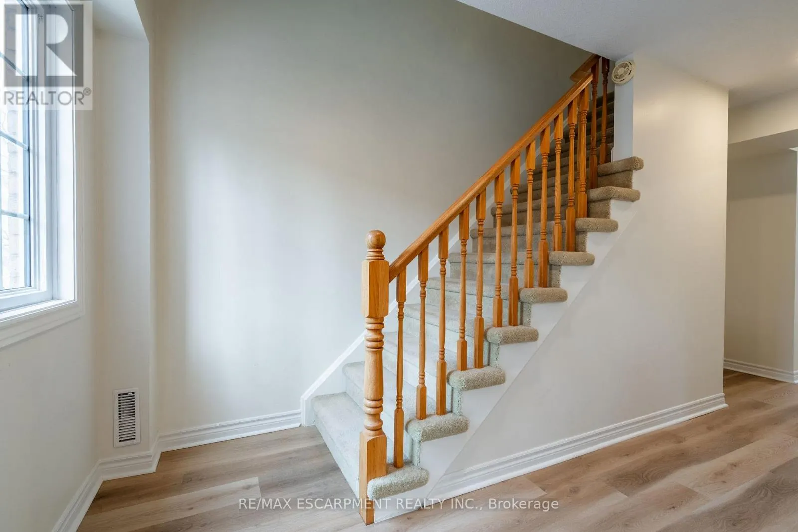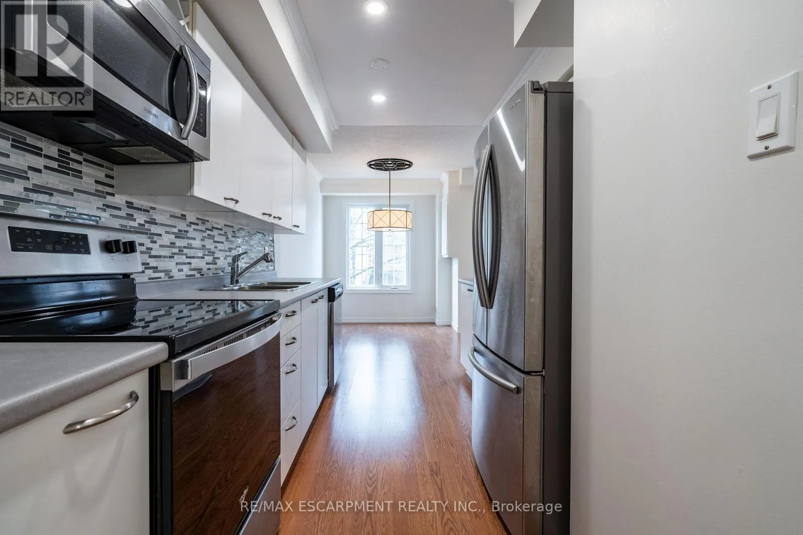Cross Streets: Walkers Line and Upper middle. ** Directions: Upper Middle and Walkers Line. Stunning 2 Bedroom Loft-Style Townhome in Desirable Millcroft** Discover the perfect blend of comfort and tranquility in this rare 2-bedroom, 2 bathroom loft-style townhome. This exceptional unit rarley offered in this complex, backs onto a serene private ravine, providing a peaceful retreat right in your backyard. As you enter, a brand new staircase welcomes you to a bright and inviting living space, adorned with new flooring that complements the modern aesthetic. The open-concept layout features high ceilings, creating an airy atmosphere throughout. Enjoy cozy evenings by the gas fireplace, while natural light pours in through the skylight, illuminating both the primary bedroom and living room. Step outside to your new private terrace (7x14), offering picturesque views of the wooded area and stream, making it the perfect spot for morning coffee or evening relaxation. The bathrooms have luxurious heated floors and elegant glass doors, adding a touch of sophistication to your daily routine. The Condo Corporation has ensured peace of mind with recently replaced windows, doors, and garage door, enhancing the home's energy efficiency and curb appeal. You'll also appreciate the convenience of a one-car garage, just steps away, complete with a large storage room attached for all your needs. Visitor parking is plentiful, making it easy for friends and family to visit. This location is a true gem, with close proximity to scenic walking trails, golf courses-including the beautiful Tansley Woods-shopping, medical facilities, all within walking distance. Whether you're a first time home buyer seeking a stylish space retiree looking for a peaceful haven, this townhome offers everything you need. In a neighbourhood that offers saftey and value. (id:27476)