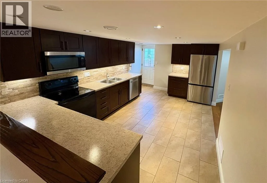 St. Frances to Colonsay to Brenner. Follow path at left of driveway to rear of property, stairs to lower unit are there. Bright and spacious 2 bedroom + Den self contained lower unit rental with yard access in Burlington's Mountainside community. This renovated unit features a large Eat-in Kitchen with all appliances and plenty of counterspace / storage, a well appointed spacious 4 pc bath, 2 bedrooms with large windows to let the light in, plus a den area that would be perfect for a home office or gym area, storage area, in suite laundry, 2 tandem parking spaces in the driveway and utilities are included (Tenant only pays for their own Cable/Internet. The rear yard has a small patio and a fence will be constructed in 2026 to give private yard space as well. Pets are welcome with owner approval. The area features good highway access and a short distance from the GO station. Plenty of shopping a short walk away and a short drive to Costco, Home Depot, Staples, Banks, Major Grocery stores and so much more. You will love living in the area as parks, public swimming pools, Sports fields, Golf and Trails are very close by and Burlington is known for its many festivals including Canada's largest RibFest, The Sound of Music Festival and the Lakeside Festival of Lights. (id:27476)