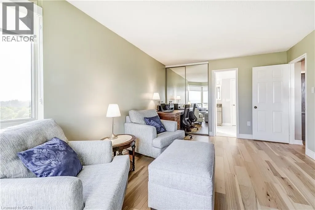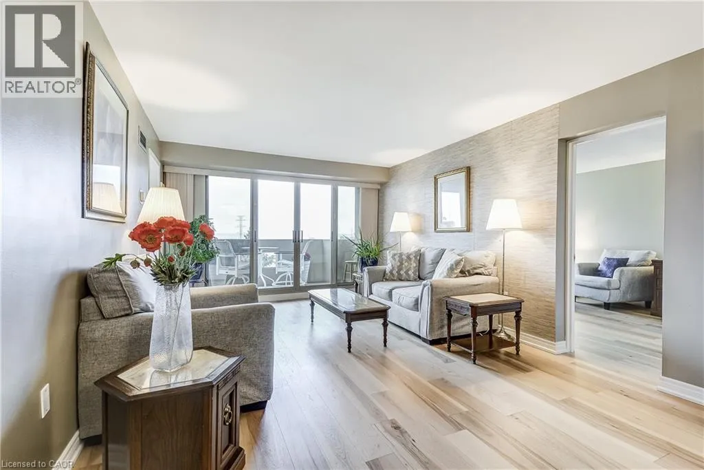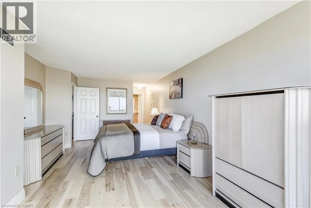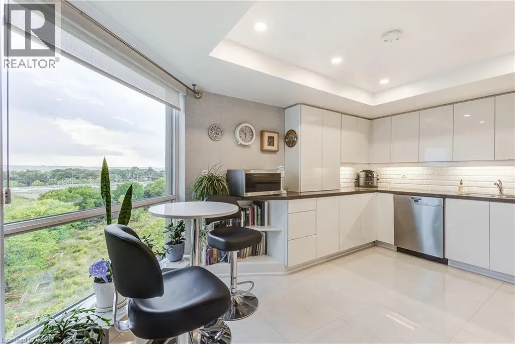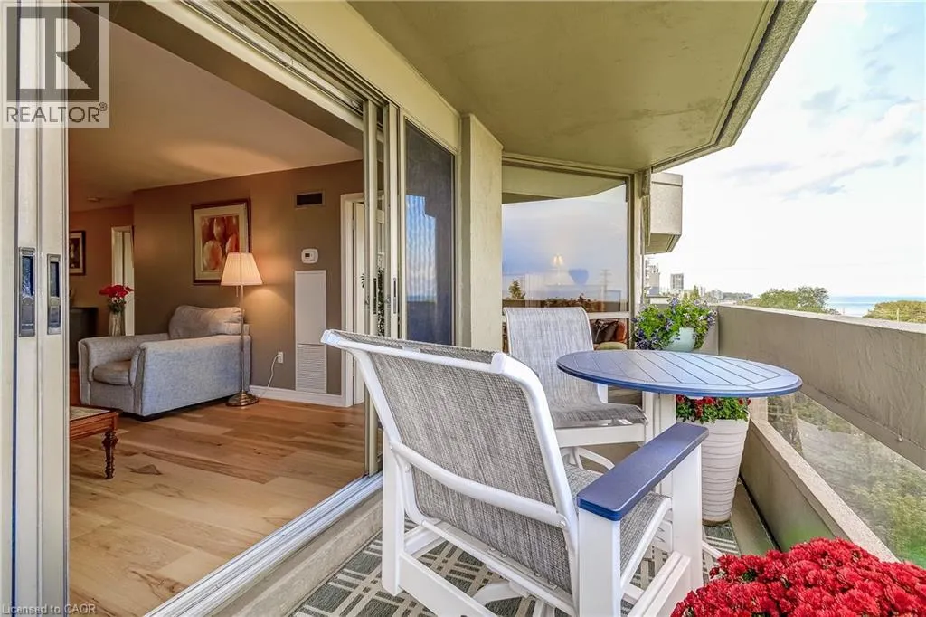 On North Shore Blvd East Between QEW and Maple Ave Welcome to this bright and spacious 2-bedroom, 2-bath corner suite offering over 1,300 sq. ft. of comfortable living space, perfect for downsizing, with stunning south-facing views of Lake Ontario from every window. This beautifully updated condo features a split-bedroom layout for added privacy, engineered hardwood flooring throughout, and 2x2 porcelain tiles in the kitchen, bathroom, and laundry. Enjoy electronic blinds in the kitchen and second bedroom for added convenience. The spacious living room opens to a large south-facing balcony through fourpanel sliding patio doors, seamlessly blending indoor and outdoor living and flooding the space with natural light. The modern eat-in kitchen is a chefâs dream, showcasing gleaming white push-touch cabinets, pot lights, under-mount cabinet lighting, and all stainless steel appliances, including an induction stove, fridge with ice maker and water dispenser, Miele dishwasher, and a reverse osmosis system. The primary suite offers a cozy sitting area, walk-in closet, and 4-piece ensuite. The second bedroom is also generously sized with a semi-ensuite 3-piece bath. A separate laundry room includes a Miele side-by-side washer and ventless dryer with plenty of storage space. Includes two parking spots and a locker, plus access to exceptional building amenities: a heated outdoor pool, tennis court, gym, library, social room, workshop, and an indoor car wash bay. Ideally located steps to downtown Burlington, waterfront trails, beaches, restaurants, shopping, and across from Joseph Brant Hospital. Convenient access to the QEW, 403, 407, and three GO Stations makes commuting a breeze. Make 809-1201 North Shore your Home!! (id:27476)