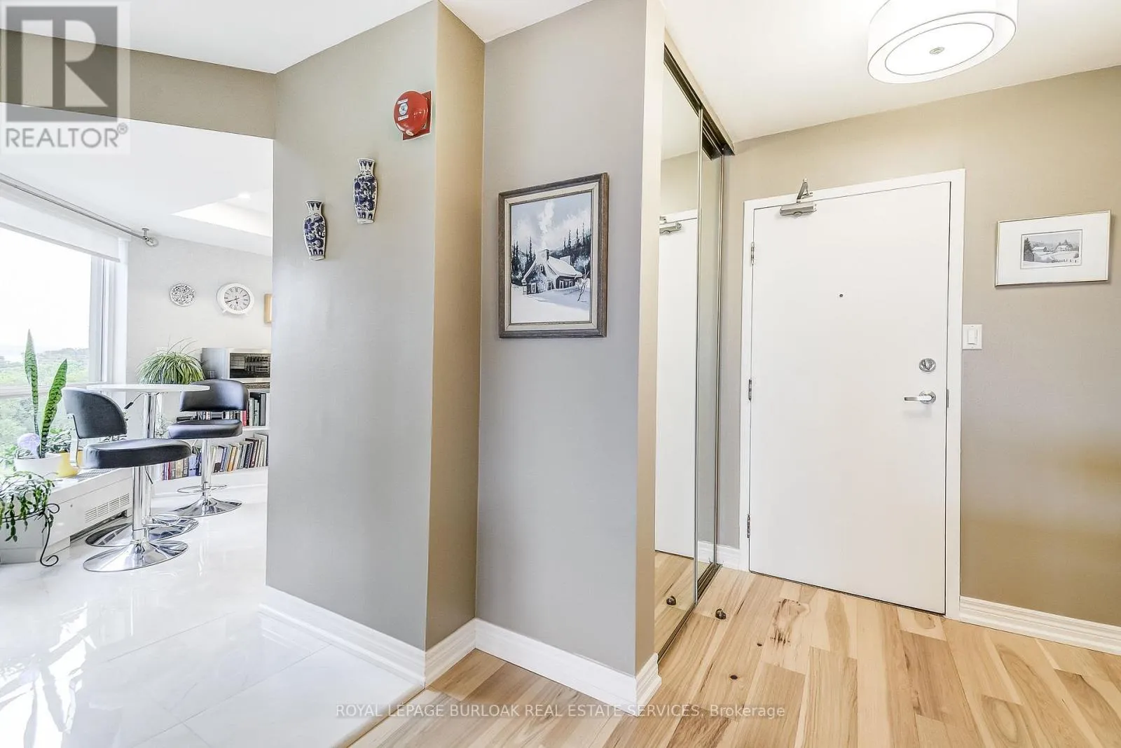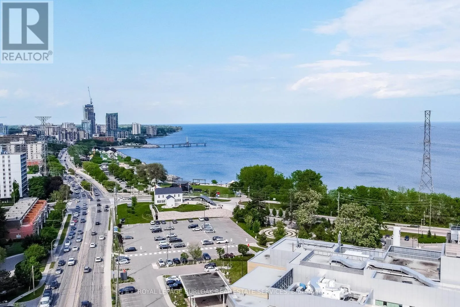Cross Streets: North Shore and Maple Ave. ** Directions: ON NORTH SHORE BLVD EAST BETWEEN QEW AND MAPLEAVE. Welcome to this bright and spacious 2-bedroom, 2-bath corner suite offering over 1,300 sq. ft. of comfortable living space, perfect for downsizing, with stunning south-facing views of Lake Ontario from every window. This beautifully updated condo features a split-bedroom layout for added privacy, engineered hardwood flooring throughout, and 2x2 porcelain tiles in the kitchen, bathroom, and laundry. Enjoy electronic blinds in the kitchen and second bedroom for added convenience. The spacious living room opens to a large south-facing balcony through four panel sliding patio doors, seamlessly blending indoor and outdoor living and flooding the space with natural light. The modern eat-in kitchen is a chef's dream, showcasing gleaming white push-touch cabinets, pot lights, under-mount cabinet lighting, and all stainless steel appliances, including an induction stove, fridge with ice maker and water dispenser, Miele dishwasher, and a reverse osmosis system. The primary suite offers a cozy sitting area, walk-in closet, and 4-pieceensuite. The second bedroom is also generously sized with a semi-ensuite 3-piece bath. A separate laundry room includes a Miele side-by-side washer and ventless dryer with plenty of storage space. Includes two parking spots and a locker, plus access to exceptional building amenities: a heated outdoor pool, tennis court, gym, library, social room, workshop, and an indoor carwash bay. Ideally located steps to downtown Burlington, waterfront trails, beaches, restaurants, shopping, and across from Joseph Brant Hospital. Convenient access to the QEW, 403, 407, and three GO Stations makes commuting a breeze. Make 809-1201 North Shore your Home!! (id:27476)
