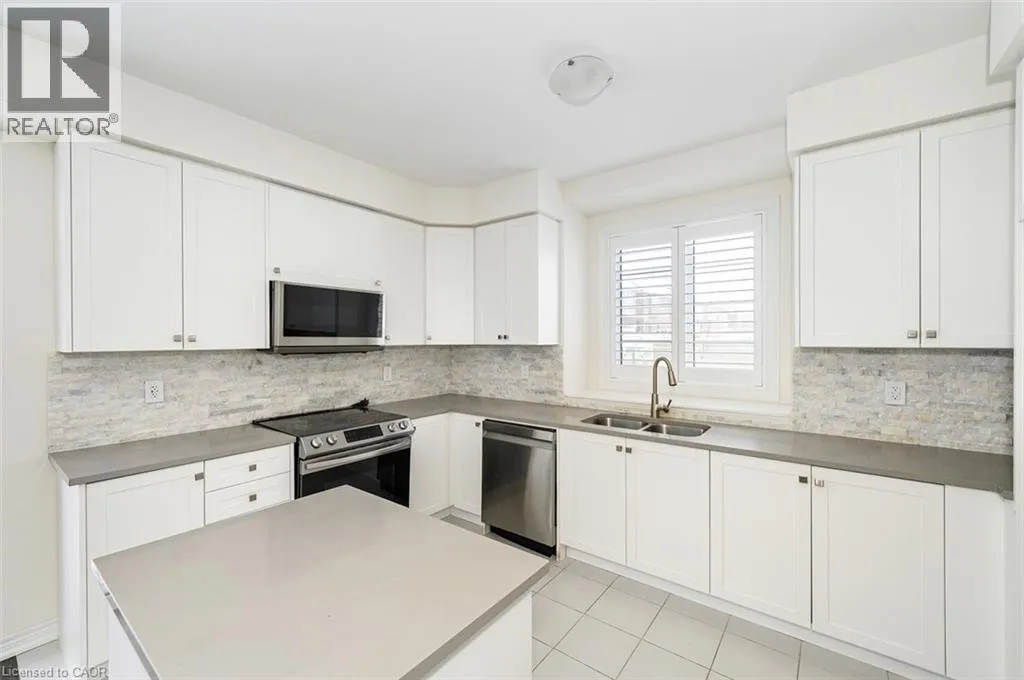 Dundas Street to Palladium Way to Lodi Road to Koenig Road Welcome to this 4+1 bedroom home located in the highly desirable Alton Village neighbourhood. The main floor showcases hardwood flooring throughout and kitchen featuring quartz countertops and island, seamlessly overlooking the inviting living room with gas fireplace and walkout access to the backyardâperfect for entertaining and everyday living. A formal dining room offers added versatility and can easily function as a second family room, while convenient main-floor laundry completes the space. An upgraded oak staircase leads to the second level, where youâll find four spacious bedrooms. The large primary retreat features his and hers closets and 5-piece ensuite with a soaker tub and oversized glass shower. A second bedroom enjoys its own private 4-piece ensuite, along with an additional 4-piece main bathroom serving the remaining bedrooms. The finished basement offers excellent in-law potential with a bedroom, kitchen, 4-piece bathroom, and an additional room ideal for a home office or flex space. Ideally situated close to top-rated schools, parks, shopping, amenities and quick 407 access, this home combines space, functionality, and location. (id:27476)