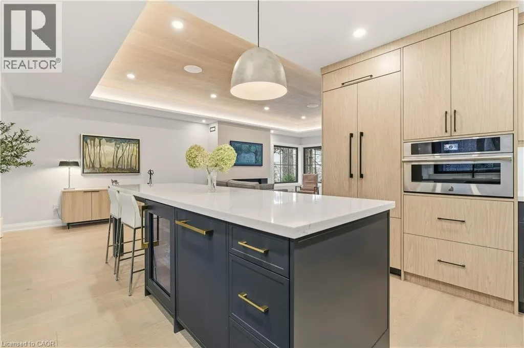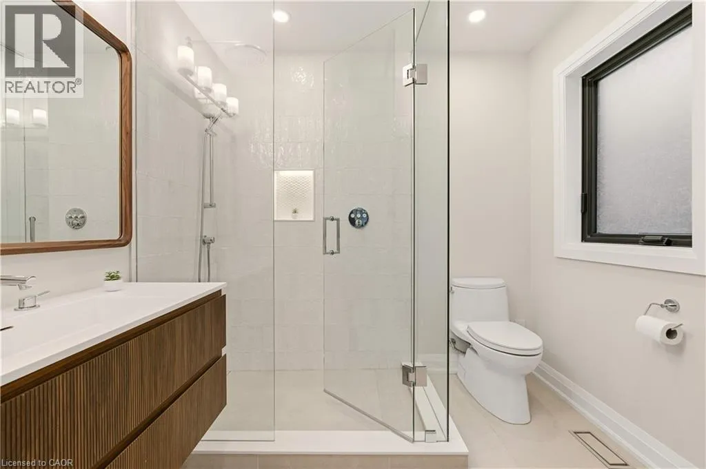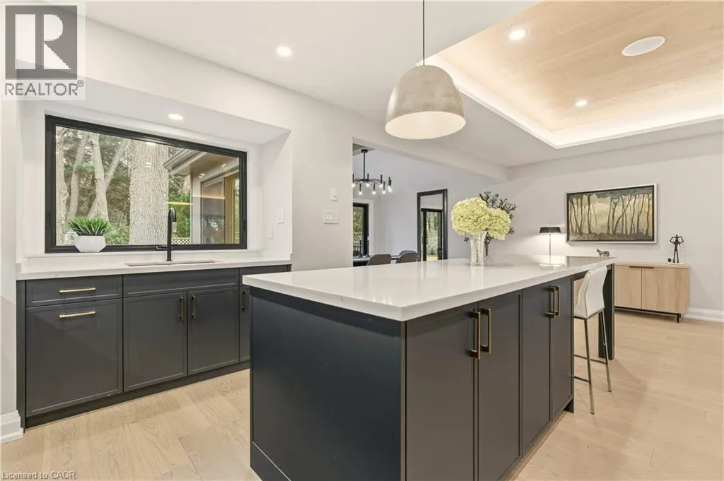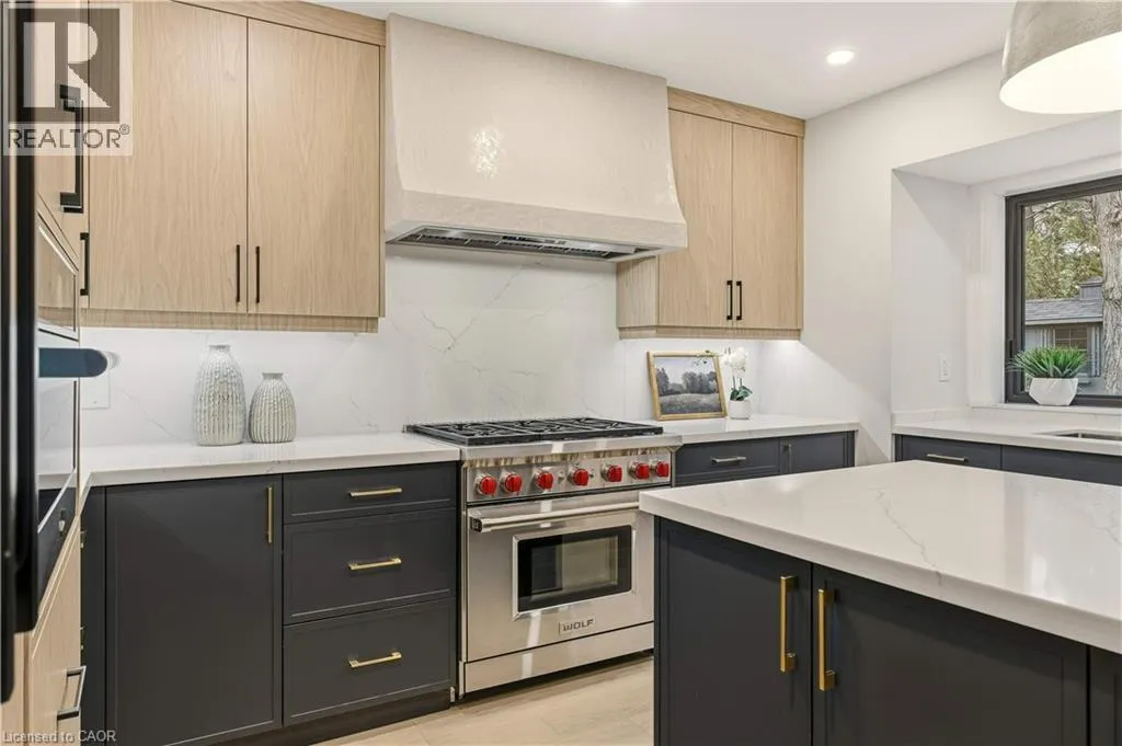 Shadeland and North Shore Blvd. Sophisticated bungalow living in the heart of Aldershot! Welcome to 759 Shadeland Ave. Meticulously renovated from top to bottom with designer details throughout. Impressive millwork and built-ins, white oak flooring, and heated floors on all tiled surfaces. The focal point is the gourmet kitchen with oversized island, Wolf gas range, and custom plaster hood. Gorgeous dining room with vaulted ceilings and wall to wall sliding doors overlooking the private yard. Sleek gas fireplace and inviting living room with accent ceiling. In-ceiling SONOS speakers throughout with multiple zones including backyard. Lower level features an additional bedroom, full bath and rec room. Convenient laundry room off the garage with heated floors and lots of storage. Garage has rough-in for electric car charger. Private backyard with composite deck. Enjoy the tranquillity of the neighbourhood with its gorgeous tree canopy and proximity to the waterfront and Burlington Golf & Country Club. Close to downtown, shopping GO Train, and schools. (id:27476)