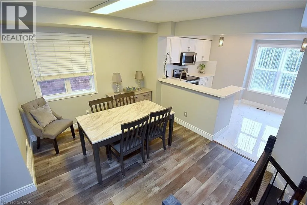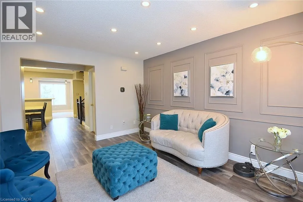 Welcome to this beautifully renovated end-unit townhouse in the highly sought-after Headon Forest community, offering enhanced privacy and an abundance of natural light throughout. Renovated in November 2023, this thoughtfully updated, carpet-free home showcases new flooring throughout, freshly painted interiors, and updated bathrooms. The bright, open-concept living and kitchen area is designed for both comfort and entertaining, featuring pot lights, a complementary accent wall, a walkout balcony, and a functional layout that maximizes space and flow. The kitchen was upgraded with a new quartz countertop and stylish backsplash, creating a clean, modern aesthetic. The lower level presents excellent potential for an in-law suite, complete with a cozy gas fireplace, an additional bedroom, and a full bathroomâideal for extended family, guests, or flexible multi-generational living. Upstairs, the home offers three bedrooms and a full bathroom, while the main level includes a convenient powder room. Additional upgrades include new closet doors and smart home features, such as a Nest thermostat, Nest doorbell camera, and a smart garage door system, which can be operated via mobile phone and includes two remote controls for added convenience. Appliance updates include refrigerator (2020), stove (2021), microwave (2021), dishwasher (2025), and washer/dryer combo (2024). The seller is to buy out the furnace and A/C contract prior to close. Enjoy additional outdoor living with a fully fenced backyard, perfect for relaxing or entertaining. With low condo fees, a quiet end-unit location, and excellent natural sunlight throughout, this home also boasts a strong walk score with close proximity to amenities, highways, transit, schools, and parks. An exceptional opportunity to own in one of Burlingtonâs most desirable communities, offering outstanding value and privacy. (id:27476)
