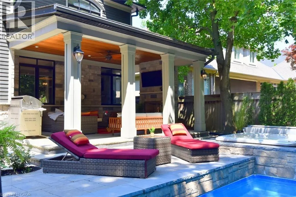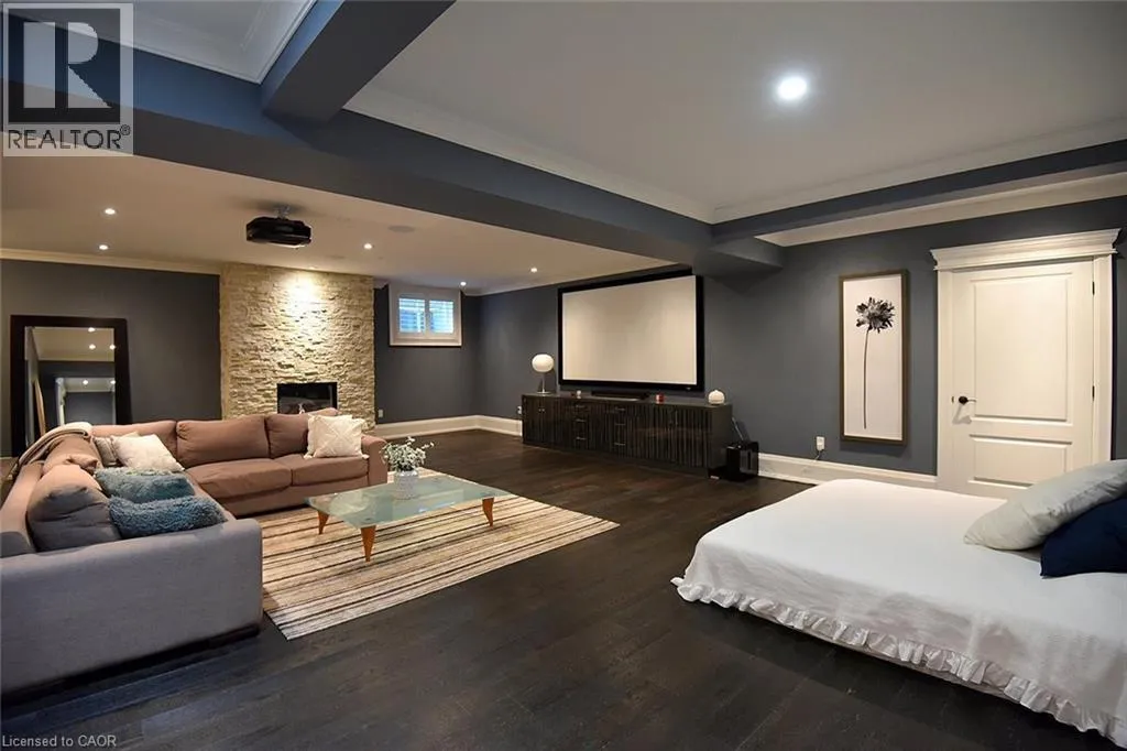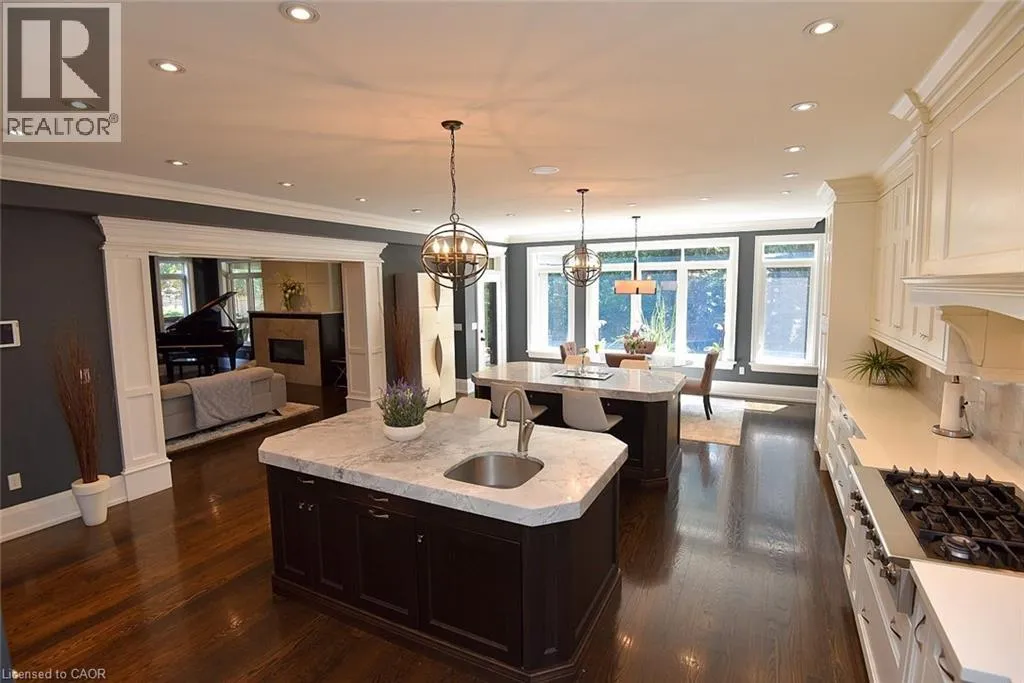 On the South Side of Lakeshore Road between Appleby Line and Walker's Line. Backs on to Inglewood Drive. Custom Lakeshore Home Designed for both Elegance & Functionality. This 4 Bedroom 4.5 Bath Home provides Over 6300 sq.ft of Updated Living space with High End Finishes & Custom Millwork throughout. An Entertainers Delight with a 790 sq ft Chefs Kitchen with 6 burner gas cooktop, b/i Dbl Ovens, Pot filler, Side by side Fridge & Freezer, TWO Oversized Islands w/seating for 9, Servery with wet bar leading to the Formal Dining Rm. Or Dine outside in your Beautiful Private Backyard Retreat. This maintenance free yard features a Heated Saltwater Pool with Waterfall, Covered Terrace with Gas fpl & TV b/i Hot tub. Fantastic for Entertaining or Relaxing & Recharging! With Gorgeous Windows & Natural Light, the Great Room has custom b/i cabinetry, cozy gas fpl & Wet Bar. Also on main lvl is an o/sized mud room, Powder rm & Office. Upper lvl feats Luxurious Primary Suite with Stunning floor to ceiling Stone Fpl, Vaulted ceiling, Sauna, WIC w/built-ins & 7pc Spa-like Ensuite features Heated flrs, white marble top to bottom & bidet. 3 add'l Beds all with W/I Closets. Two Beds share Spacious Ensuite. Fourth has own Ensuite. Convenient Upper Lvl Laundry w/floor to ceiling cabinetry. 1,900 sq ft of Fully finished lwr lvl. A Great Entertaining Space w/Wet Bar, floor to ceiling stone fp, Home Theatre, climate controlled Wine Cellar, full Gym & 3pc Bath. Large Egress Bsmt Windows. 4 Fireplaces, 3 inside & 1 out. PRIME Location only Steps to the Lake & Paletta Lakefront Park. Highly Sought-after Nelson/Tuck School area. Dbl Garage with 2 Car Lifts! Ample parking. Owned Instant Heat(water system) & Whole Home Filtration system- 2021 New A/C & Pool Heater-2024. Turnkey! Move in & Enjoy this Exquisite Updated Family Home in the Prestigious Shoreacres area. It's truly One of a Kind! (id:27476)